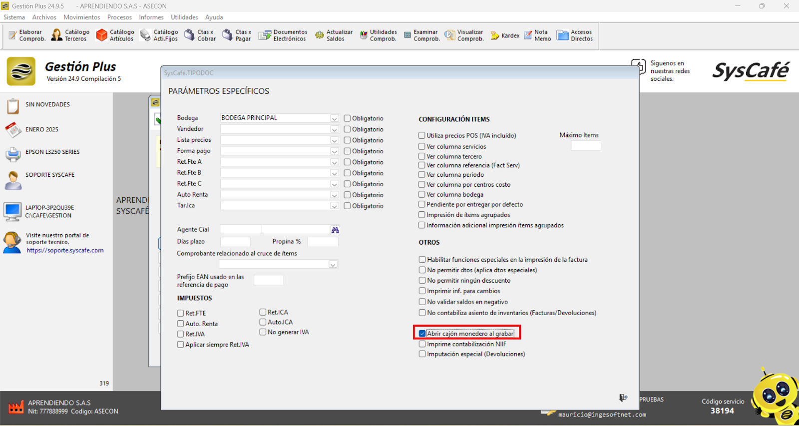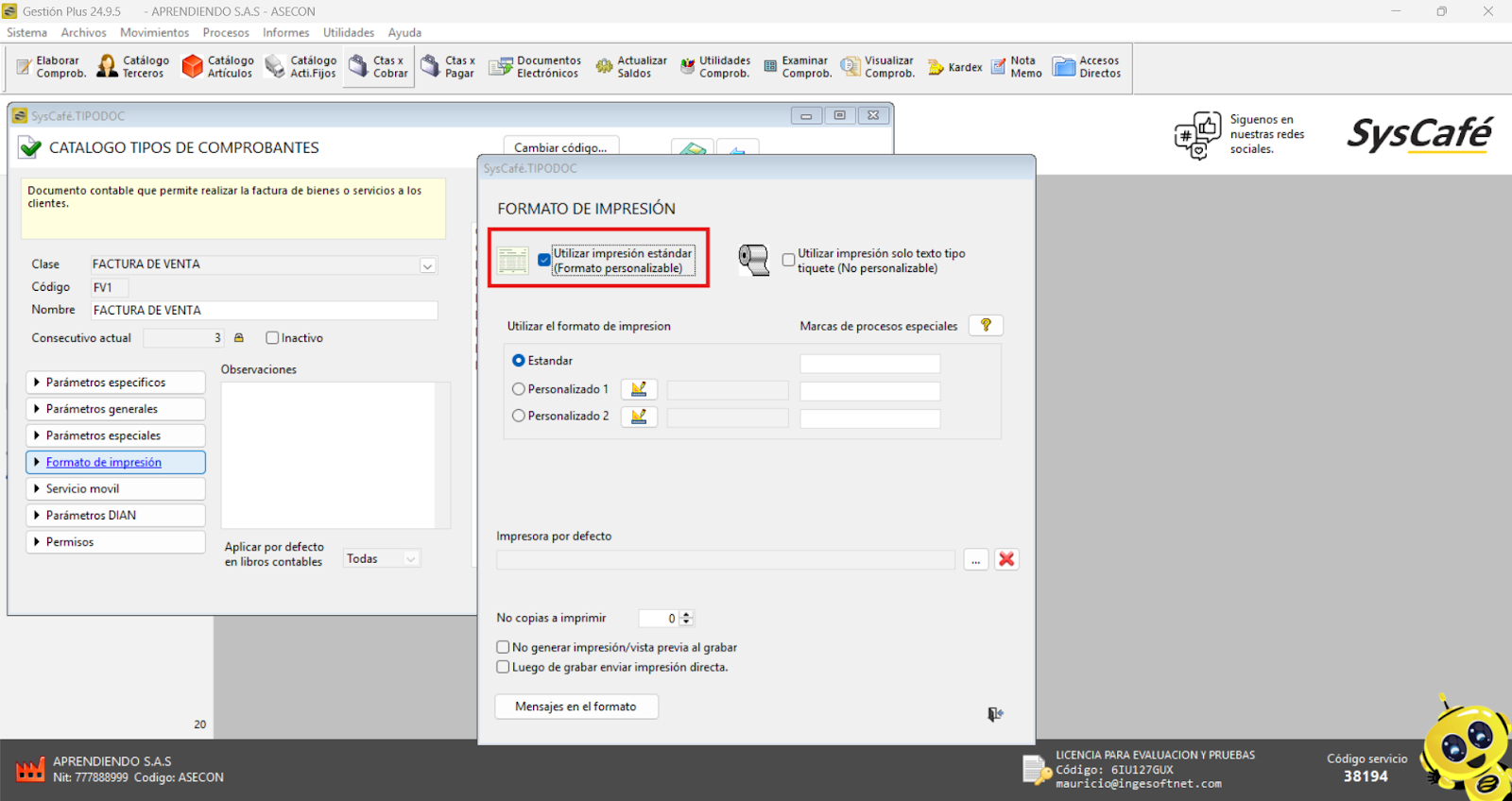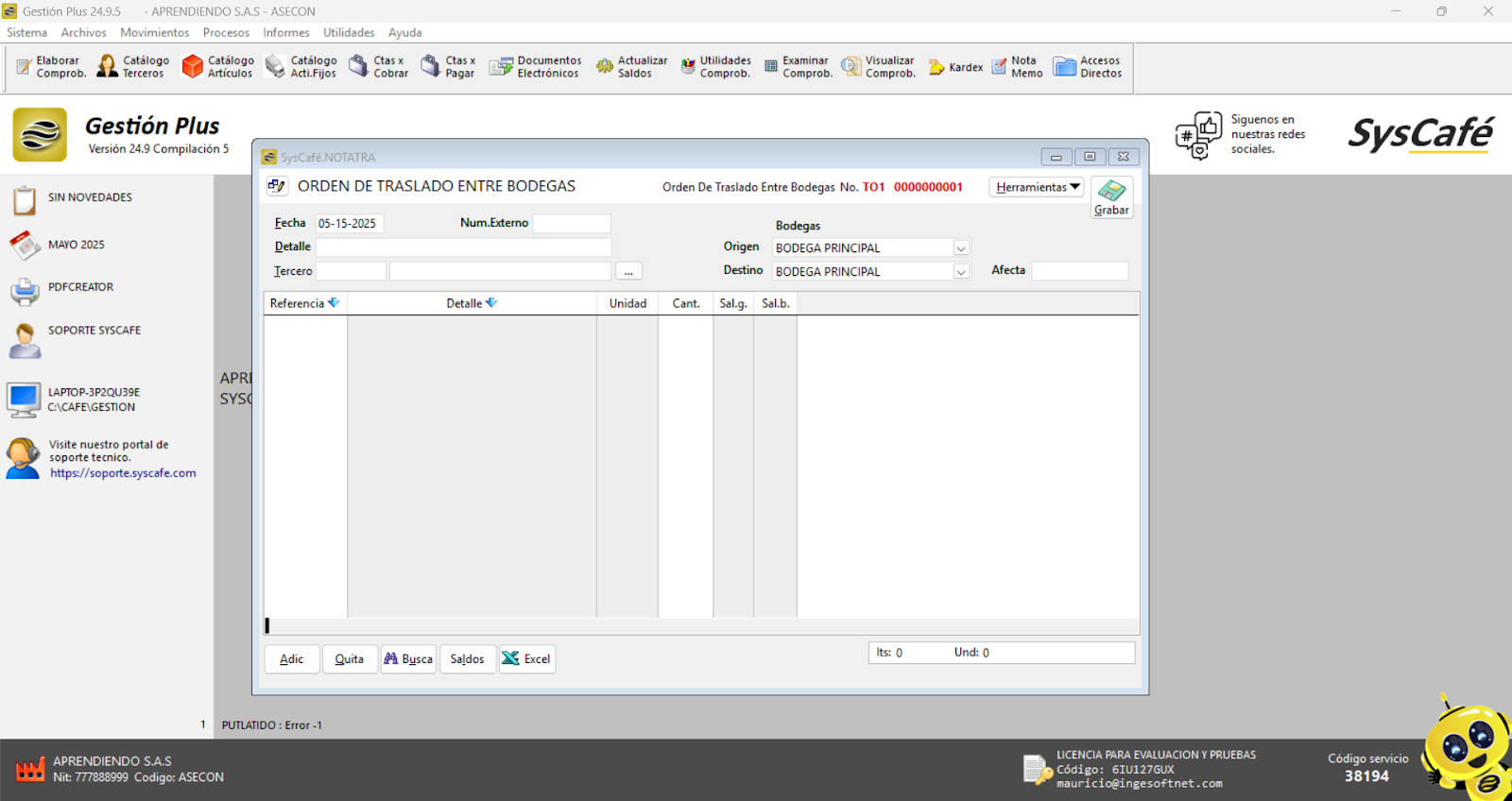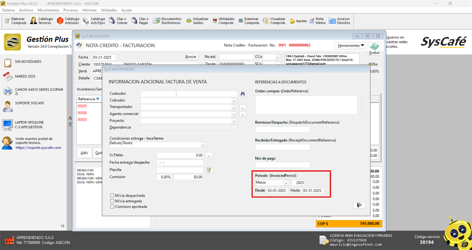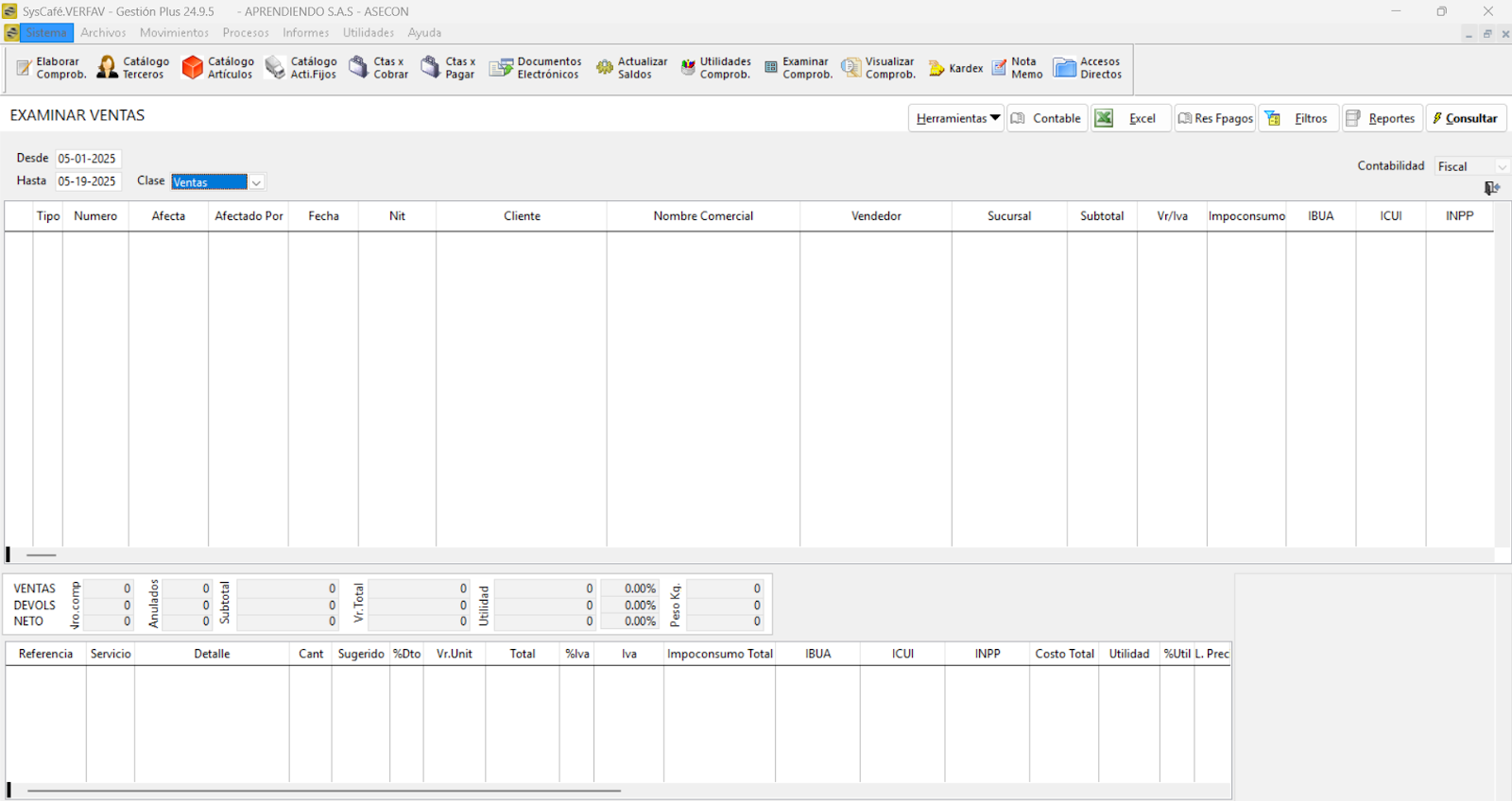 Nota importante: No se ha asociado completamente la información de la resolución DIAN, ya que el proceso para vincular las resoluciones al software SYSCAFÉ se encuentra en otra sección del manual.