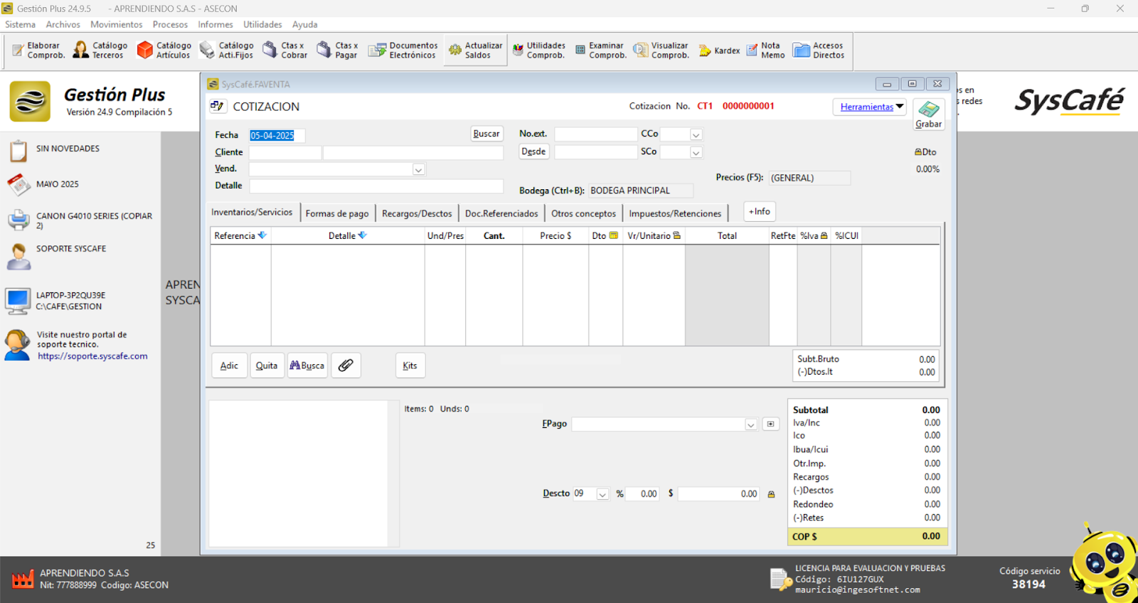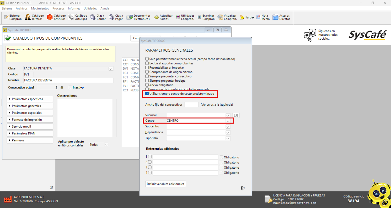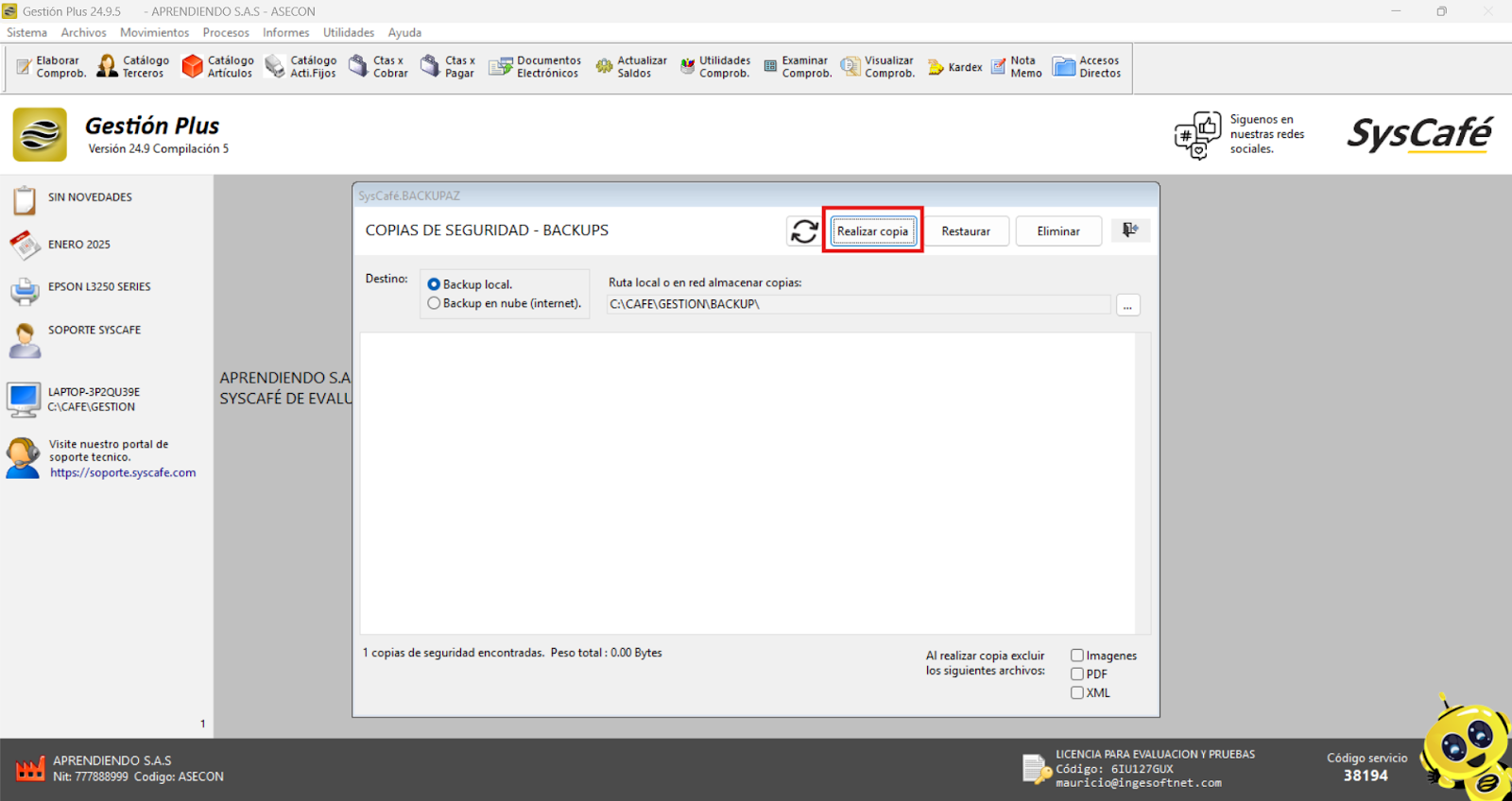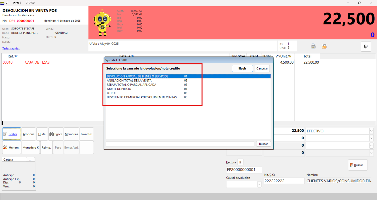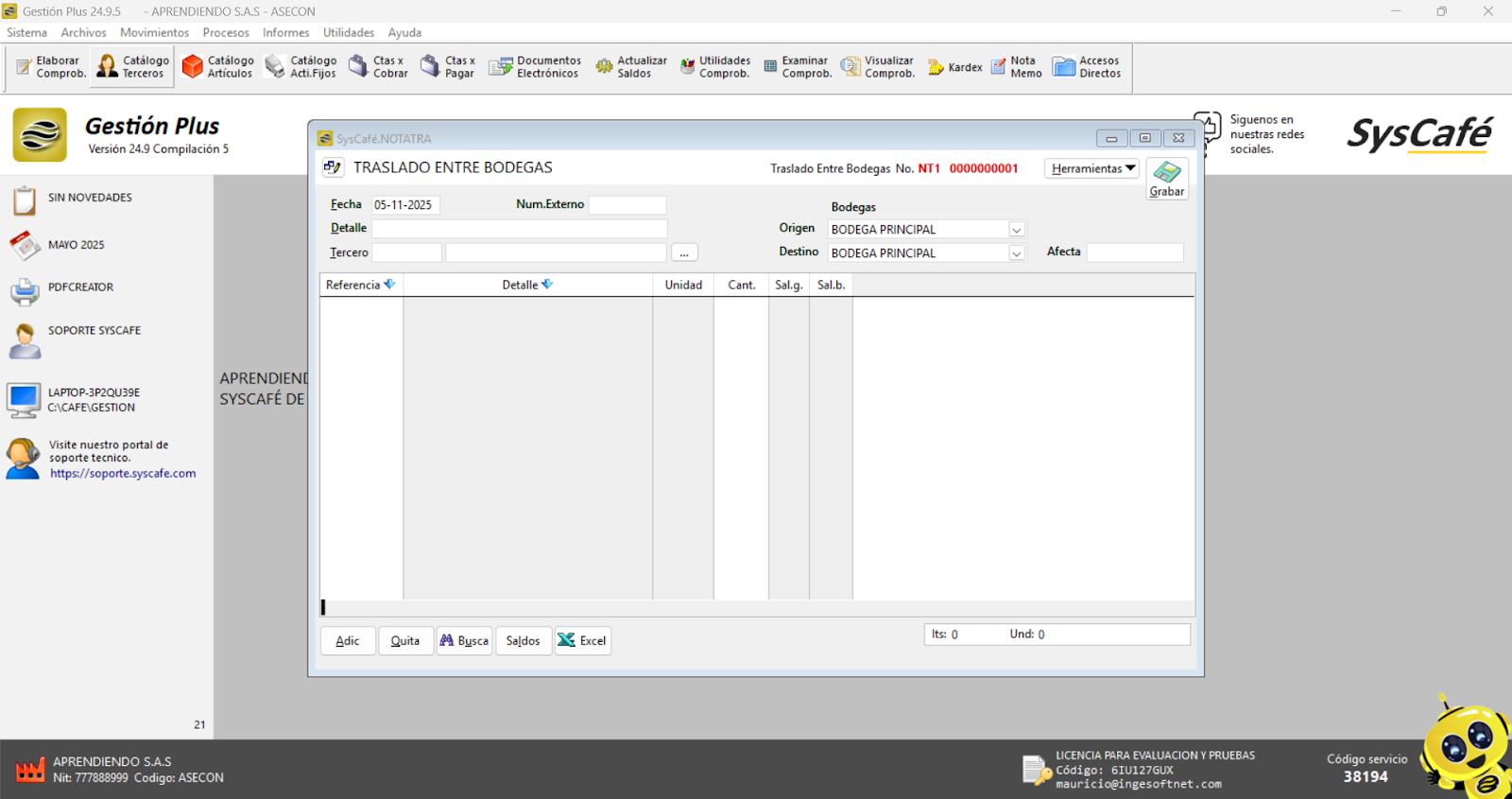 Nota importante: No se ha asociado completamente la información de la resolución DIAN, ya que el proceso para vincular las resoluciones al software SYSCAFÉ se encuentra en otra sección del manual.