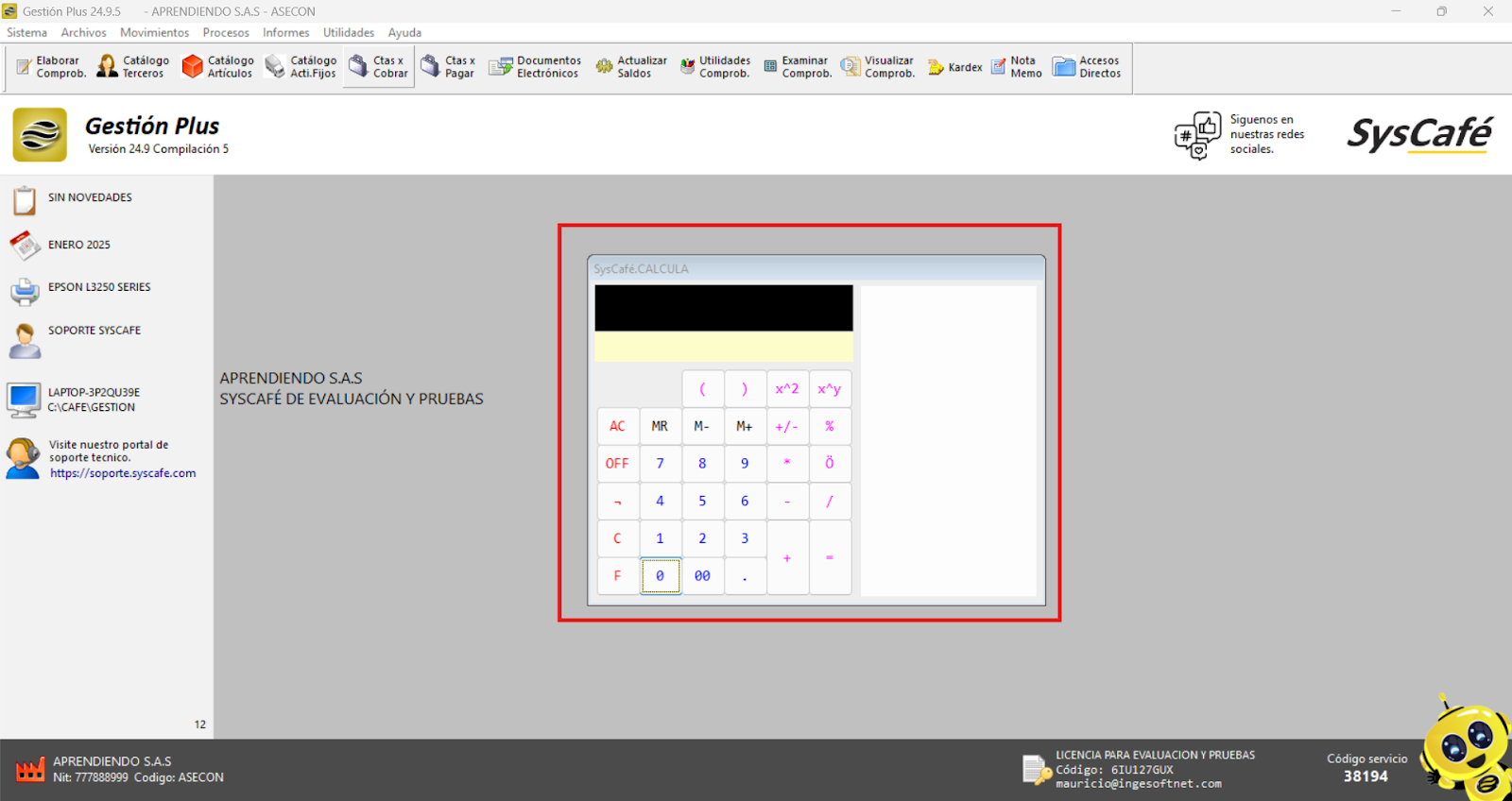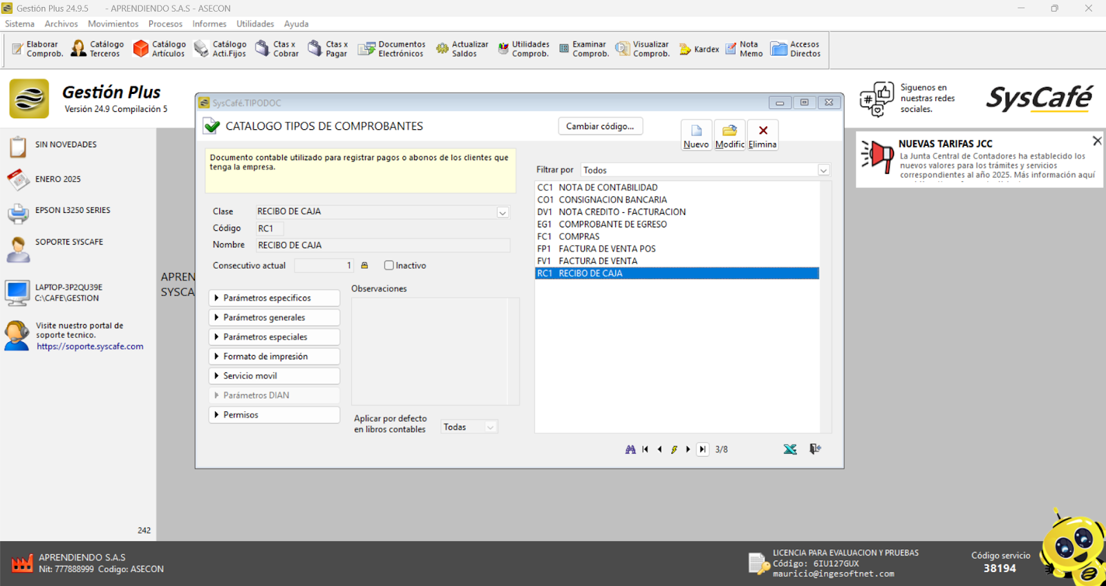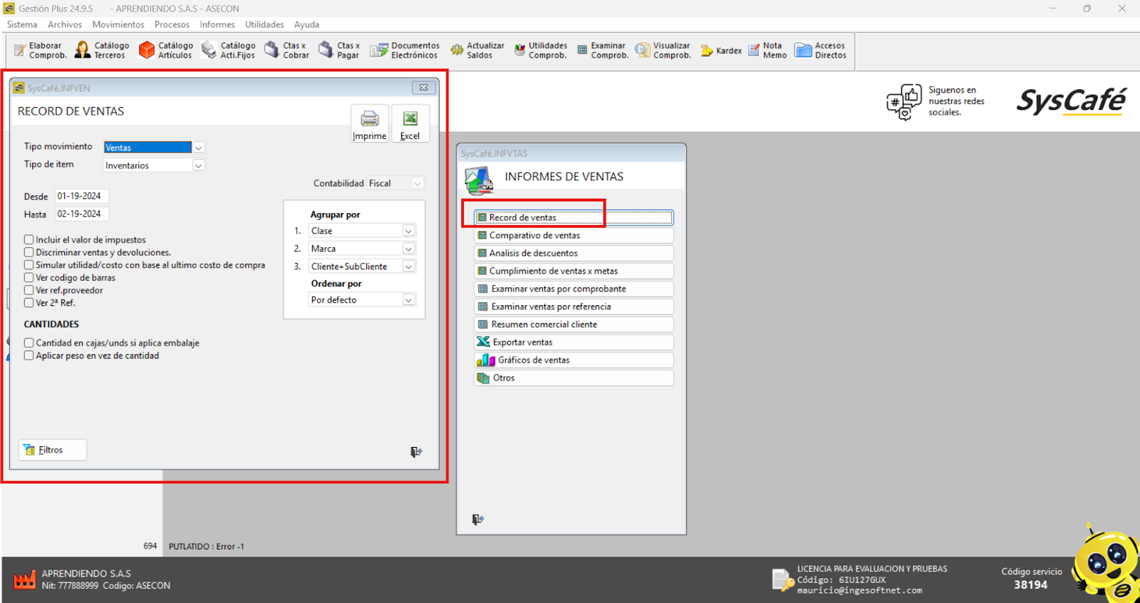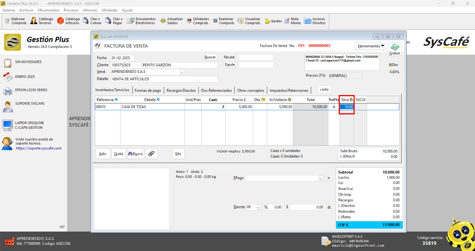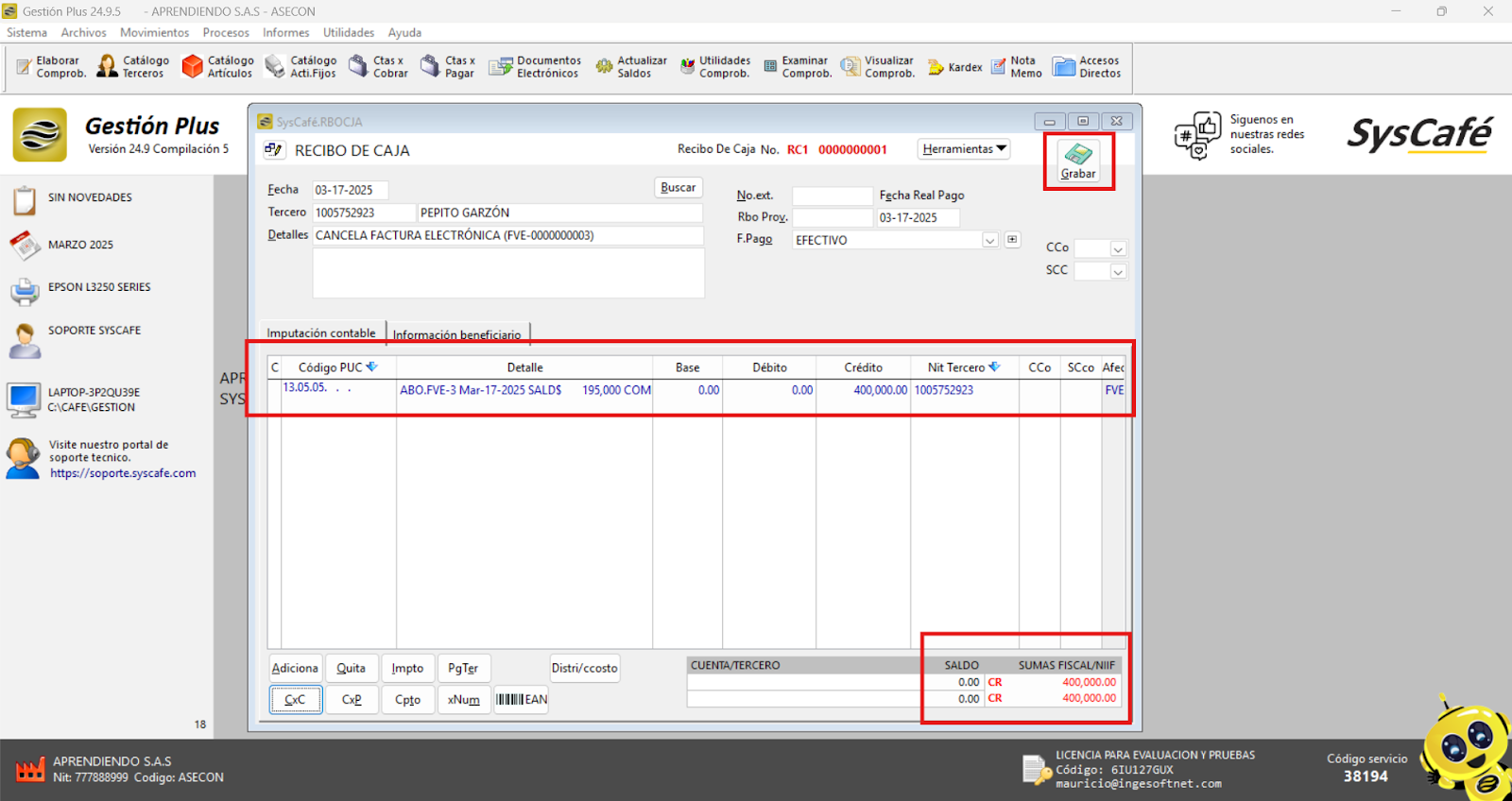 Nota importante: No se ha asociado completamente la información de la resolución DIAN, ya que el proceso para vincular las resoluciones al software SYSCAFÉ se encuentra en otra sección del manual.