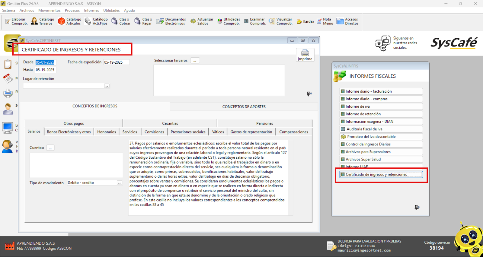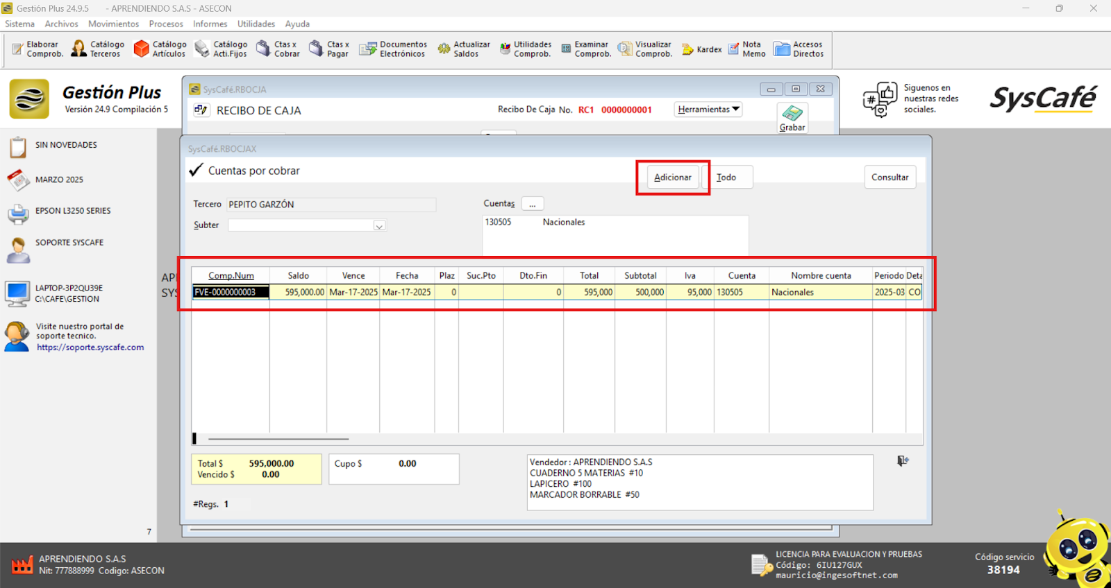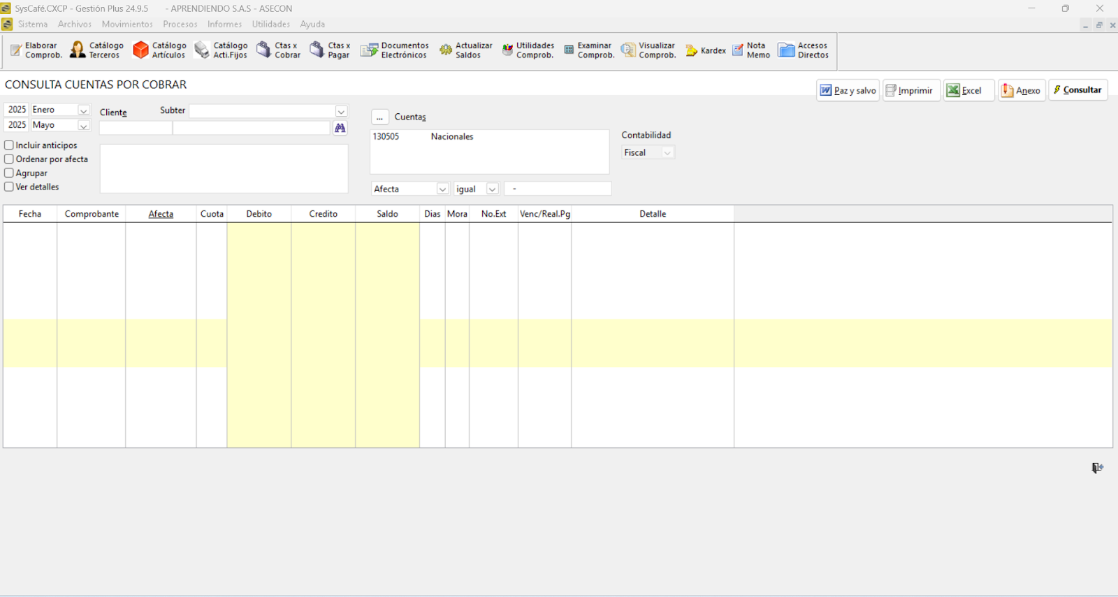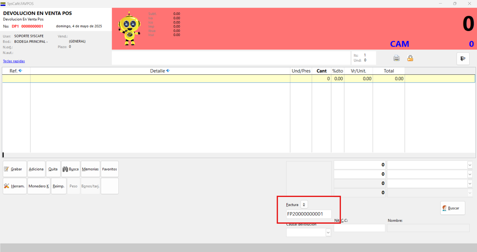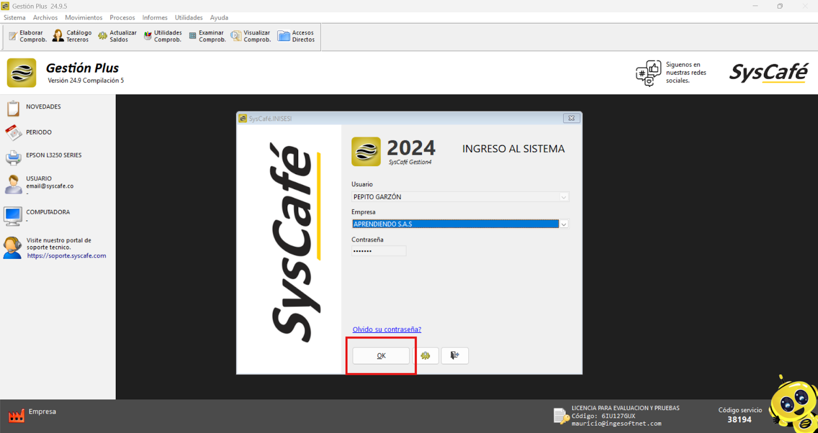 Nota importante: No se ha asociado completamente la información de la resolución DIAN, ya que el proceso para vincular las resoluciones al software SYSCAFÉ se encuentra en otra sección del manual.
