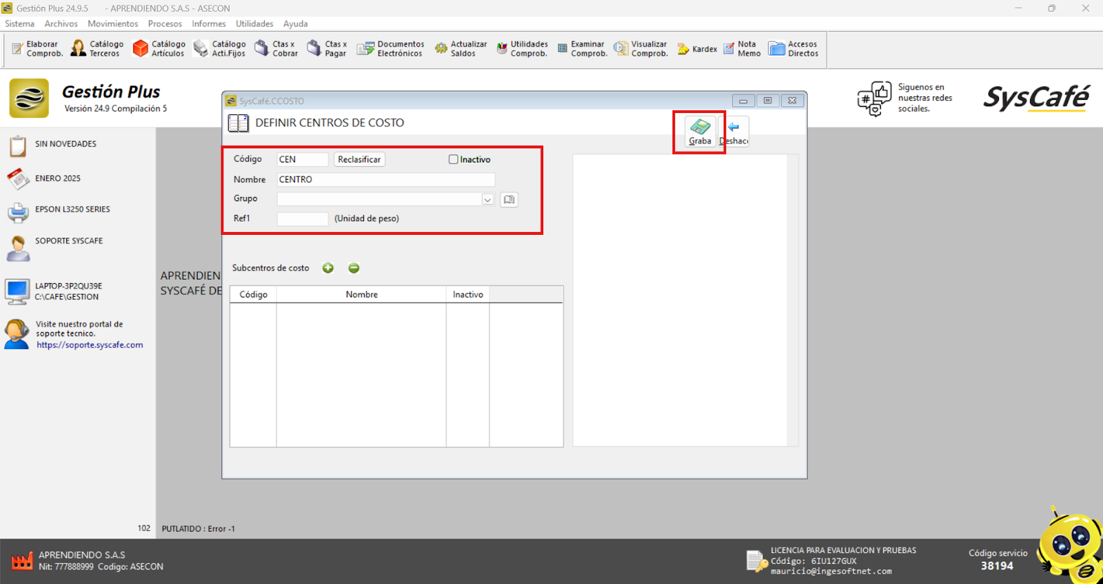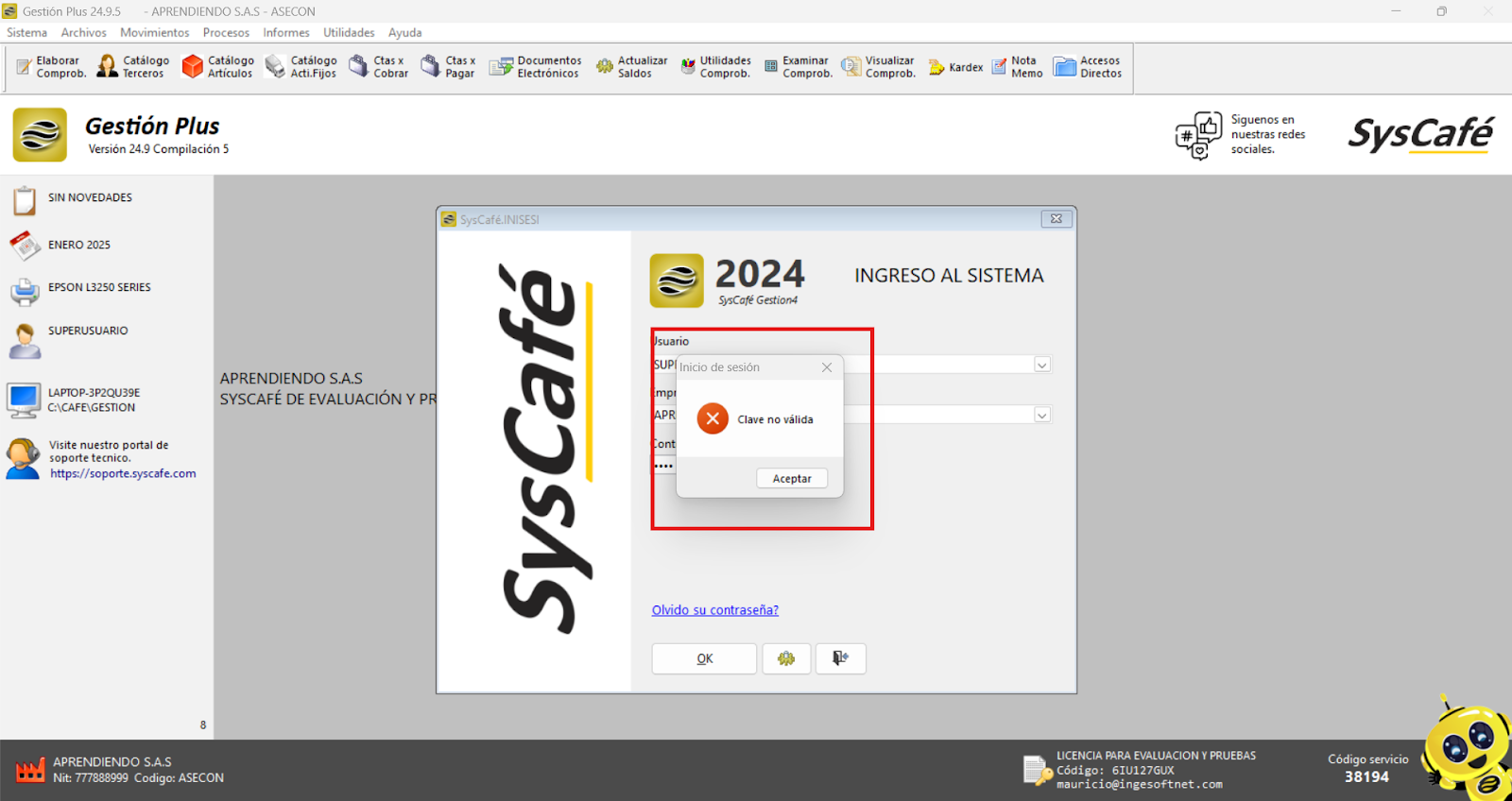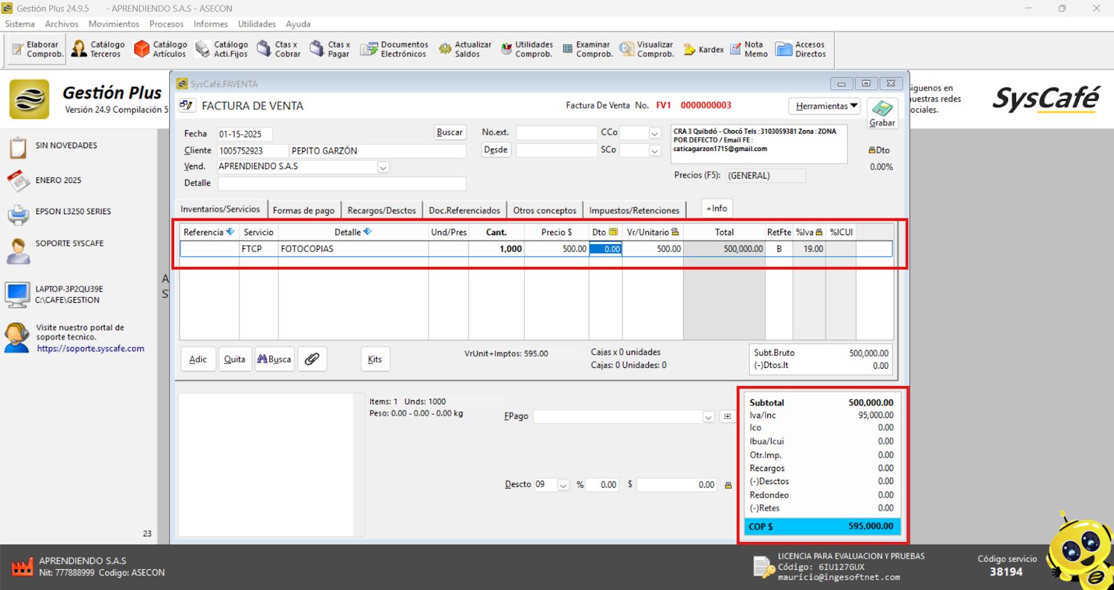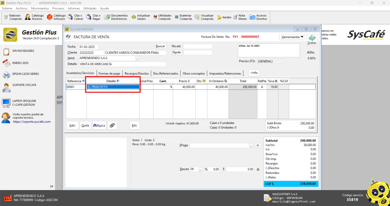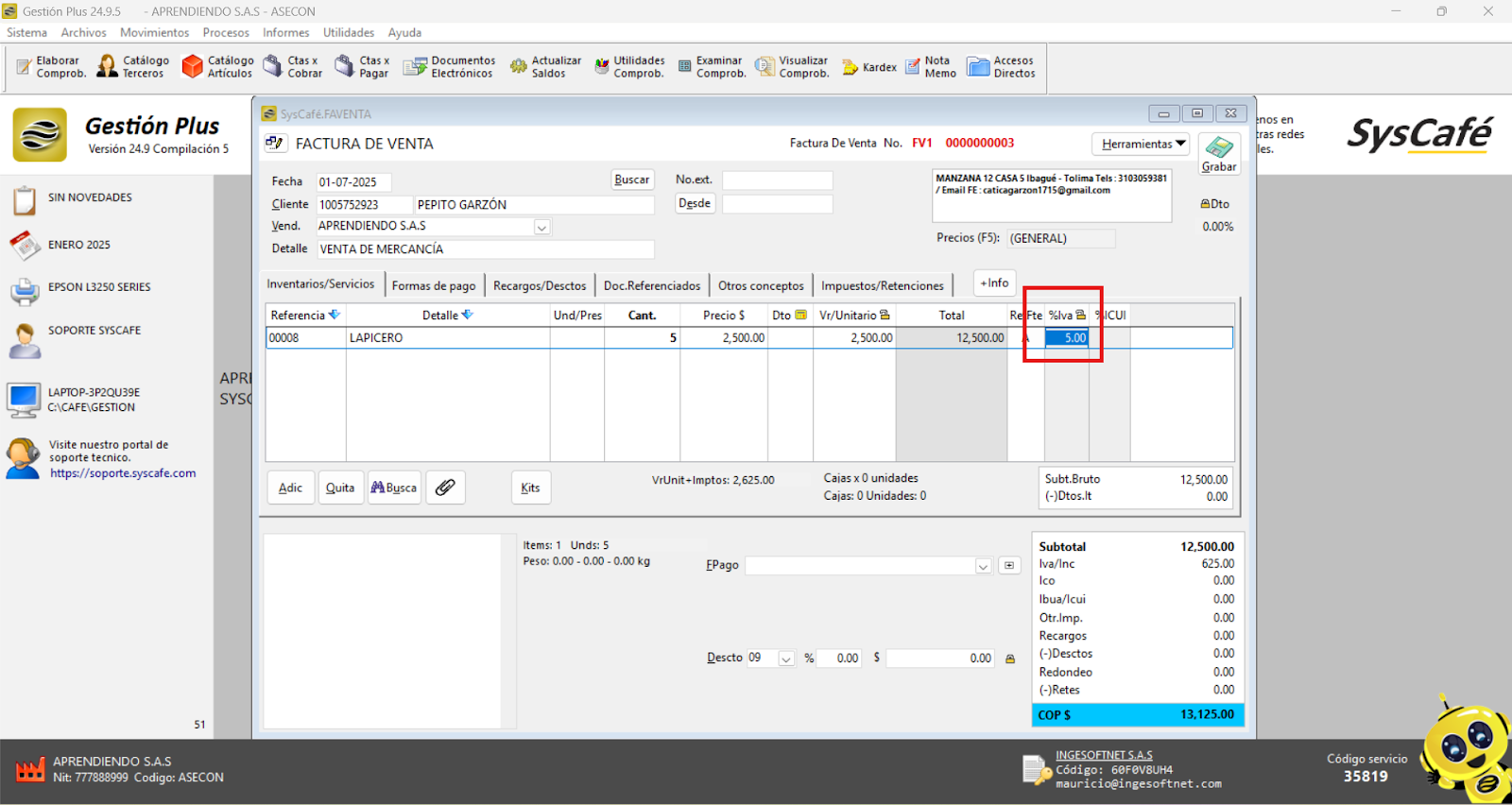 Nota importante: No se ha asociado completamente la información de la resolución DIAN, ya que el proceso para vincular las resoluciones al software SYSCAFÉ se encuentra en otra sección del manual.