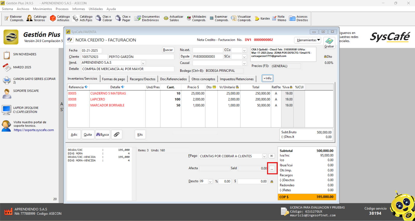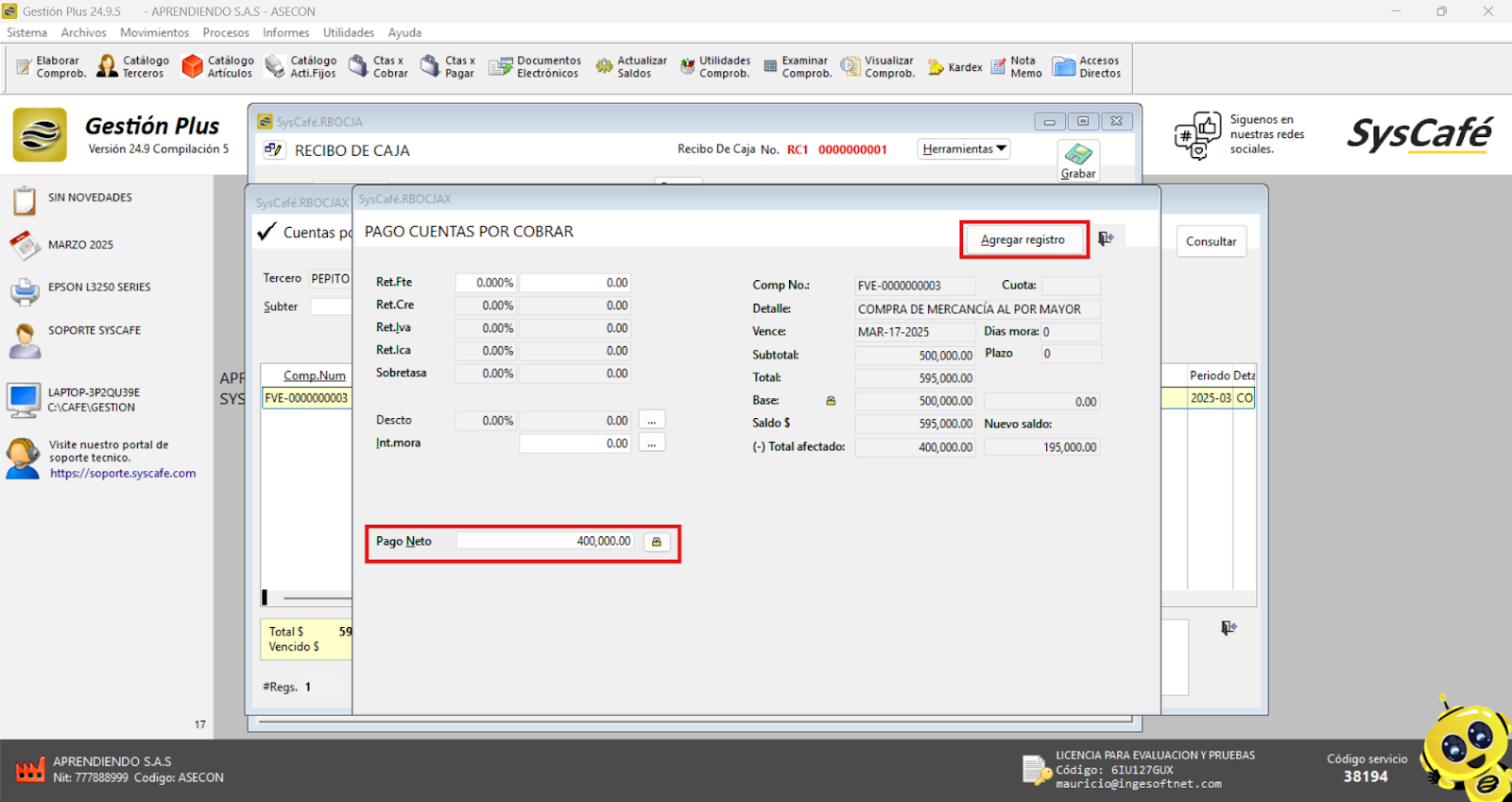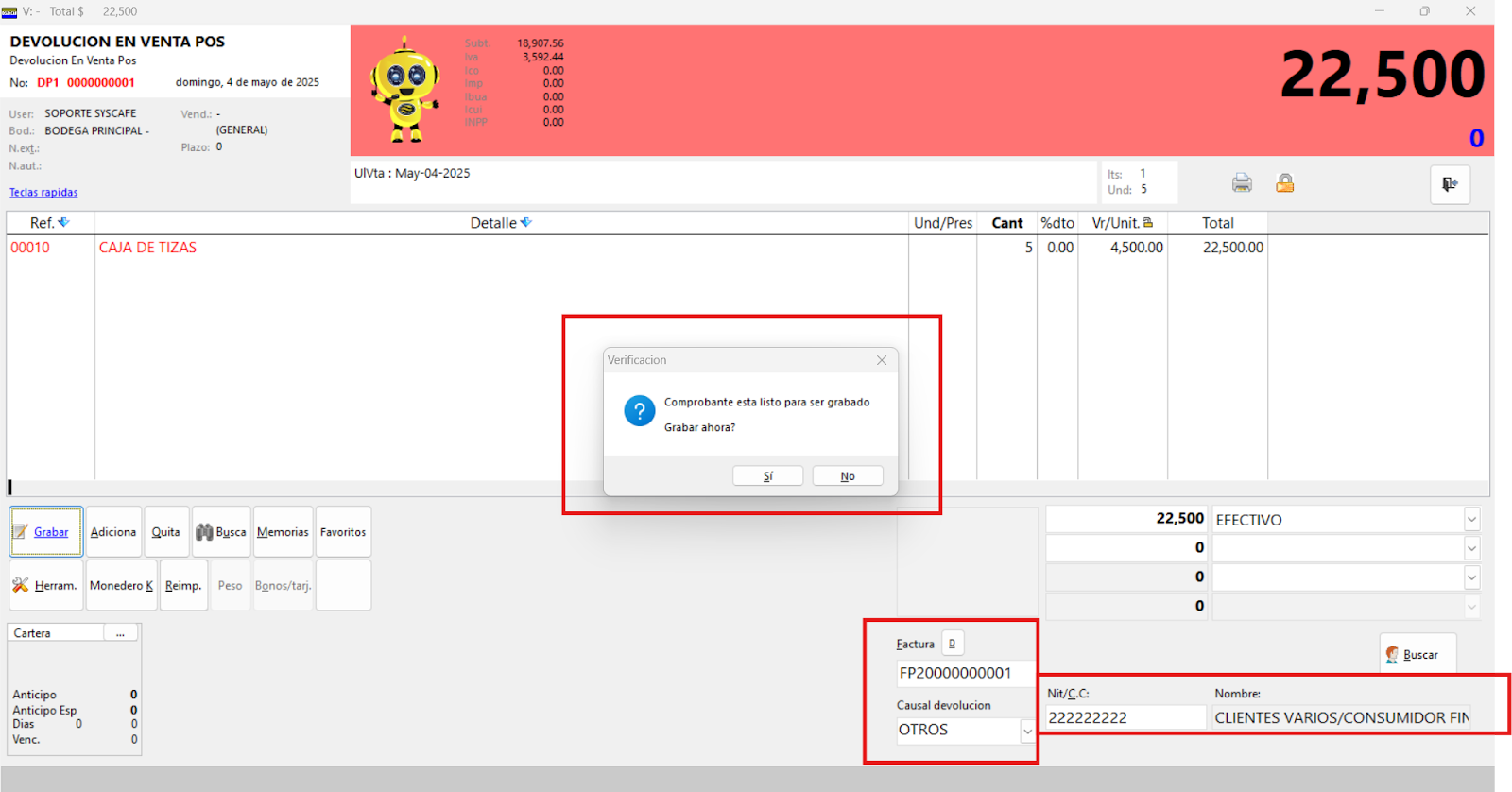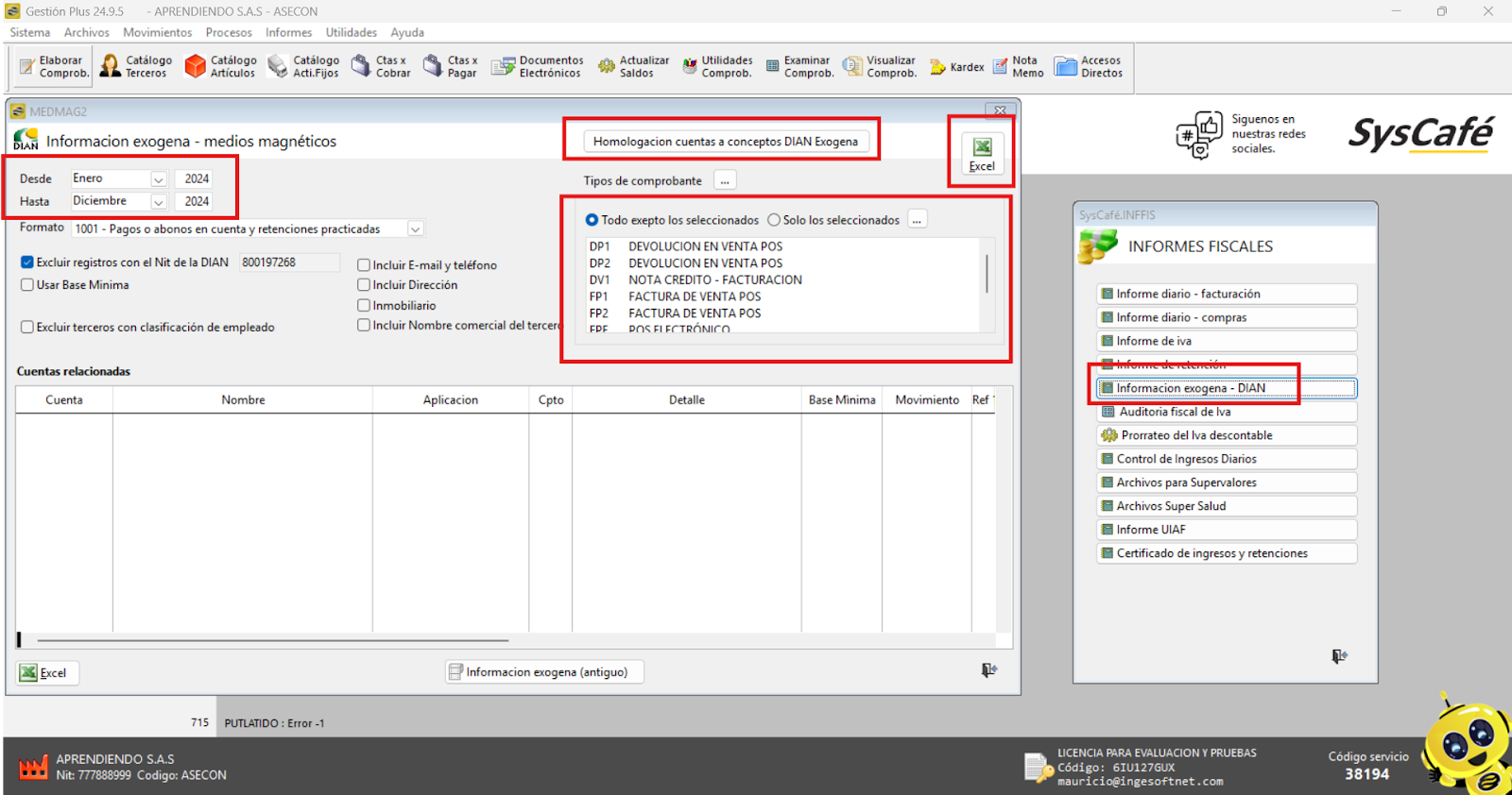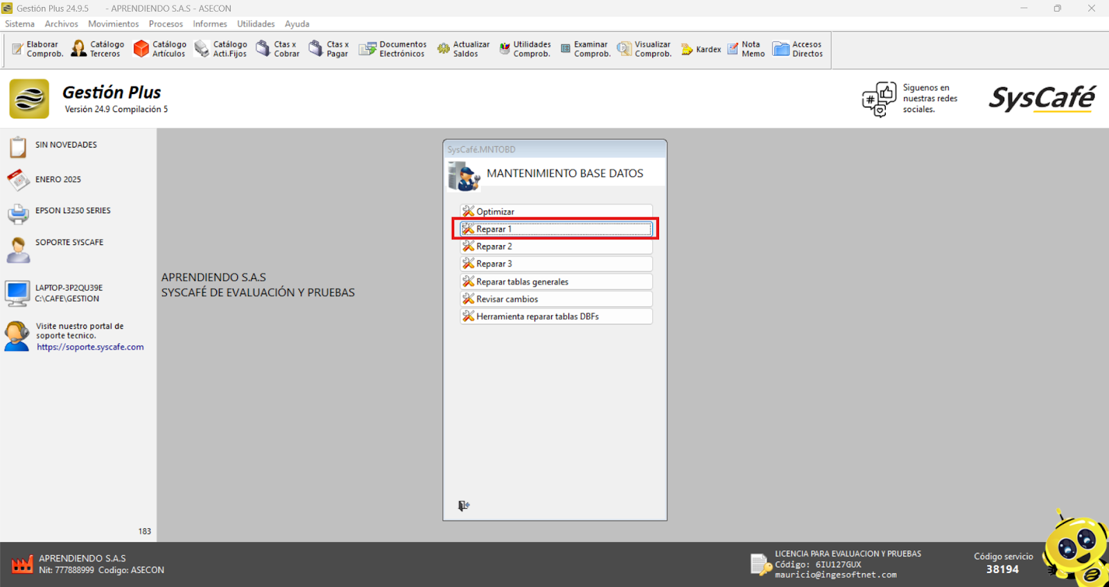 Nota importante: No se ha asociado completamente la información de la resolución DIAN, ya que el proceso para vincular las resoluciones al software SYSCAFÉ se encuentra en otra sección del manual.