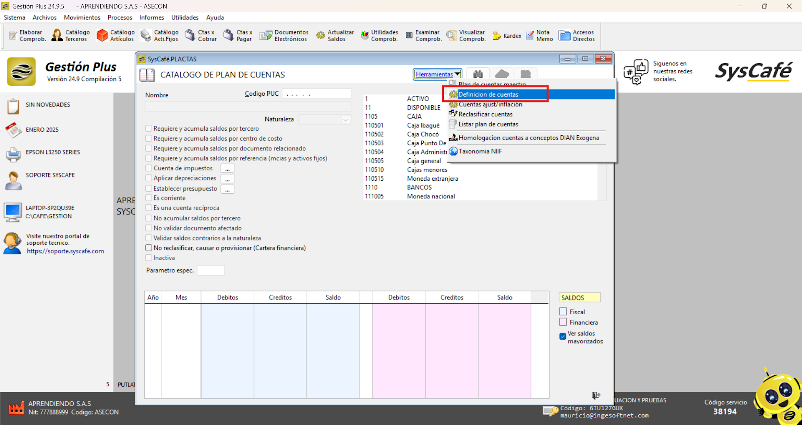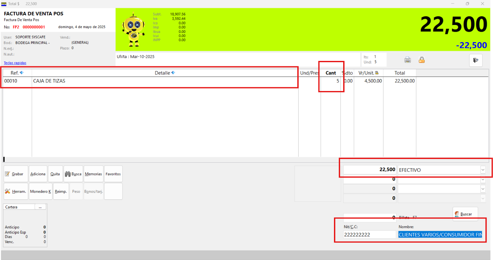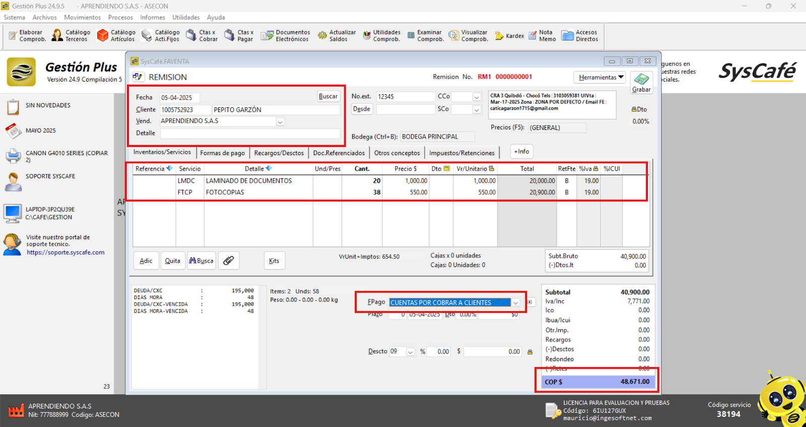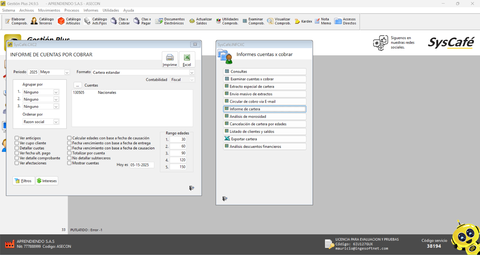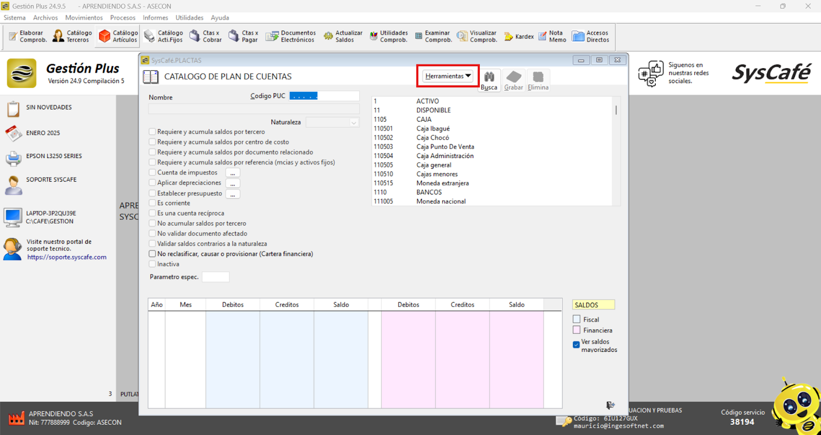 Nota importante: No se ha asociado completamente la información de la resolución DIAN, ya que el proceso para vincular las resoluciones al software SYSCAFÉ se encuentra en otra sección del manual.