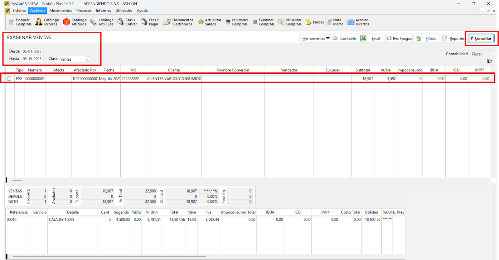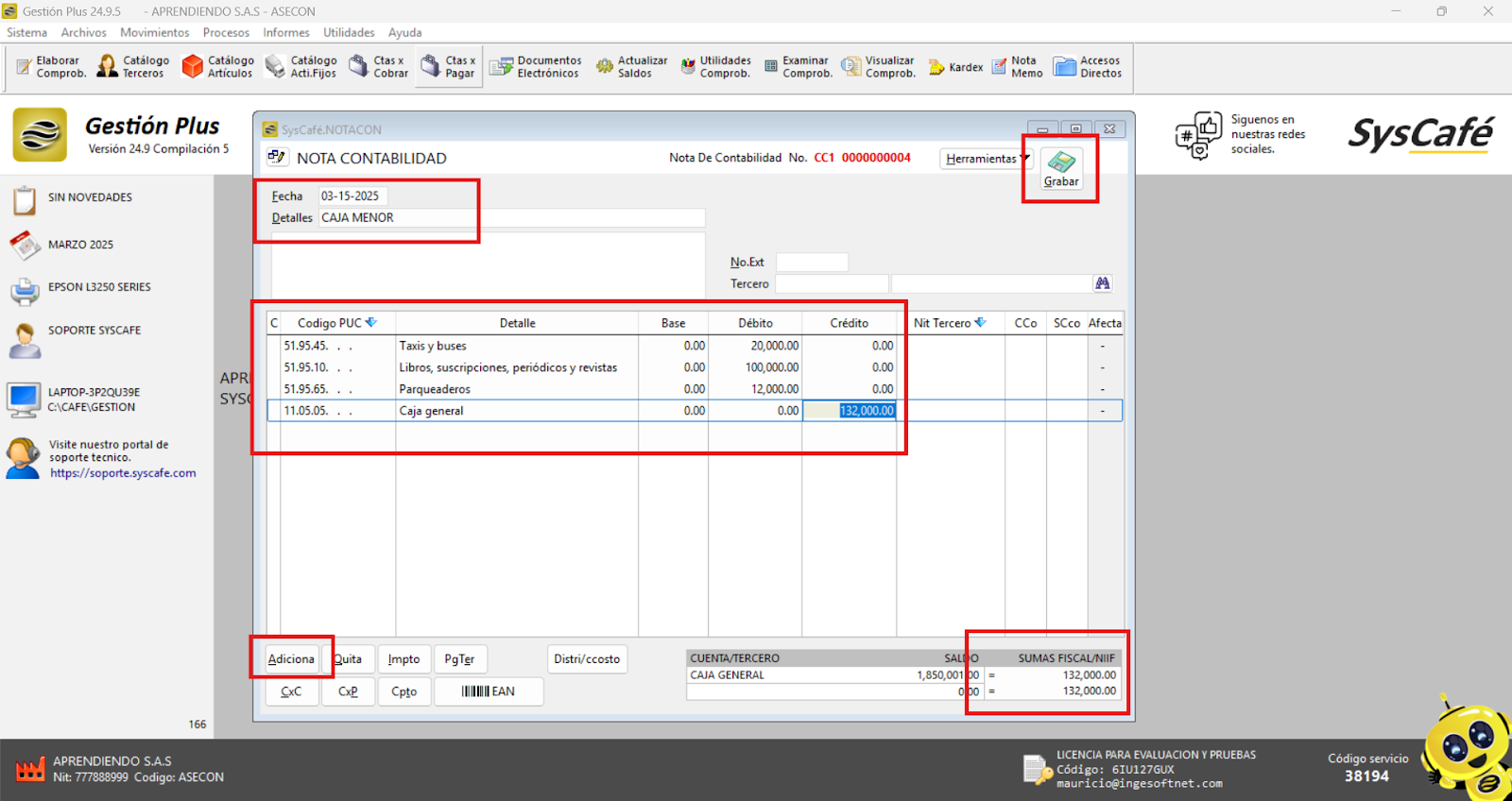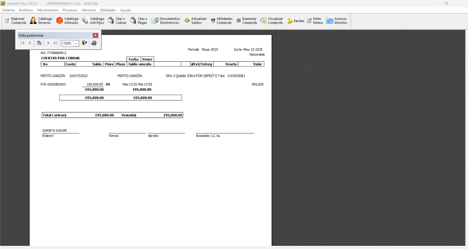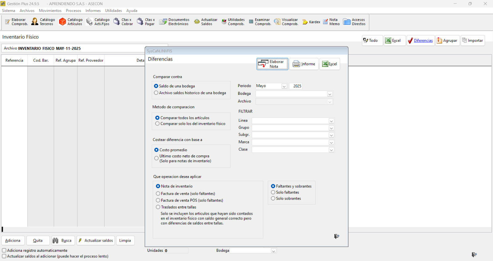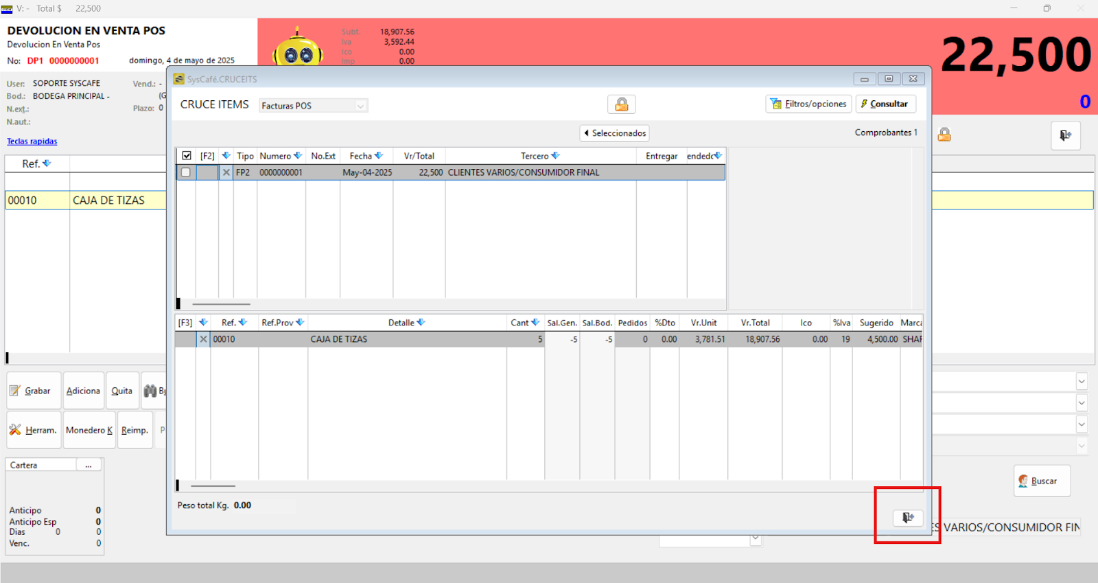 Nota importante: No se ha asociado completamente la información de la resolución DIAN, ya que el proceso para vincular las resoluciones al software SYSCAFÉ se encuentra en otra sección del manual.