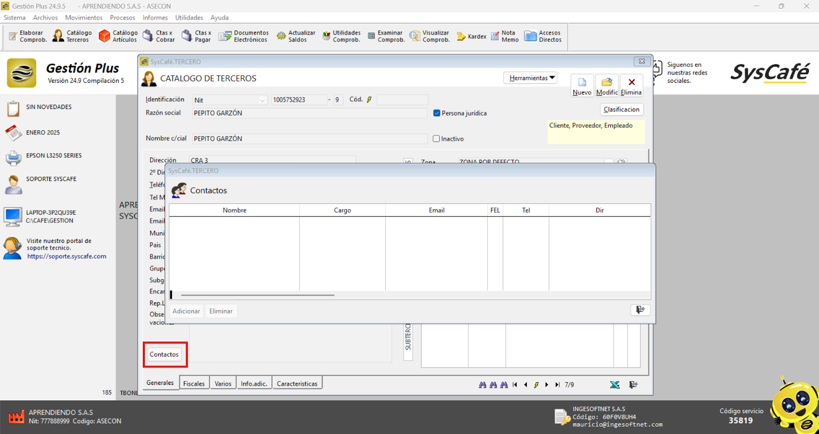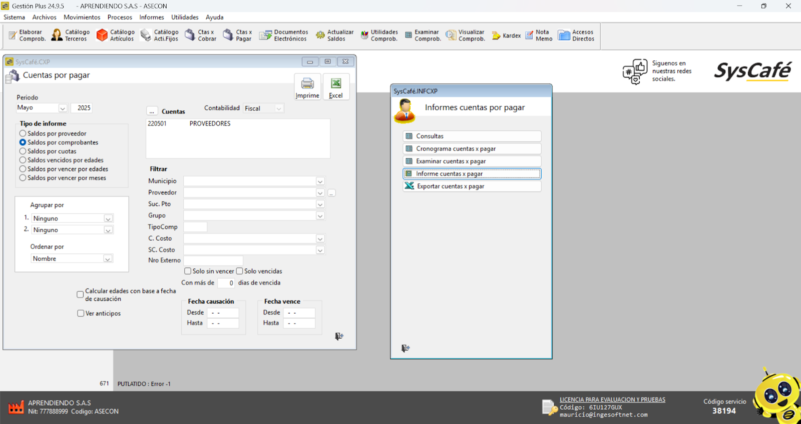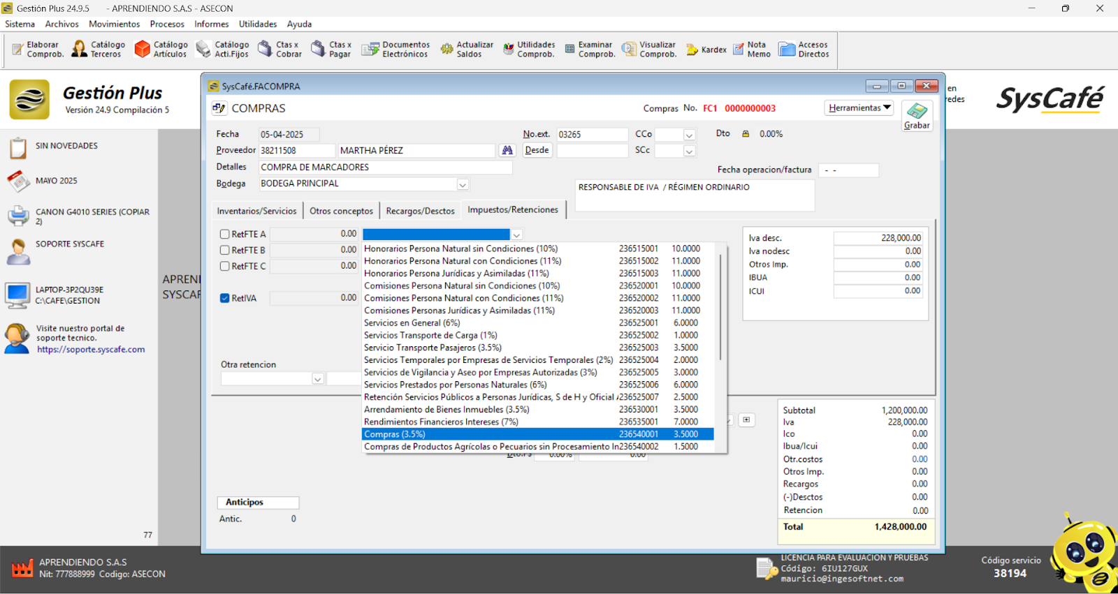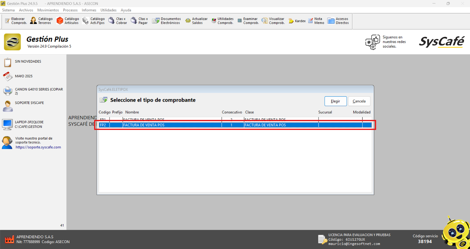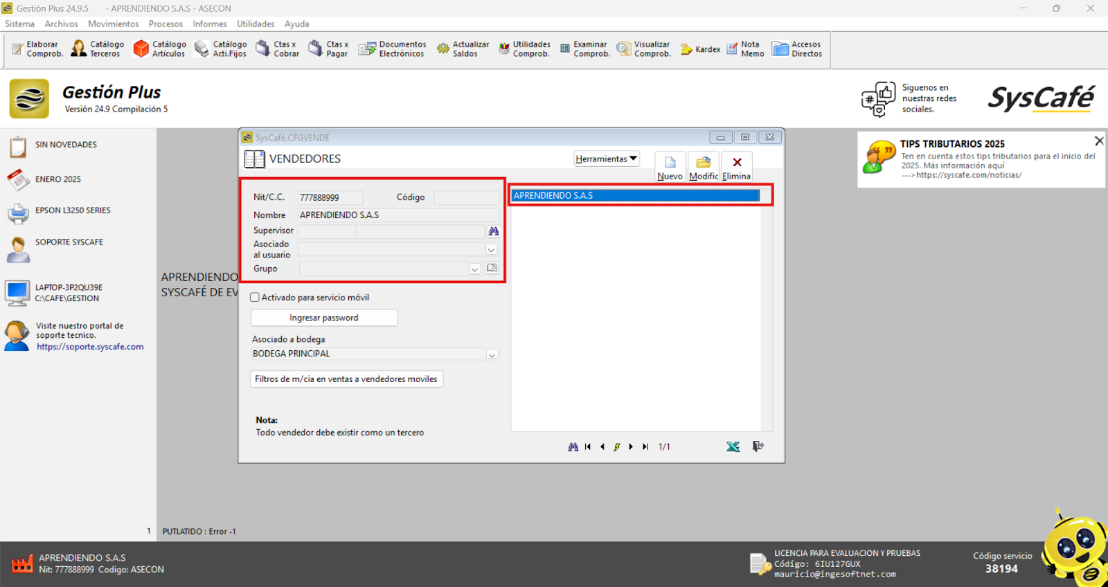 En Proveedor Tecnológico, selecciona SYSCAFÉ S.A.S.