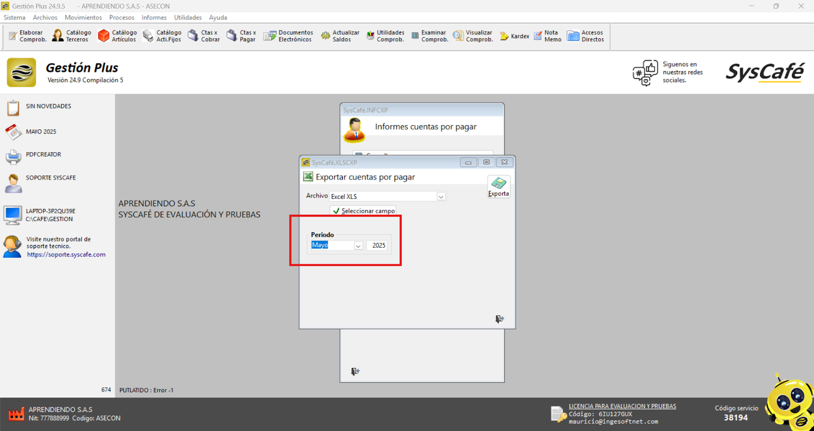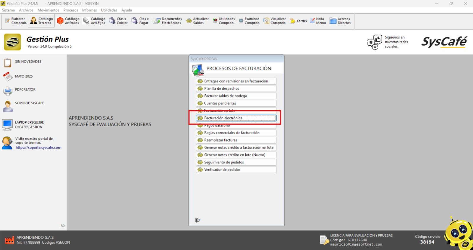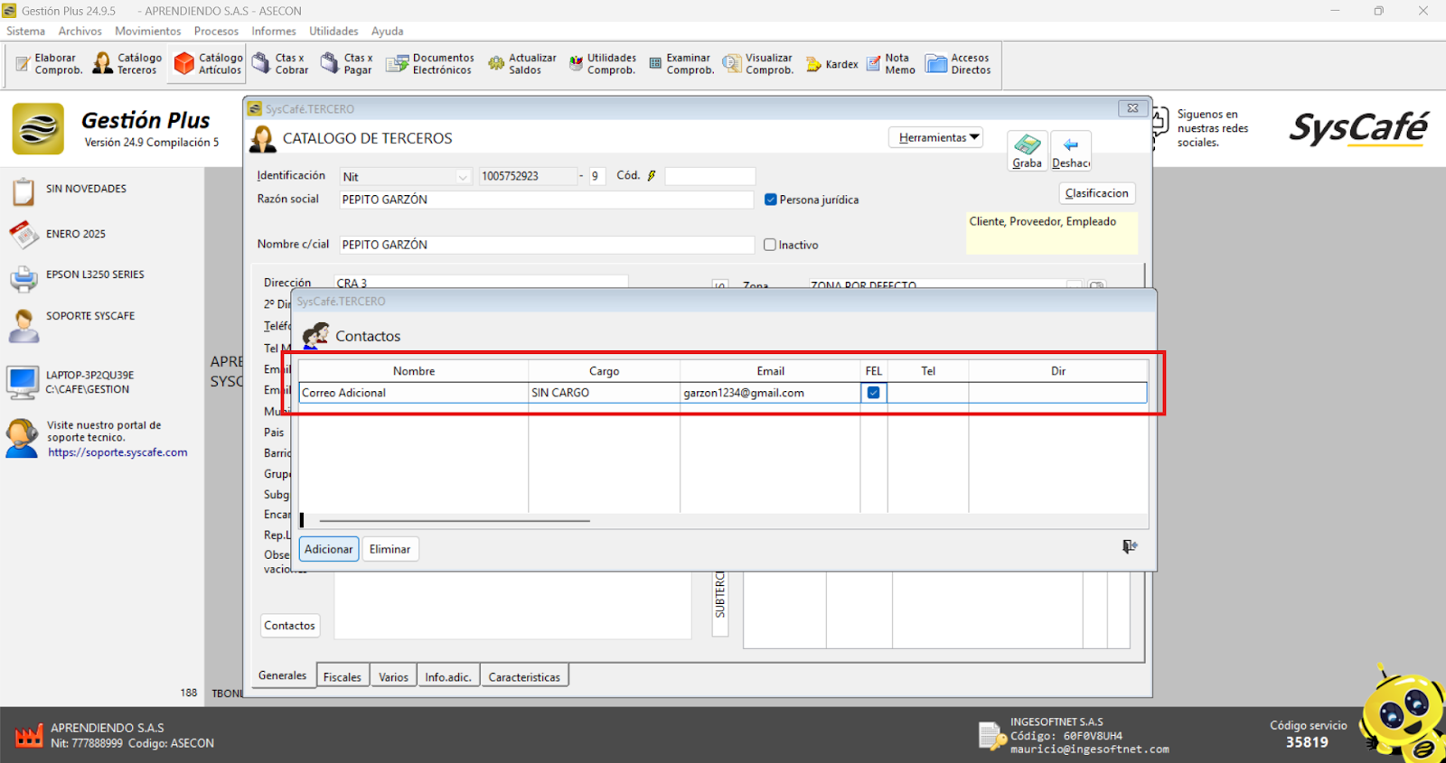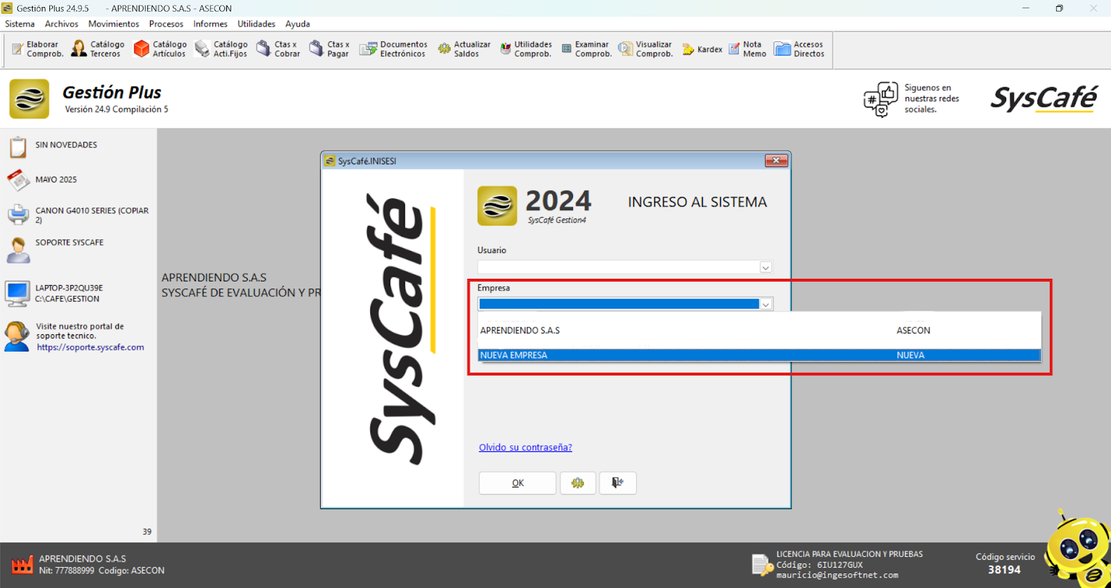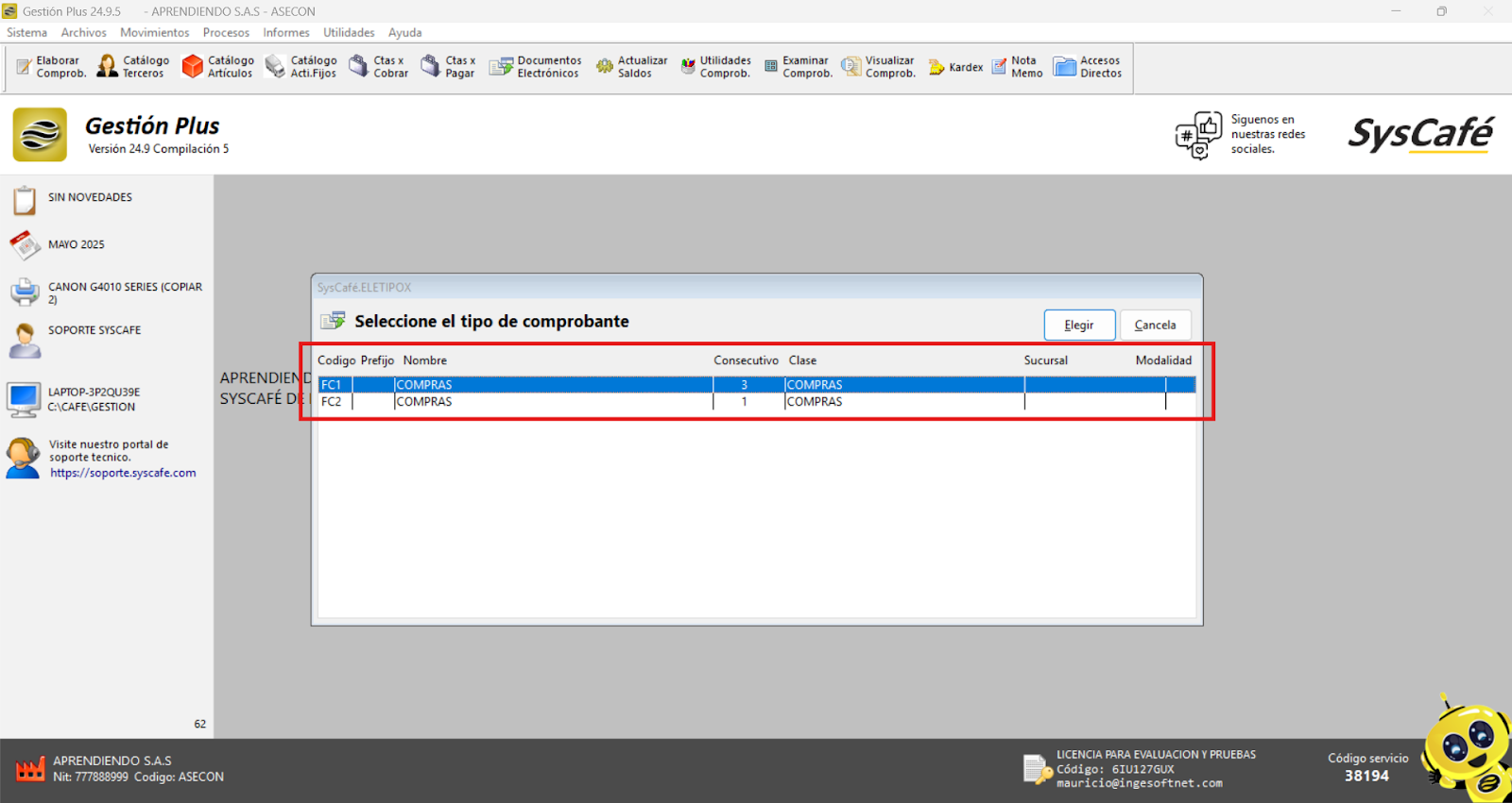 En Proveedor Tecnológico, selecciona SYSCAFÉ S.A.S.