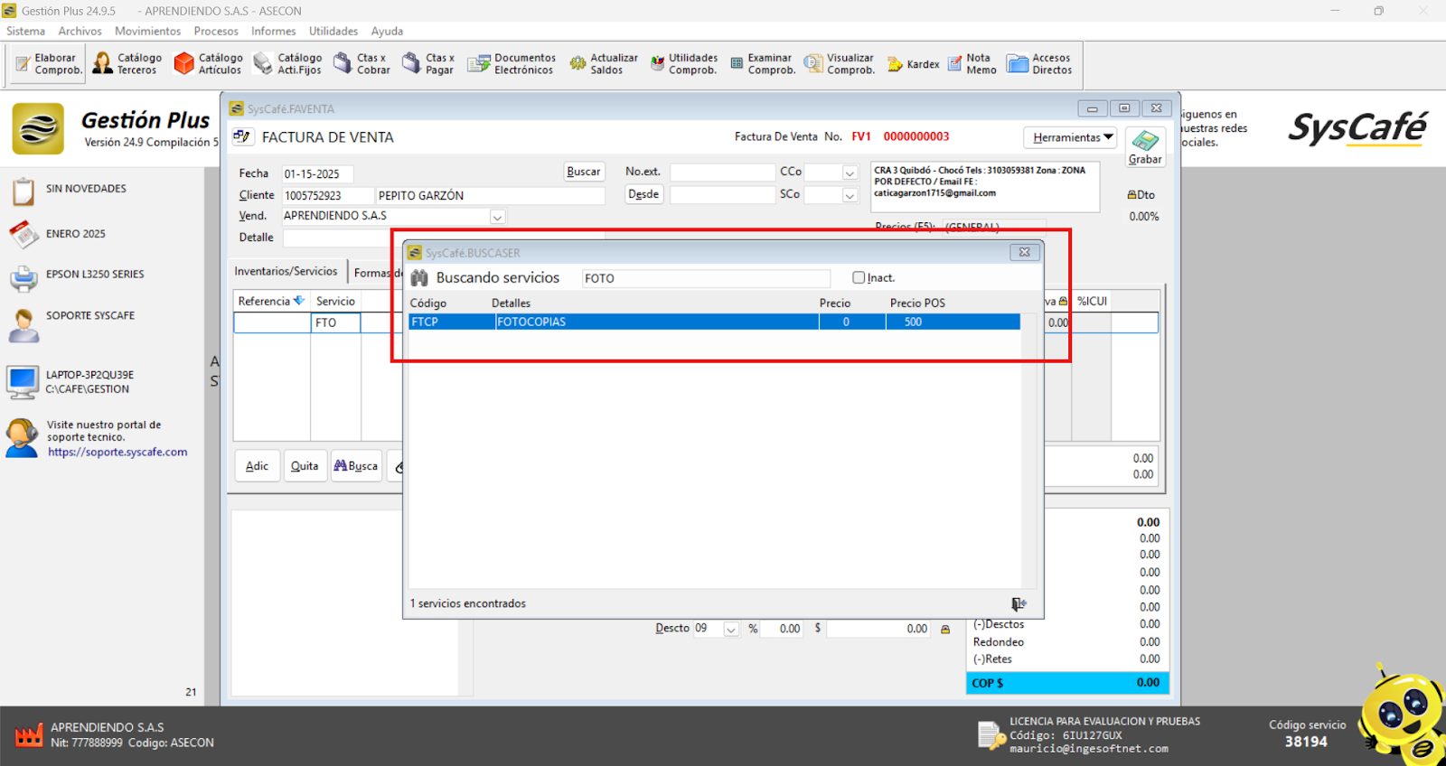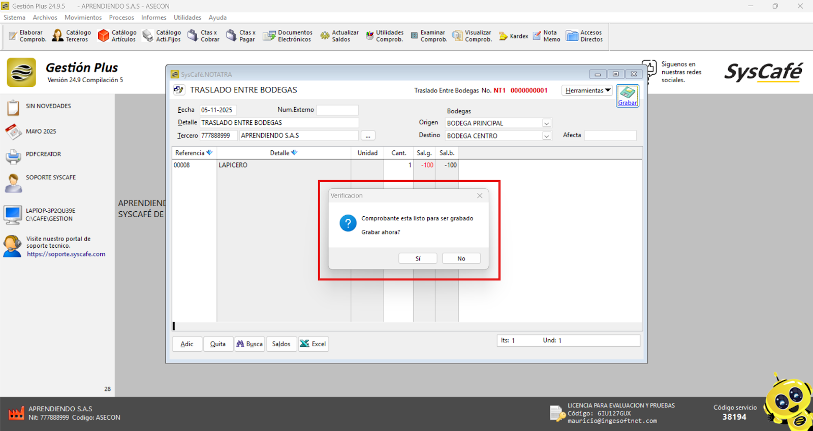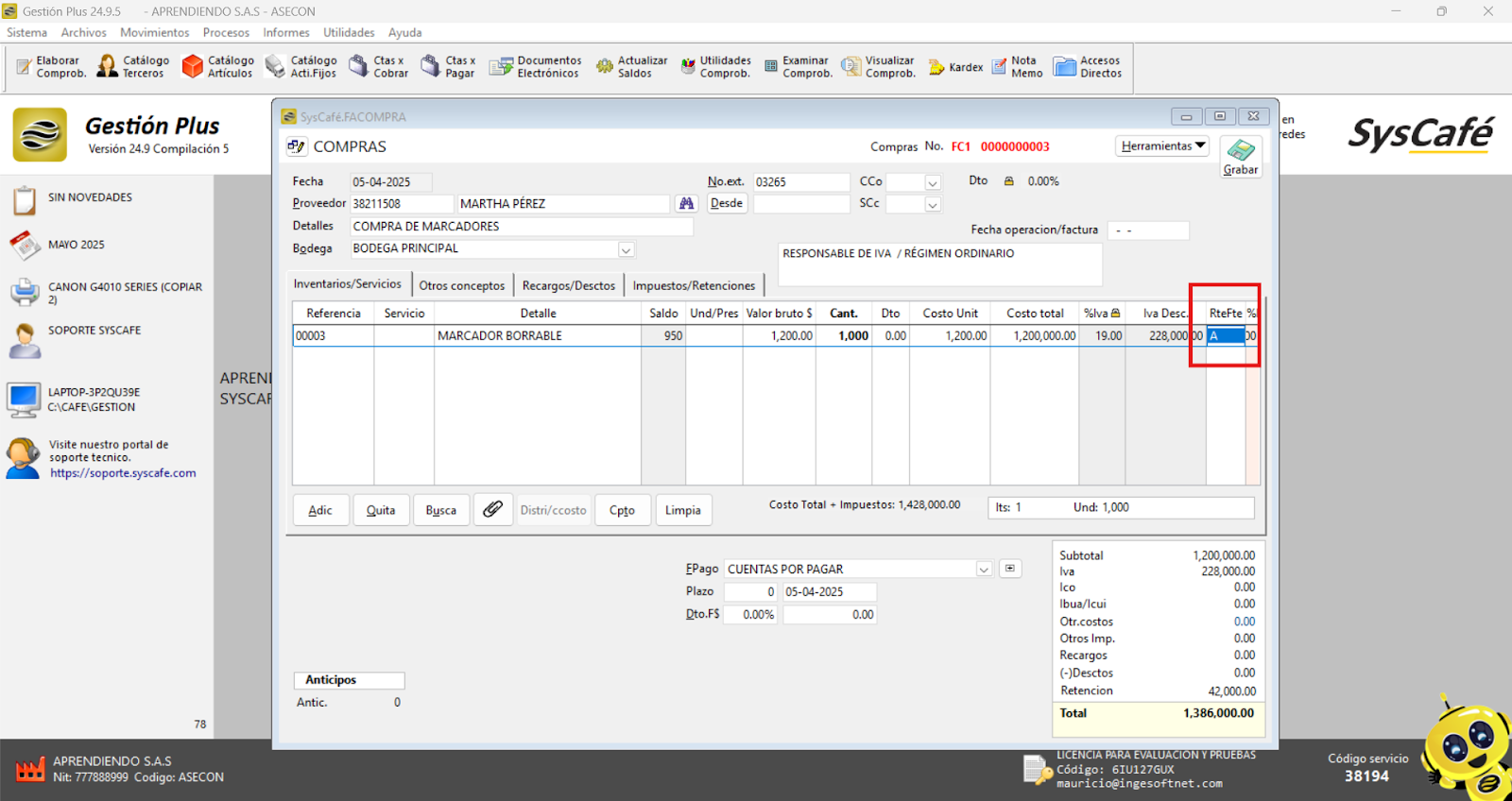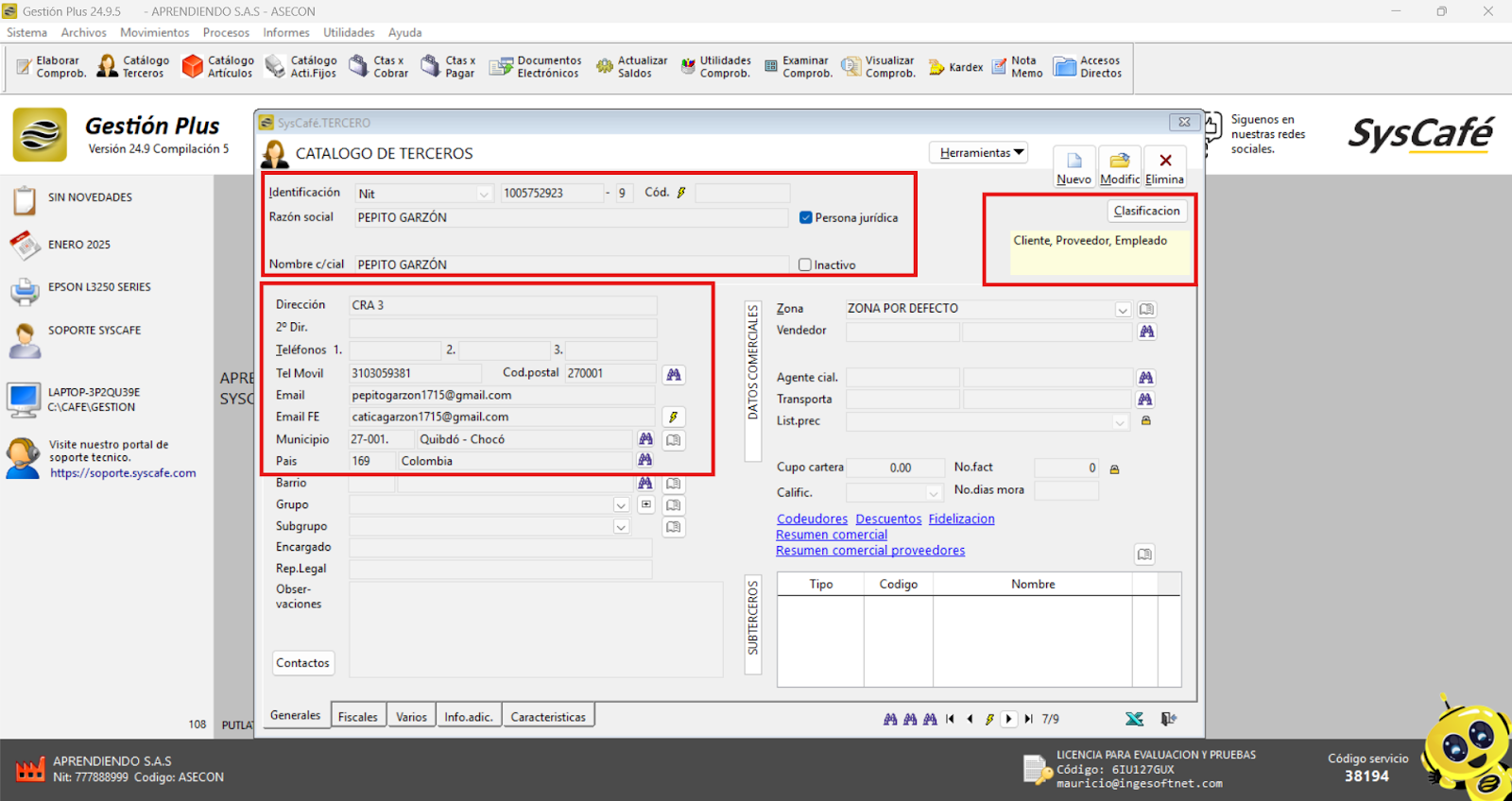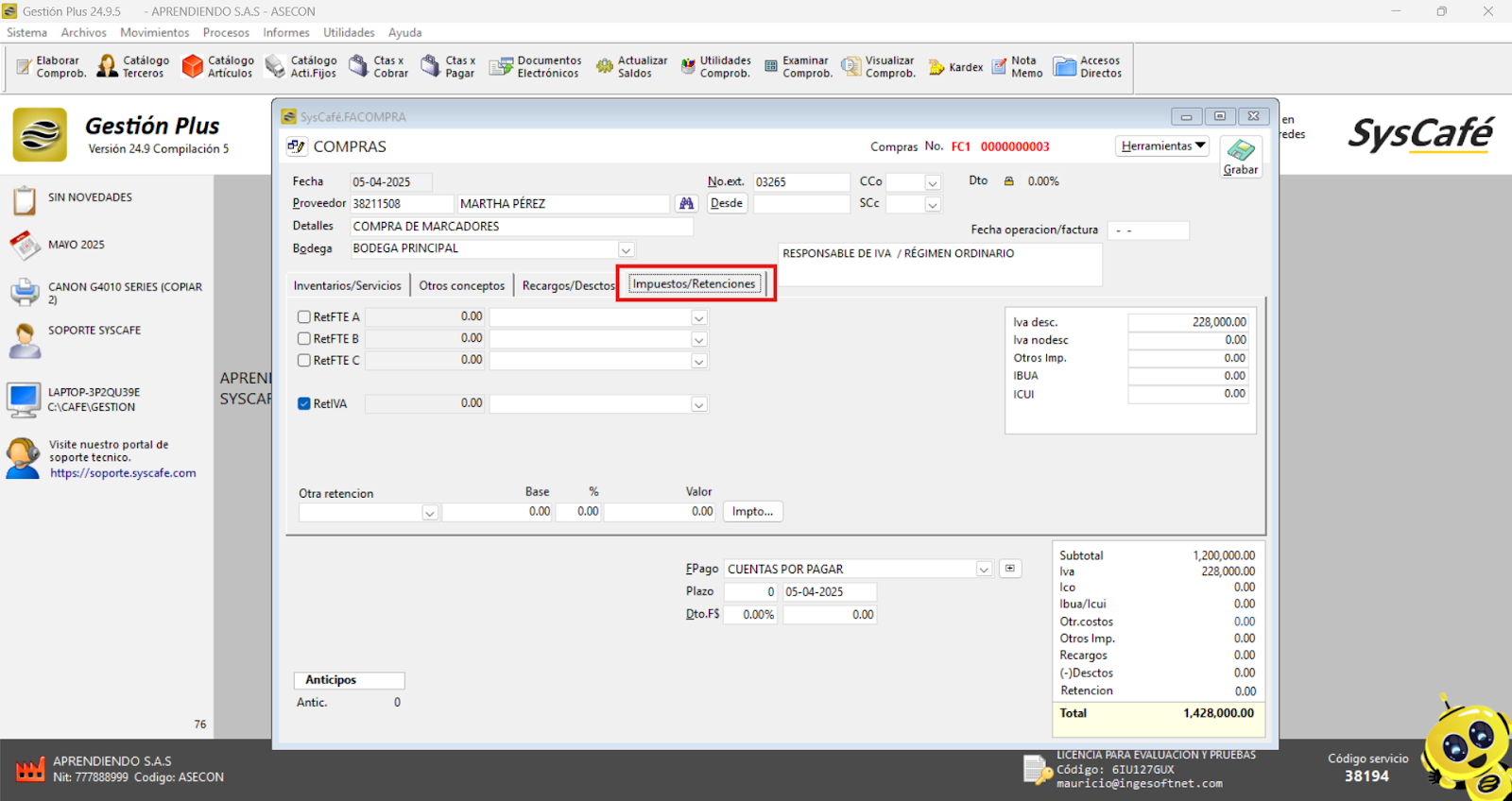 En Proveedor Tecnológico, selecciona SYSCAFÉ S.A.S.