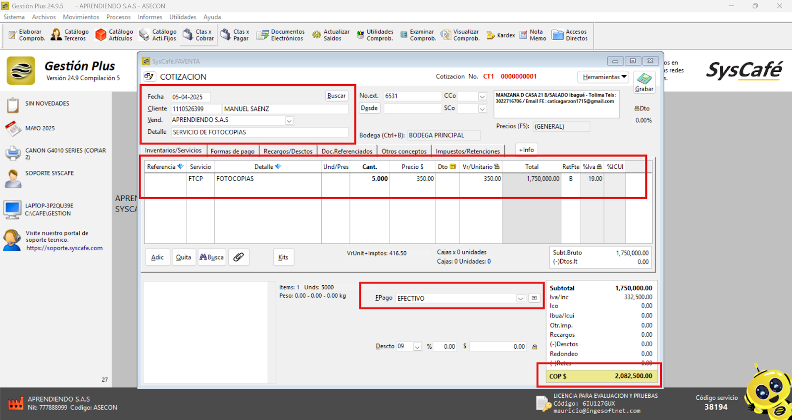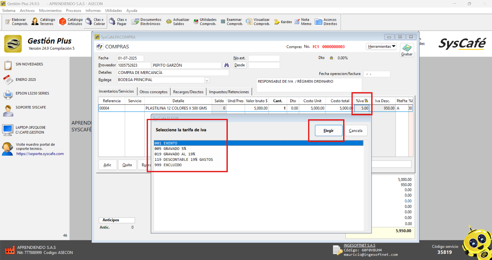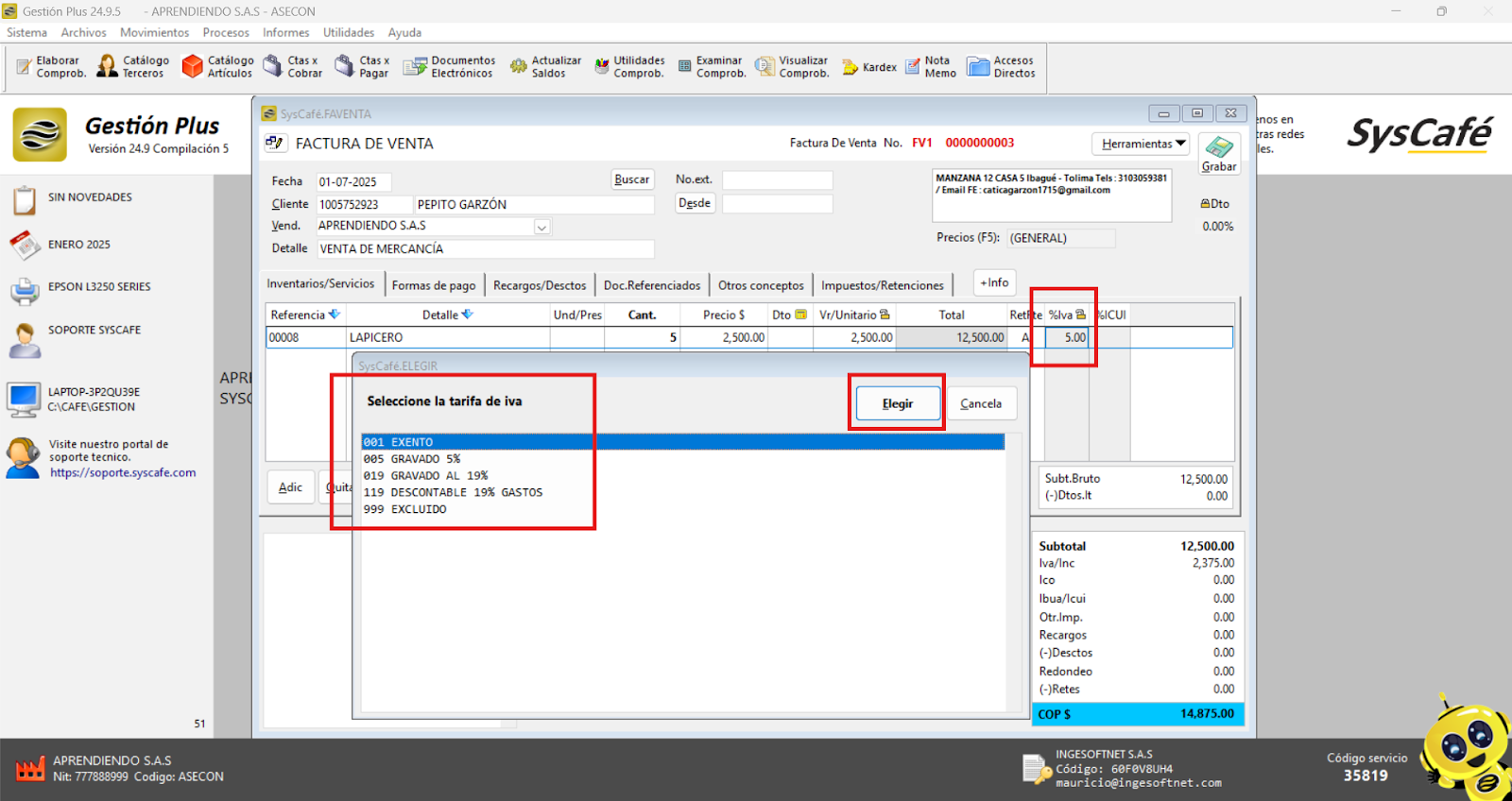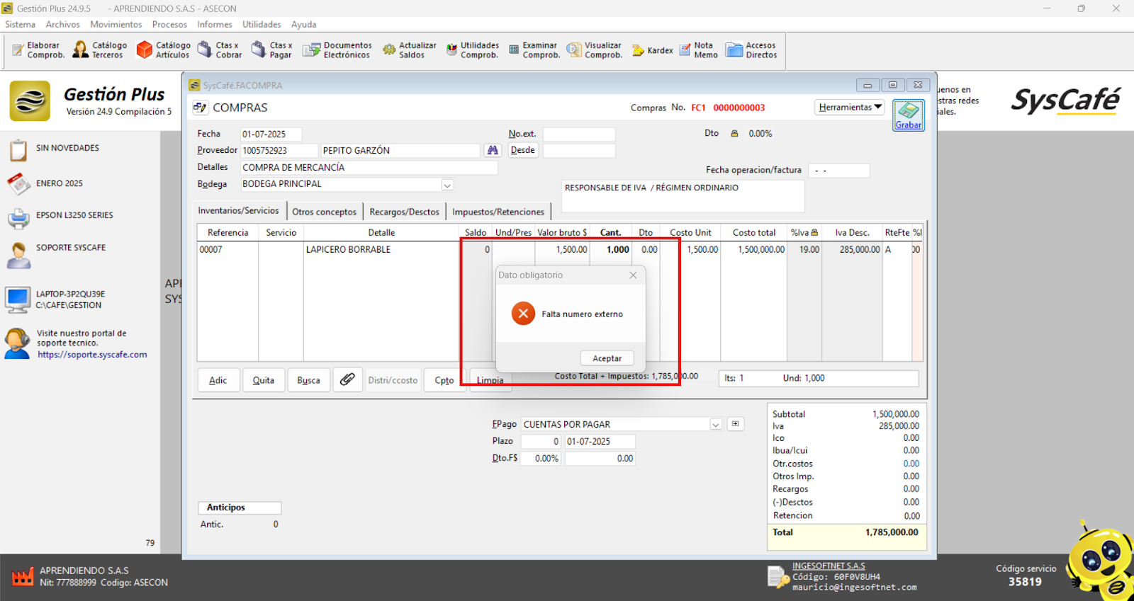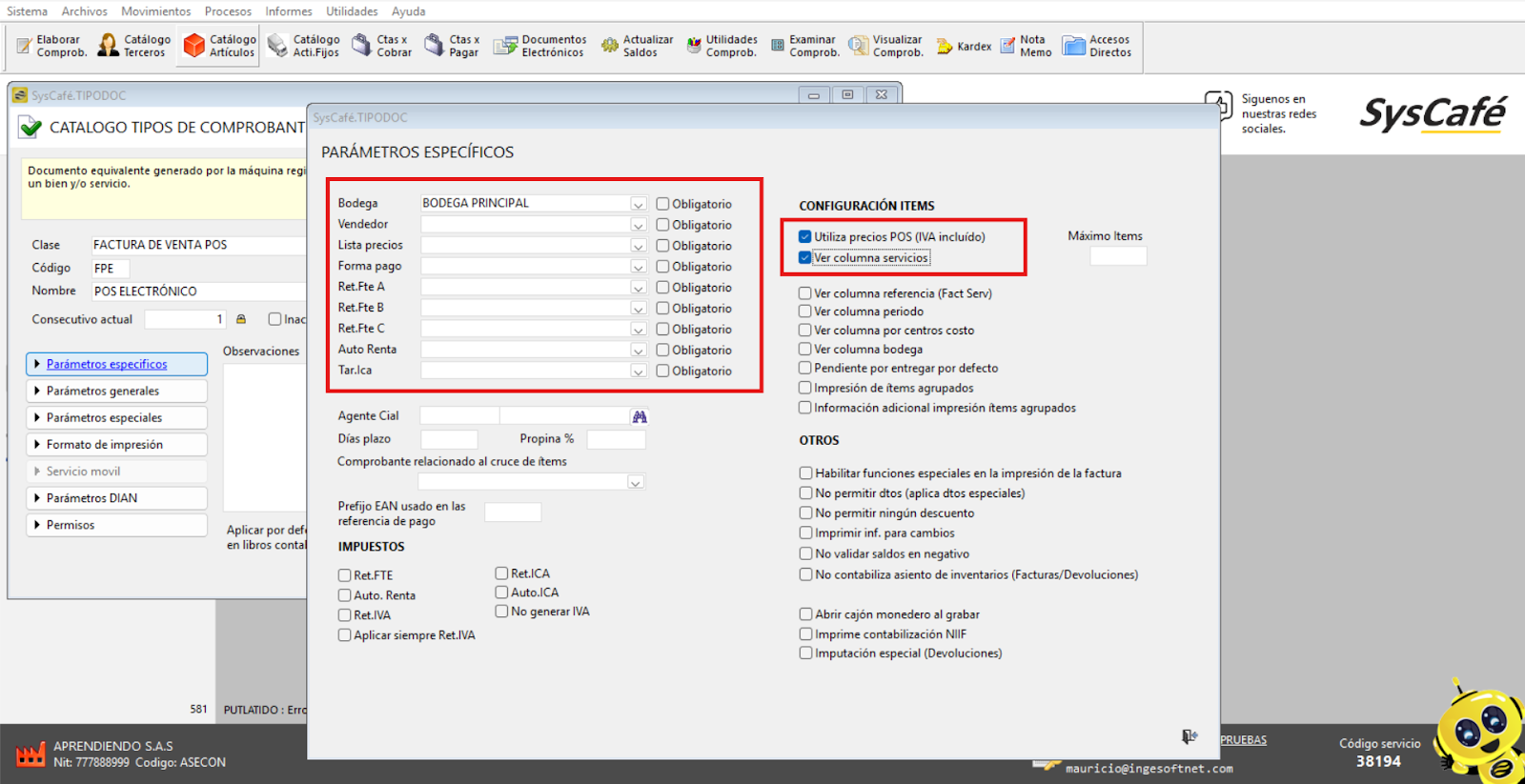 En Proveedor Tecnológico, selecciona SYSCAFÉ S.A.S.