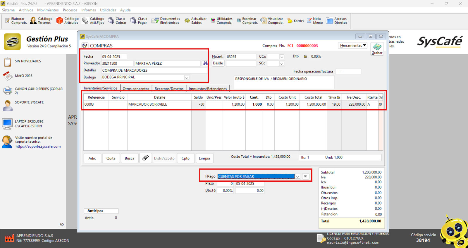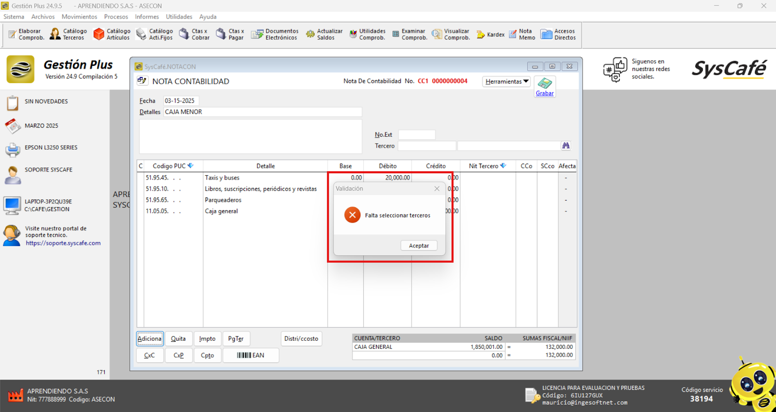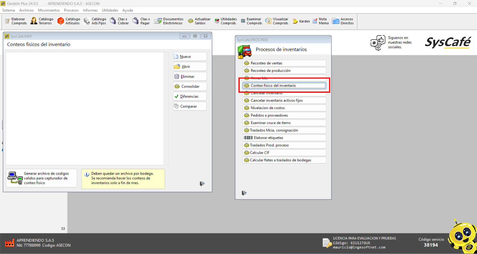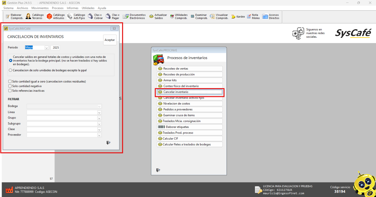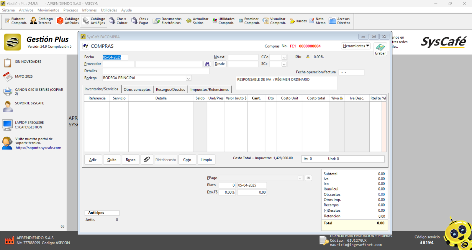 En Proveedor Tecnológico, selecciona SYSCAFÉ S.A.S.