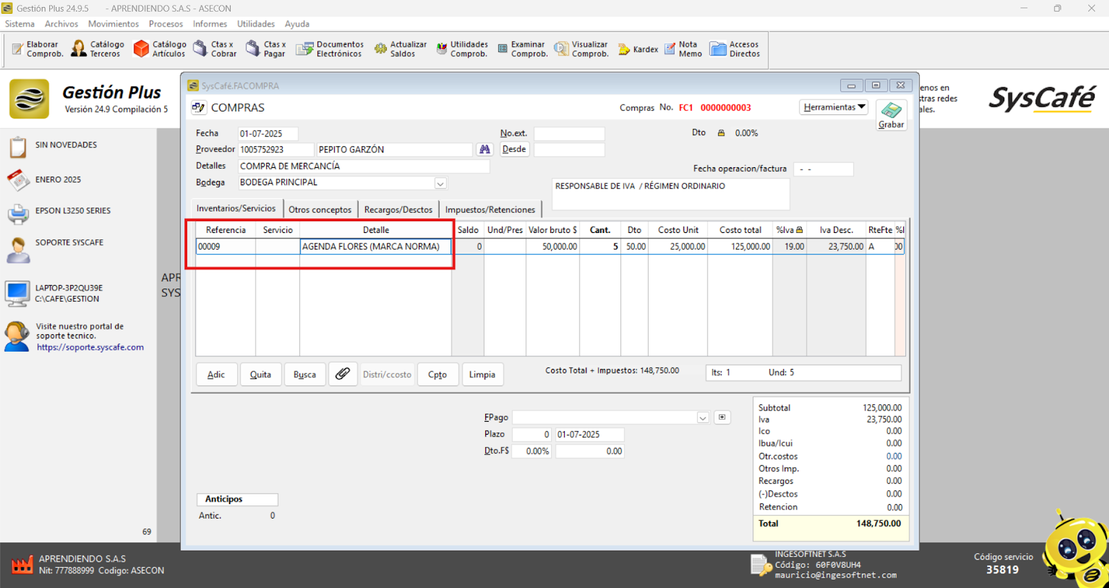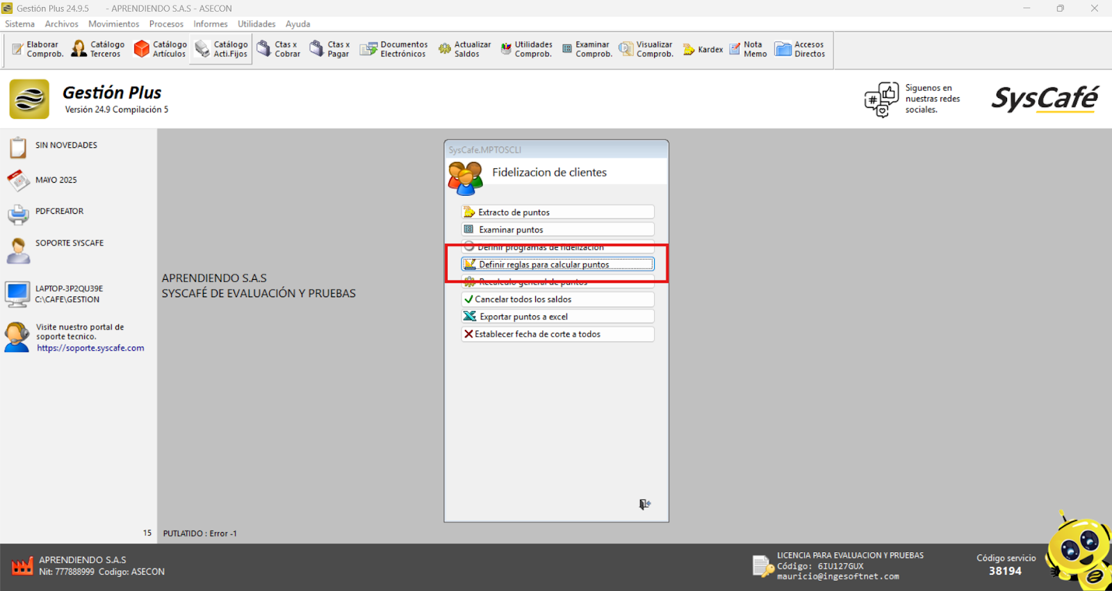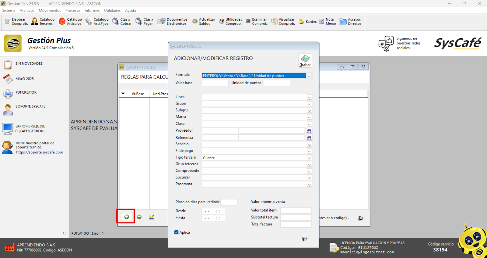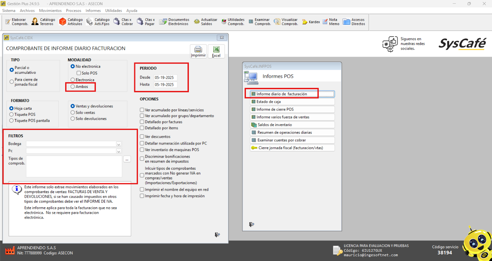 En Proveedor Tecnológico, selecciona SYSCAFÉ S.A.S.