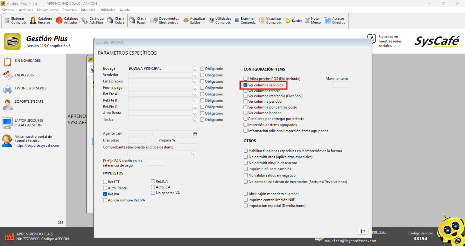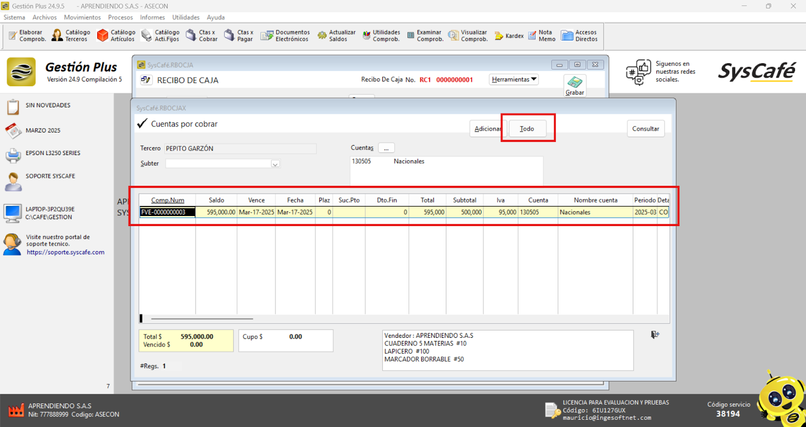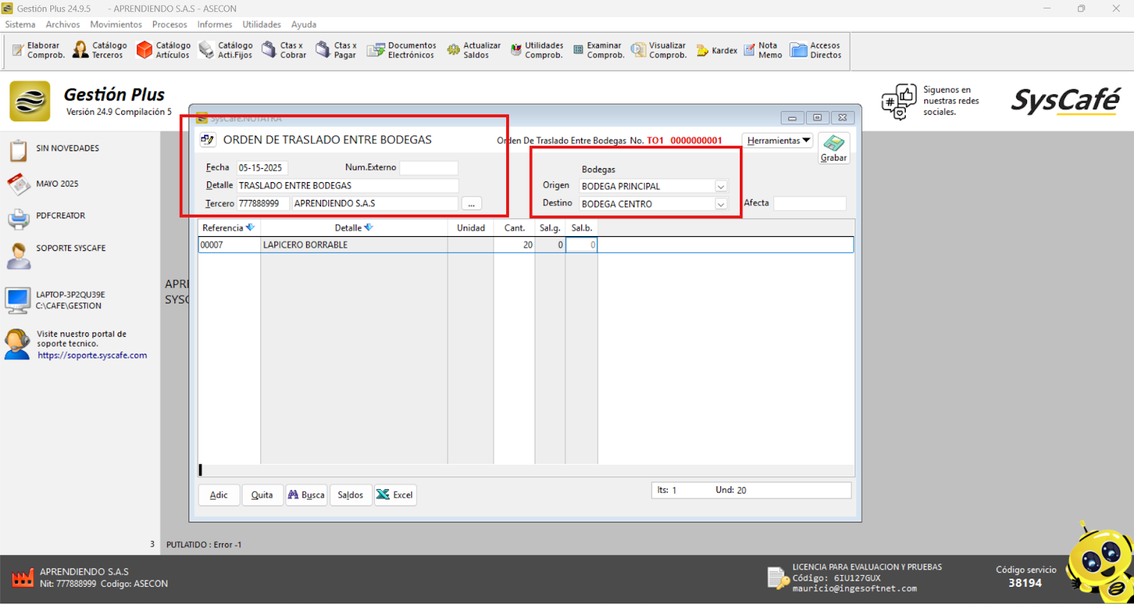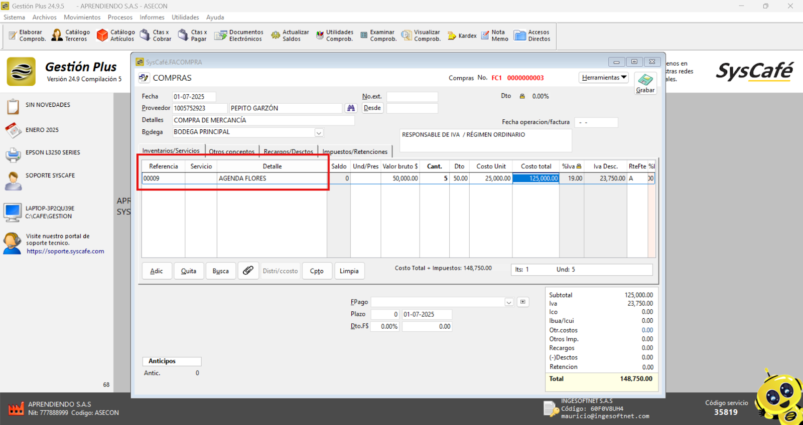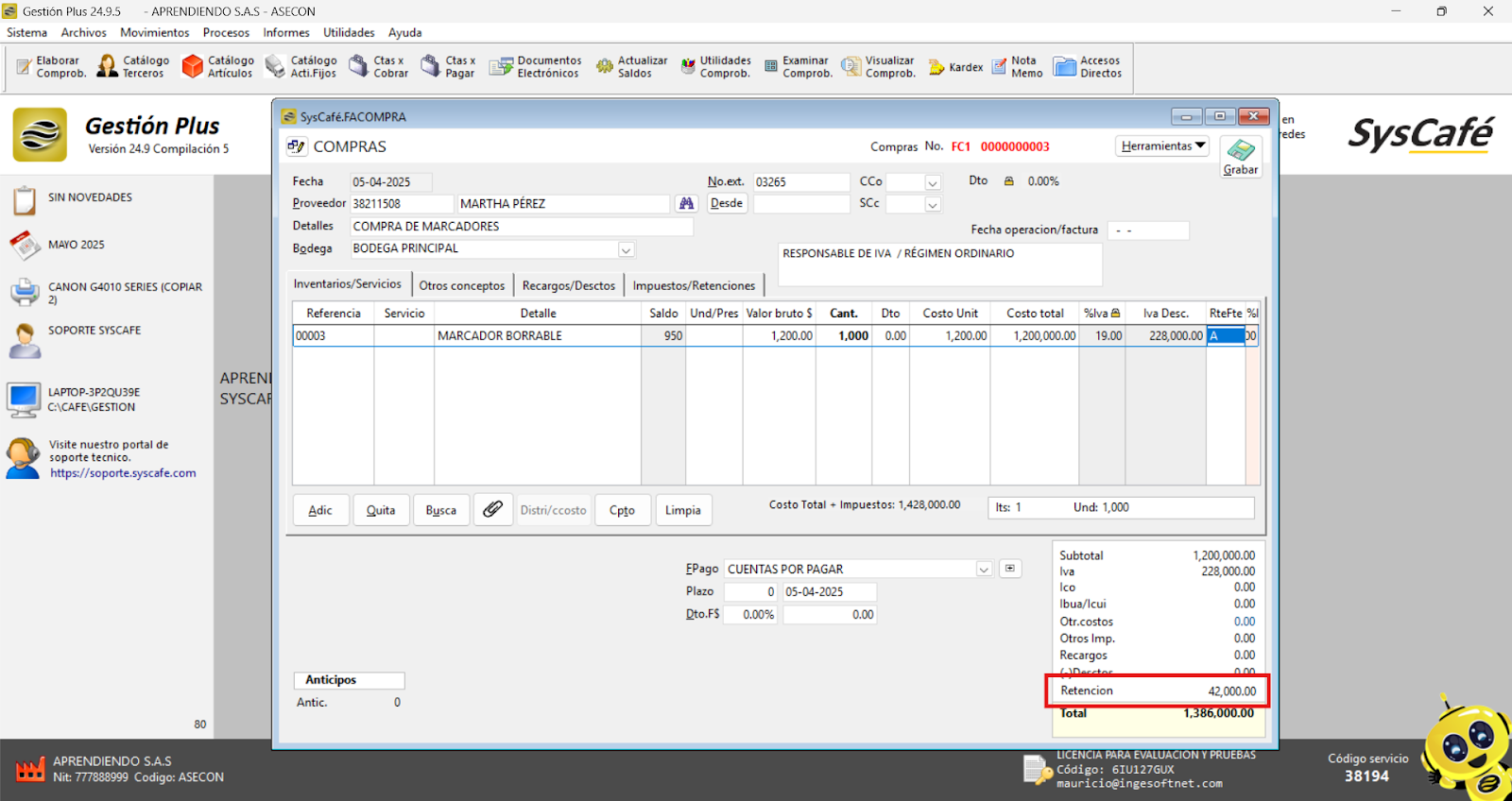 En Proveedor Tecnológico, selecciona SYSCAFÉ S.A.S.