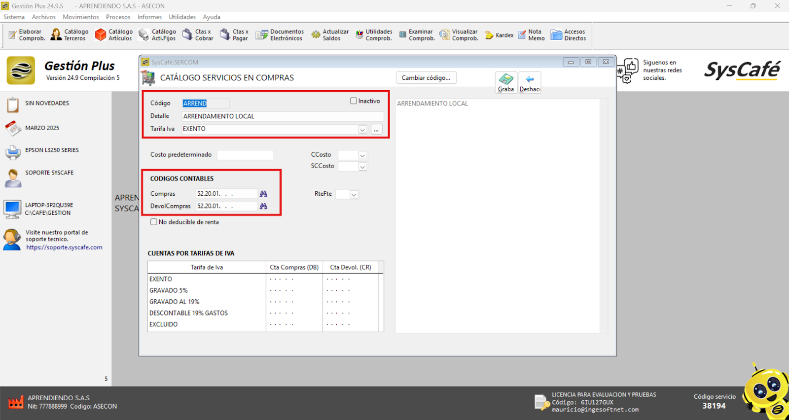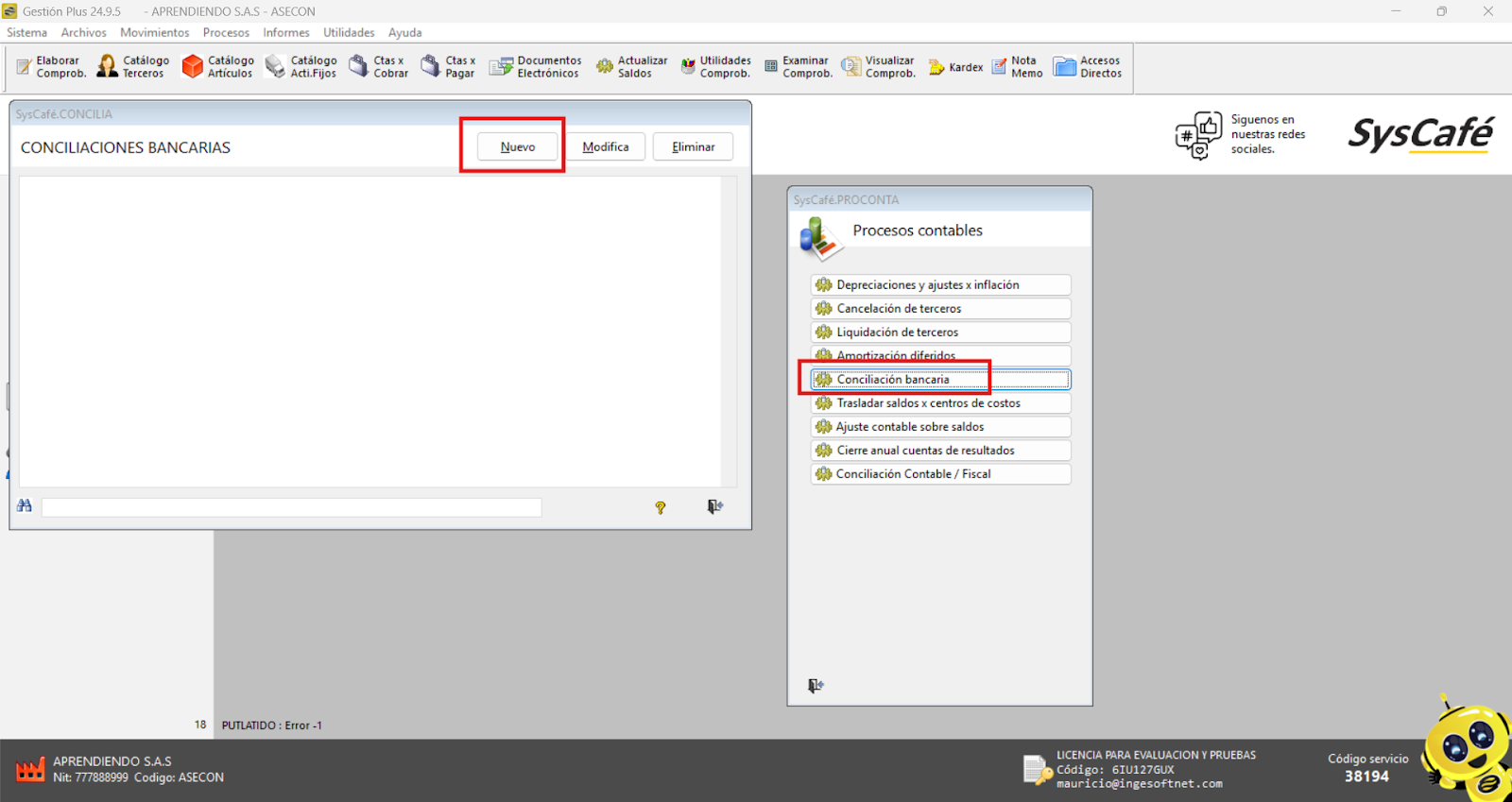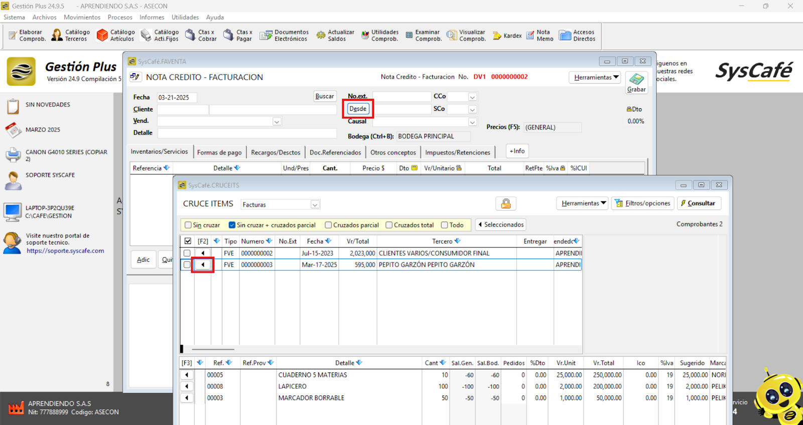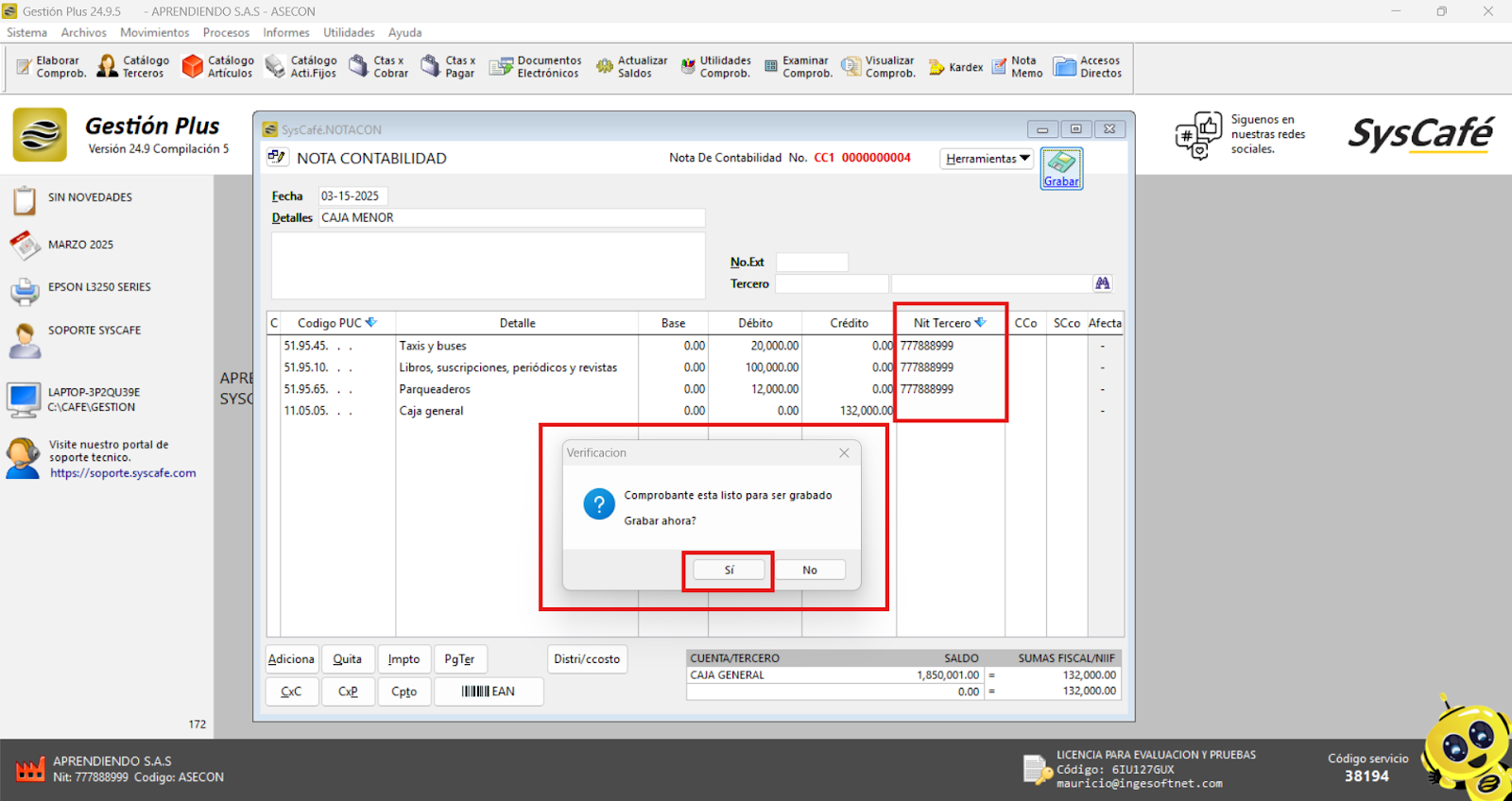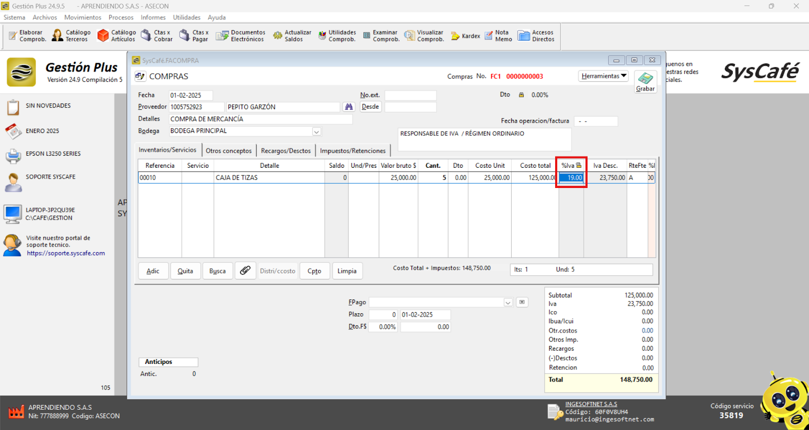 En Proveedor Tecnológico, selecciona SYSCAFÉ S.A.S.