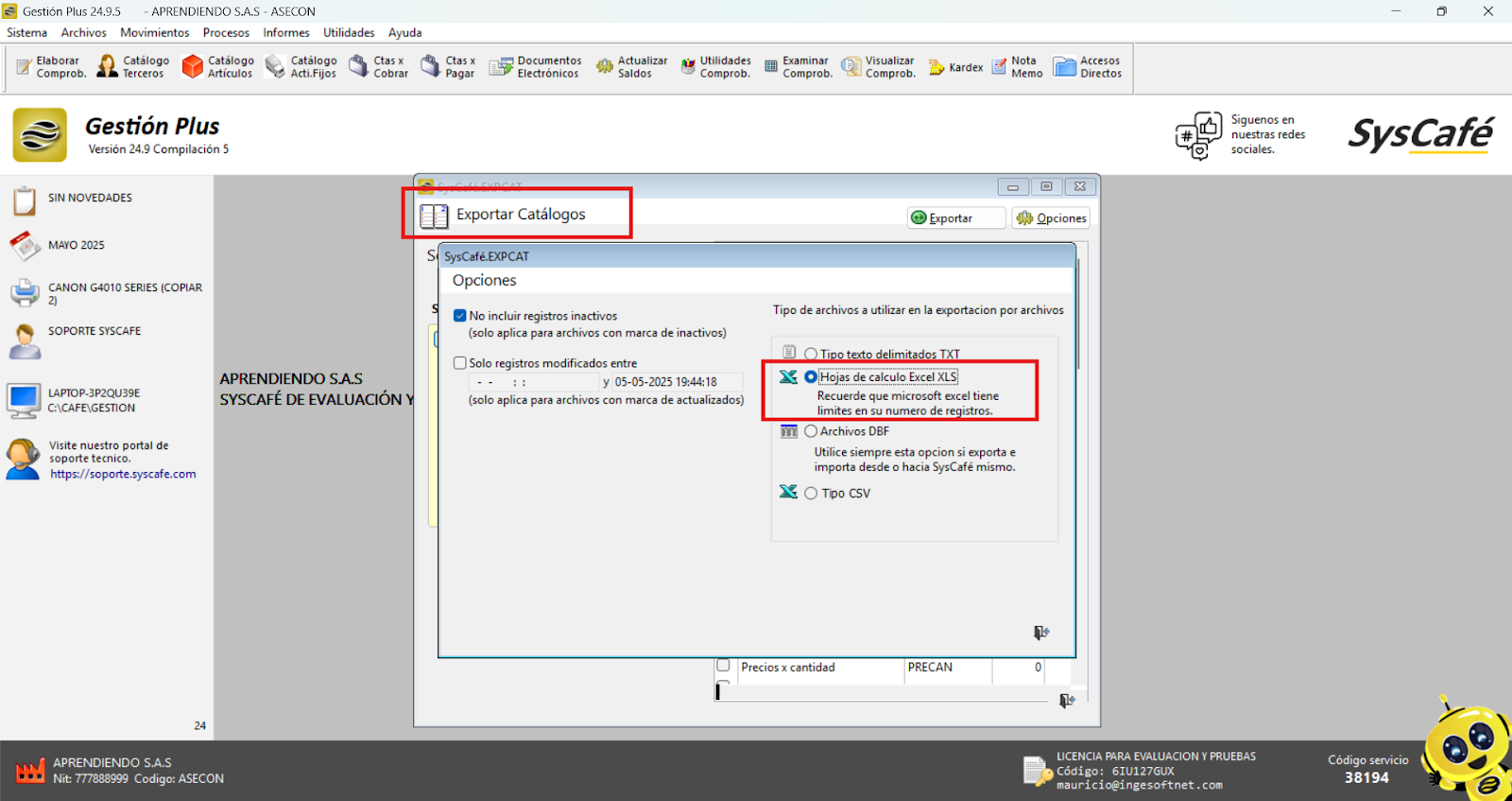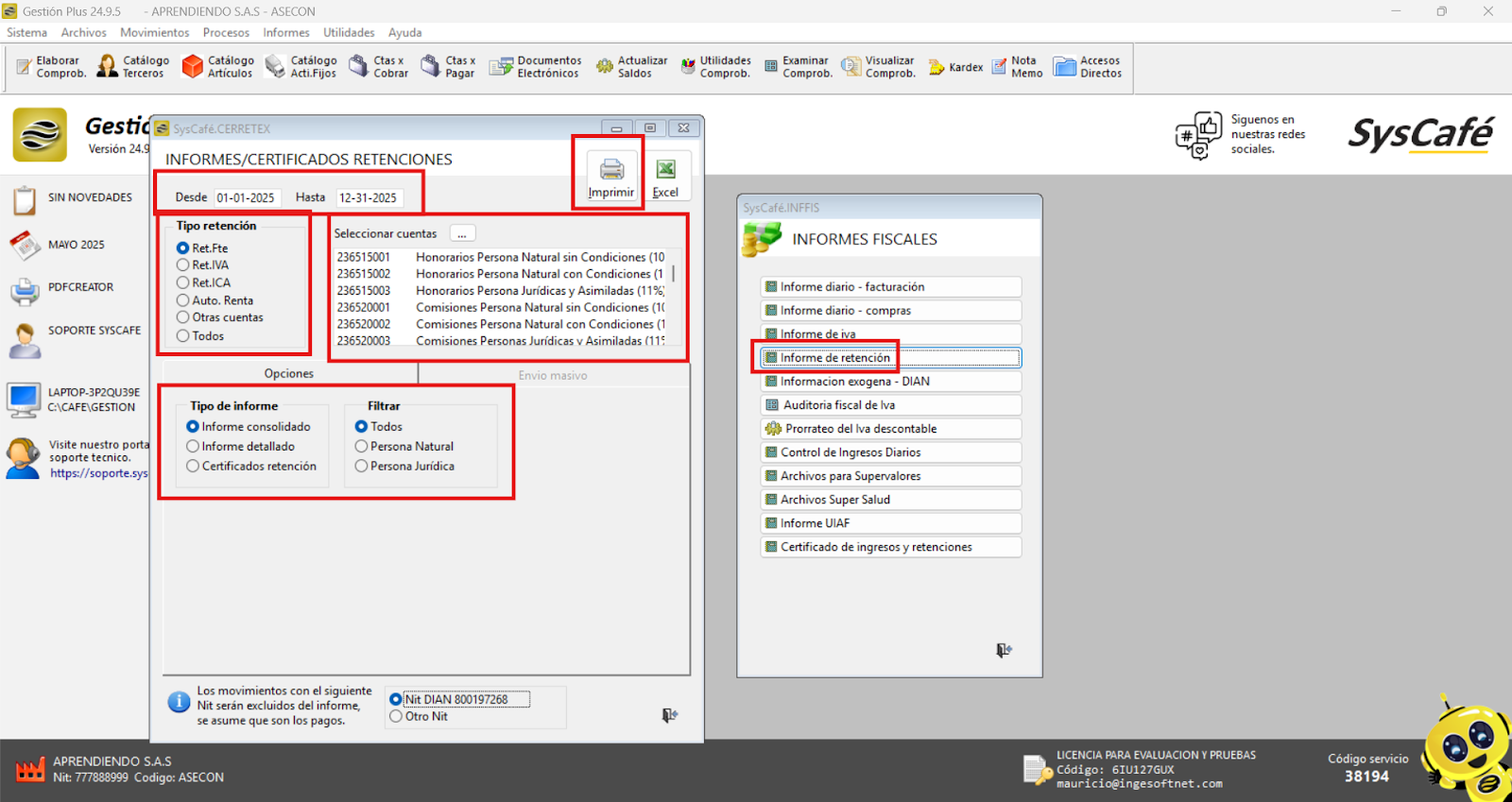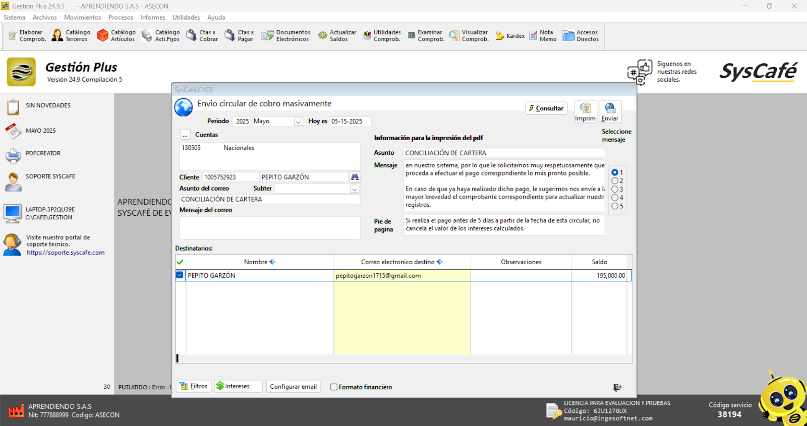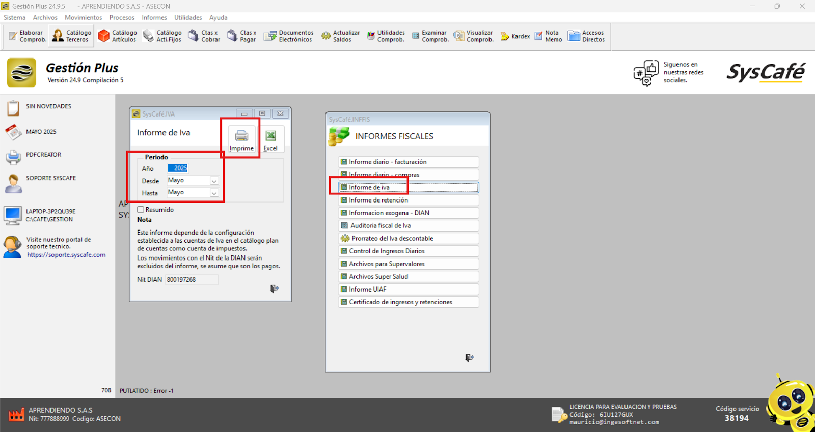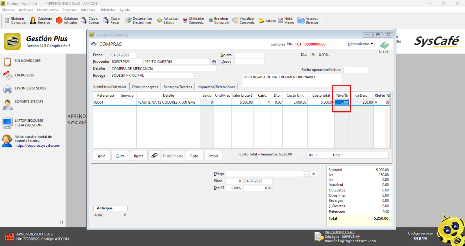 En Proveedor Tecnológico, selecciona SYSCAFÉ S.A.S.