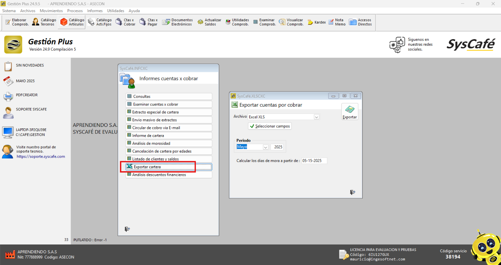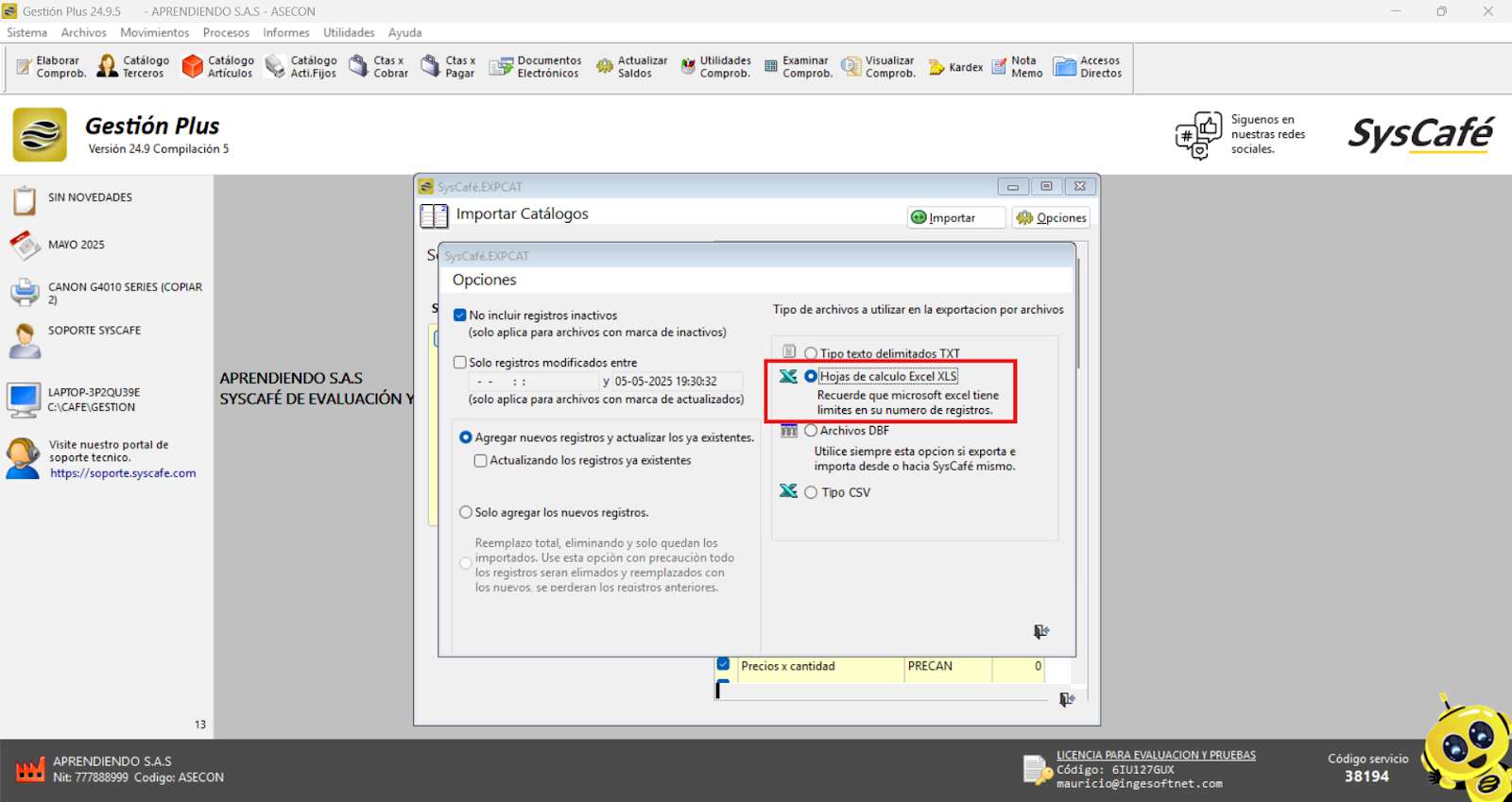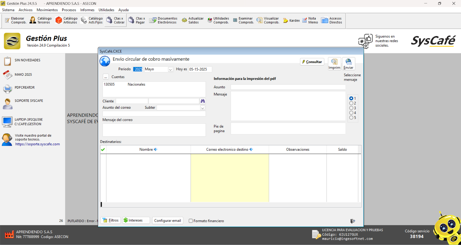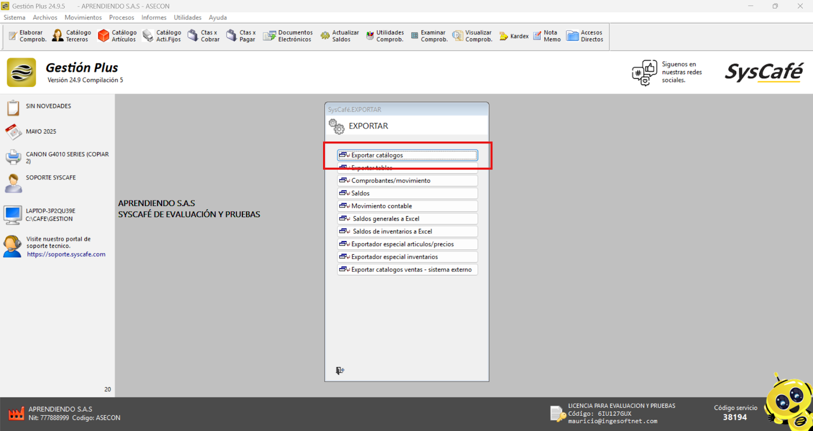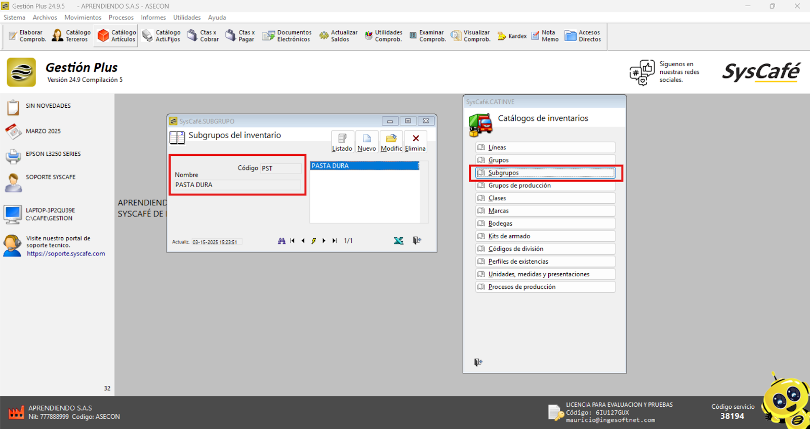 En Proveedor Tecnológico, selecciona SYSCAFÉ S.A.S.