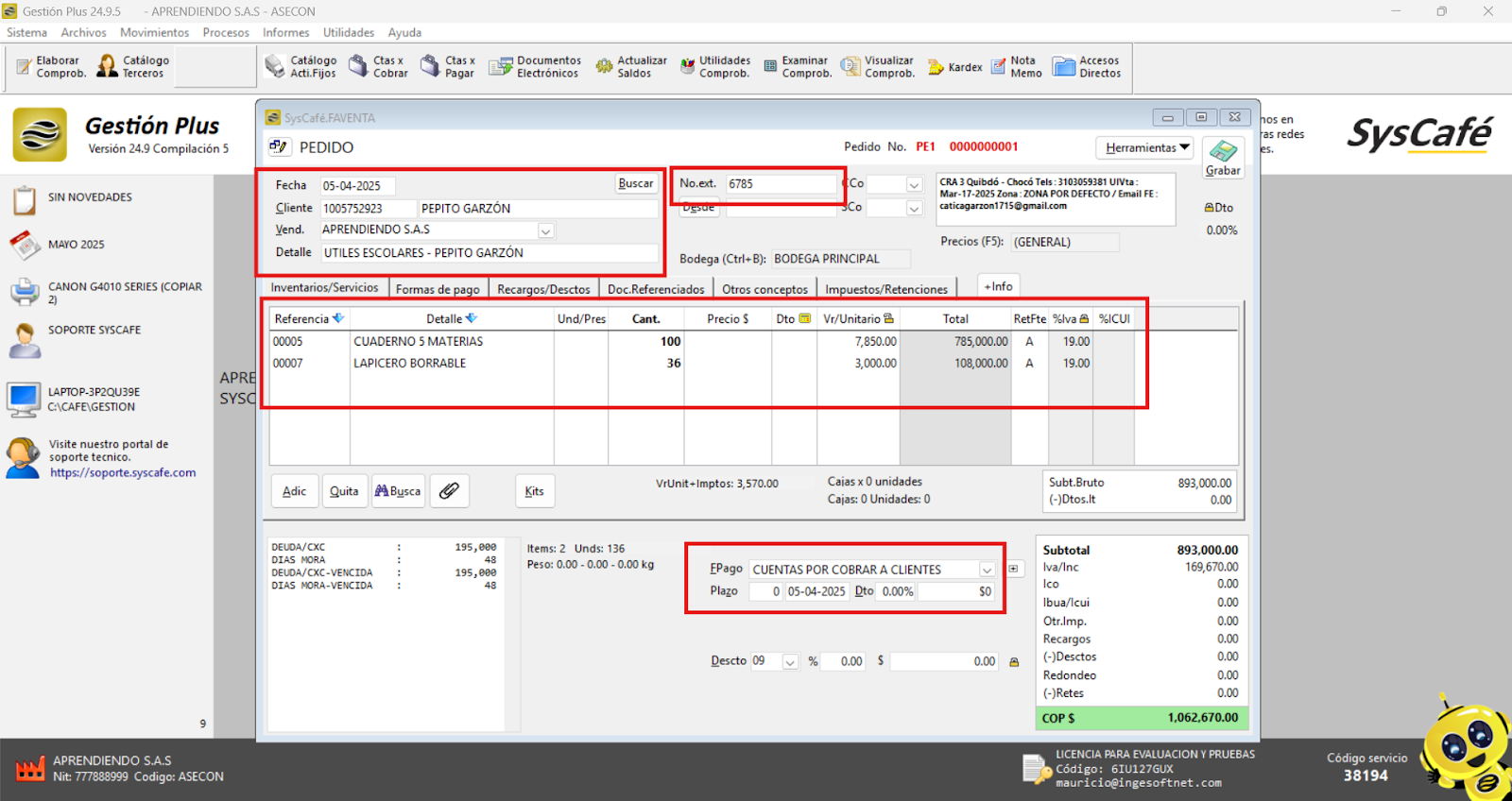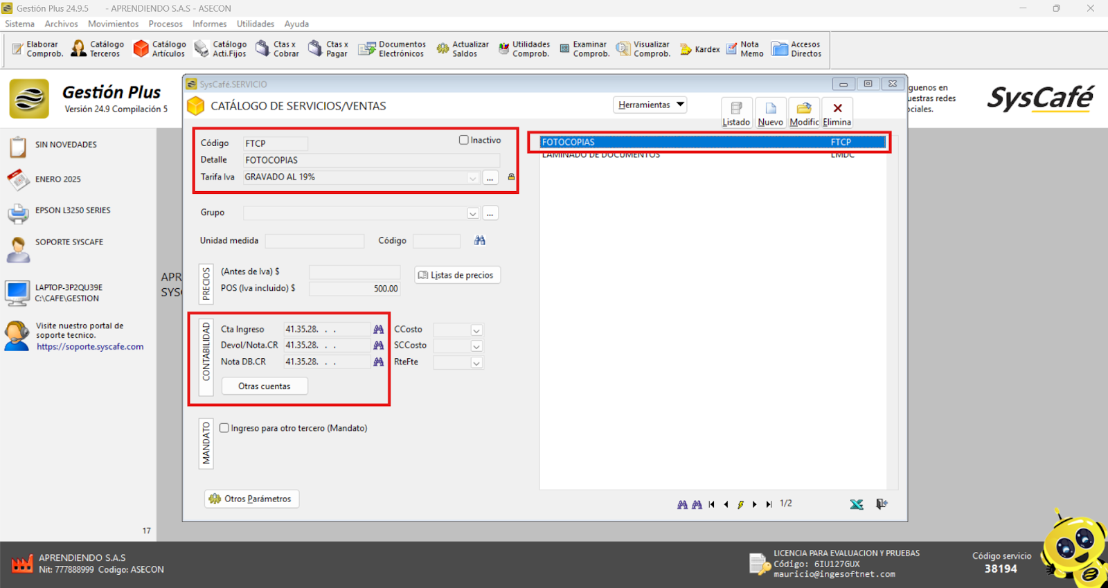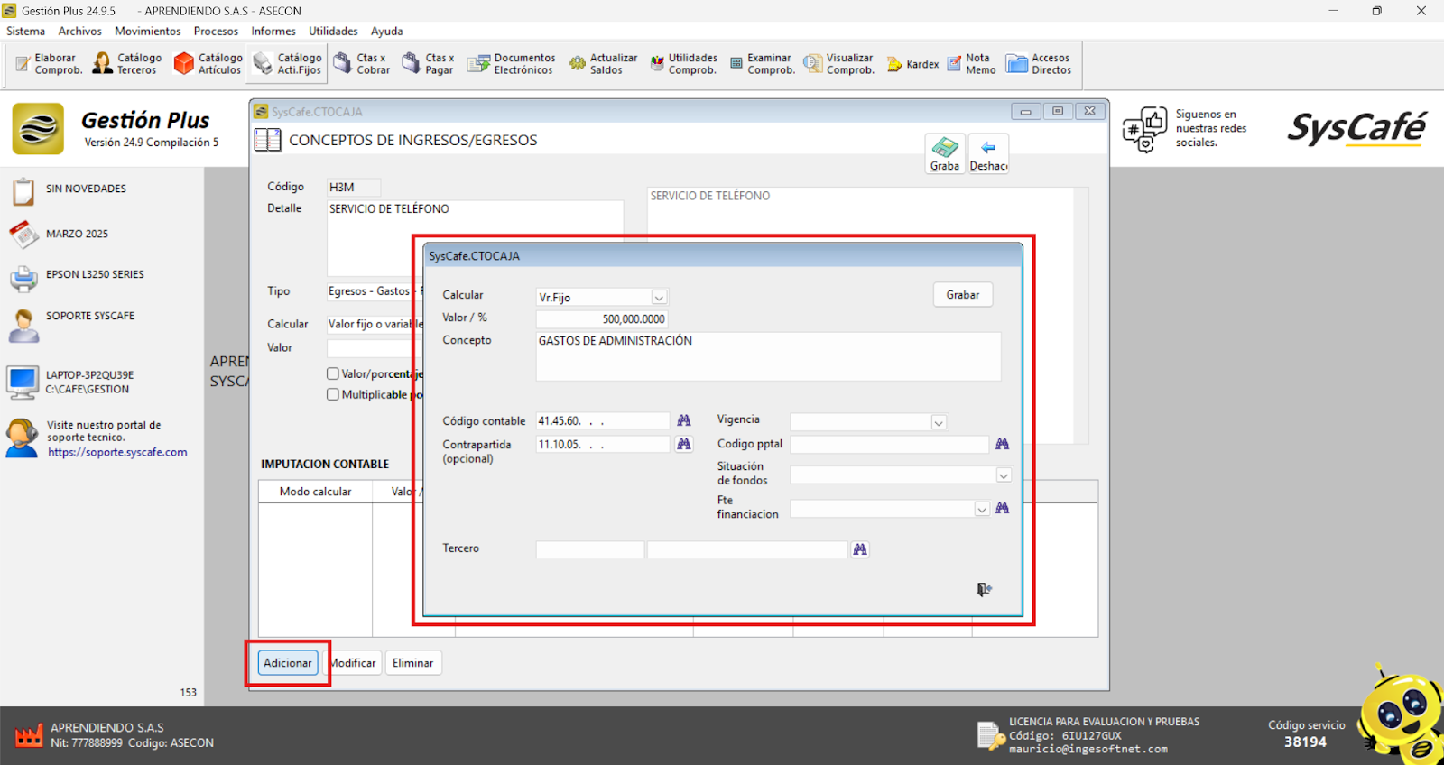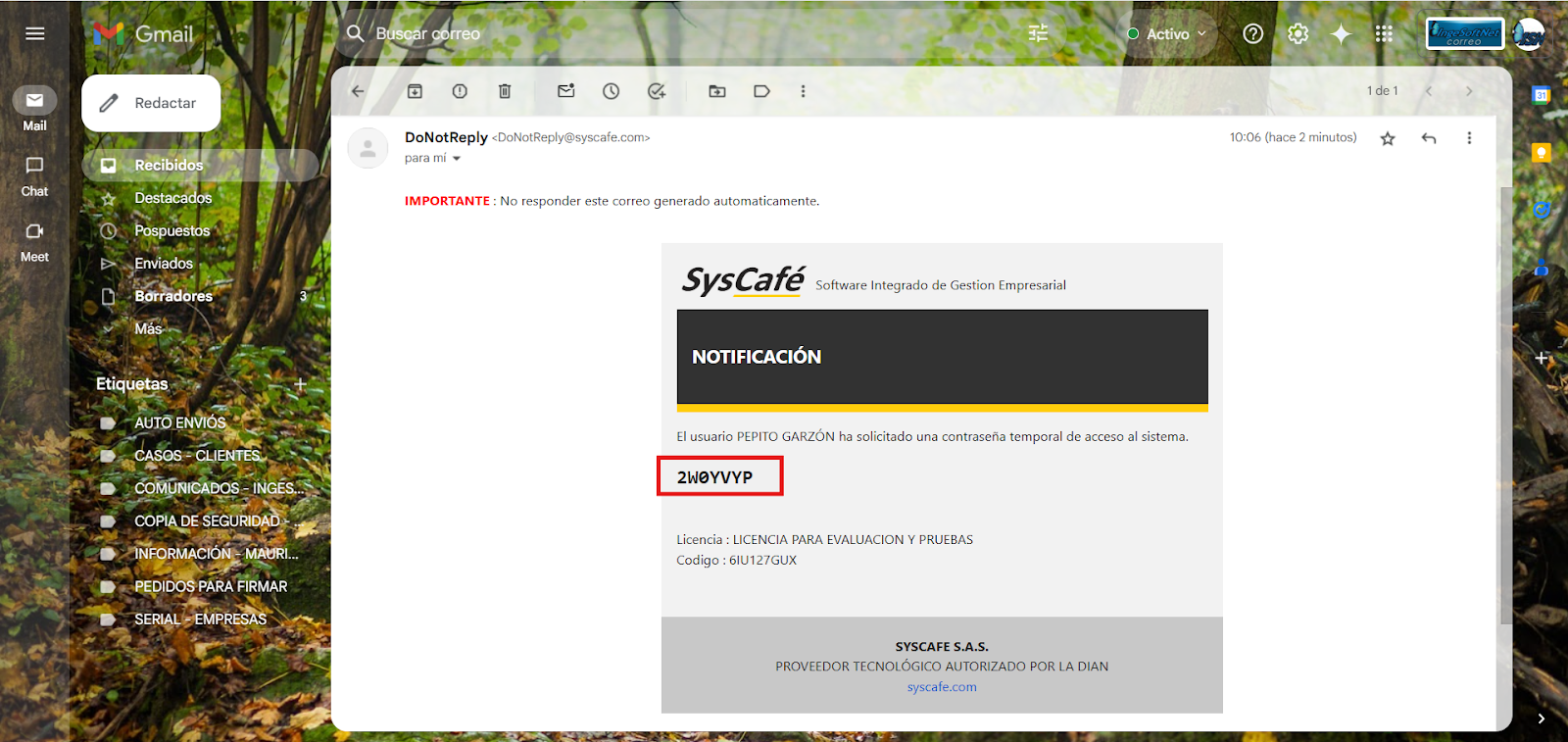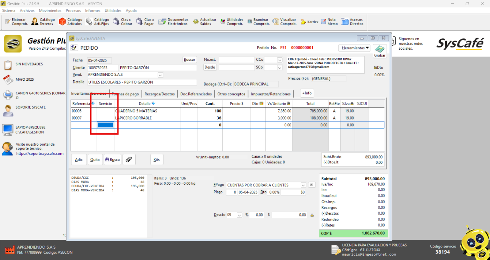 En Proveedor Tecnológico, selecciona SYSCAFÉ S.A.S.