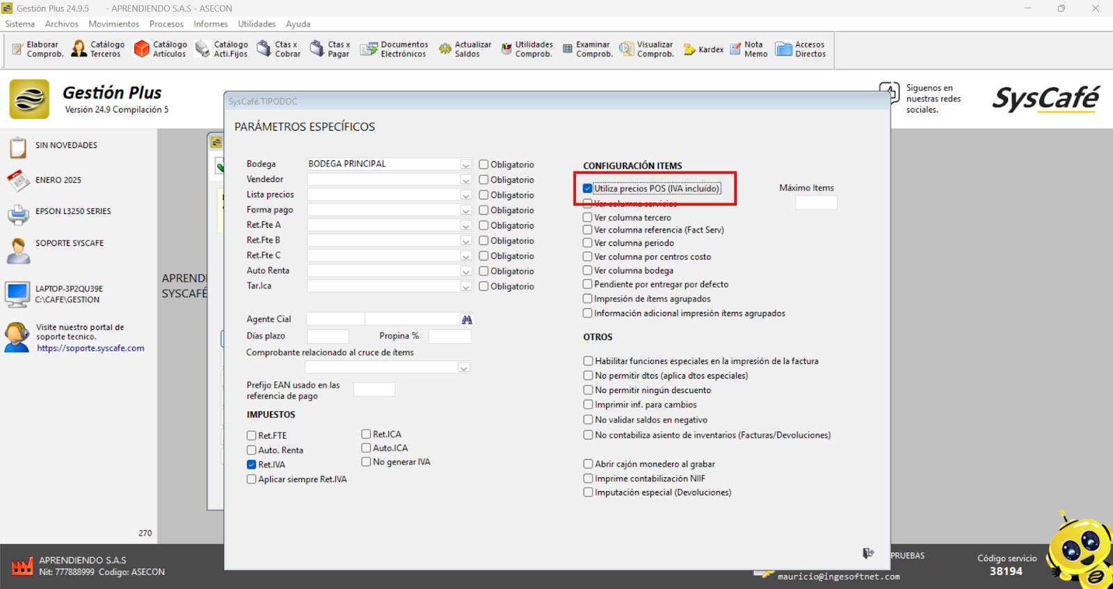 Ruta: Sistema – Parámetros – POS