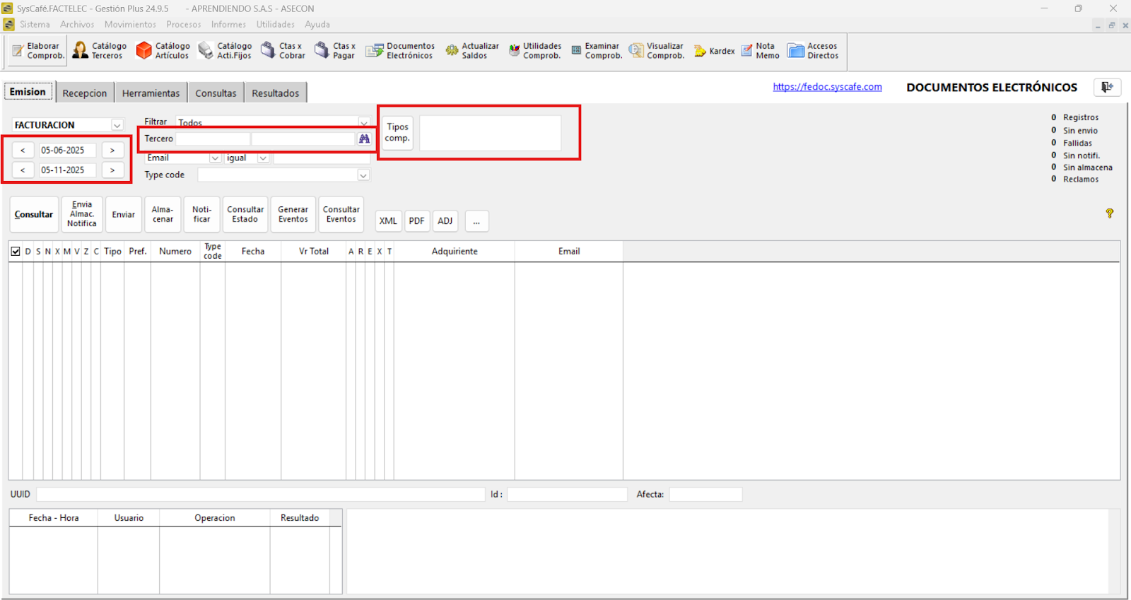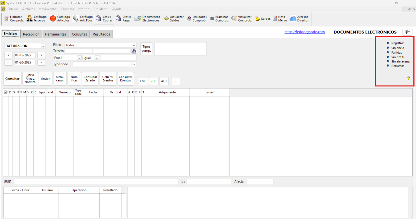 Al realizar una consulta en esta consola de documentos electrónicos, asegúrese de que todos los indicadores se encuentren en color negro y que únicamente se muestre la cantidad de registros procesados correctamente.