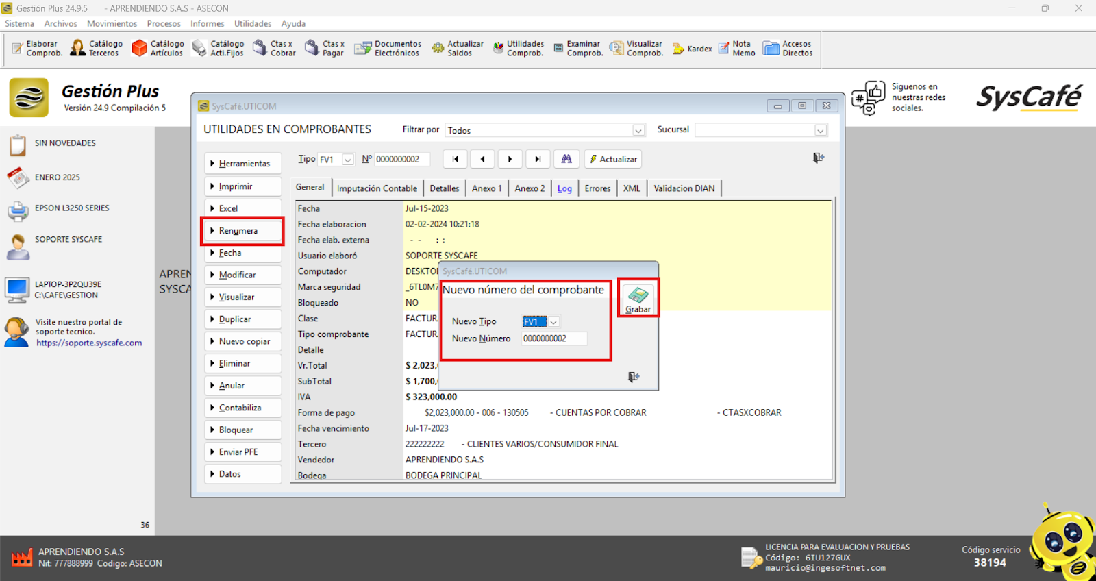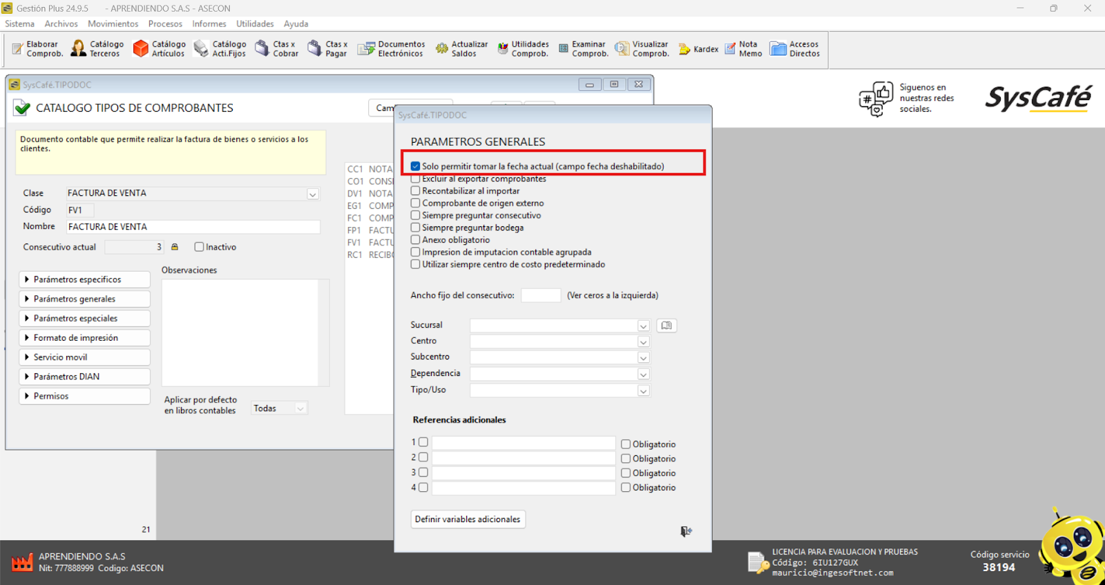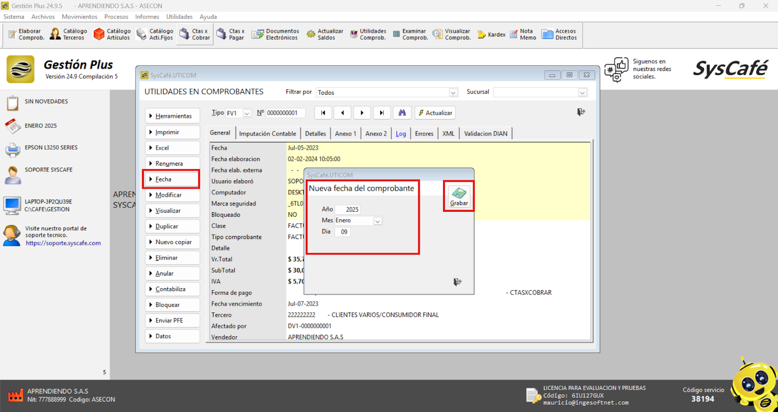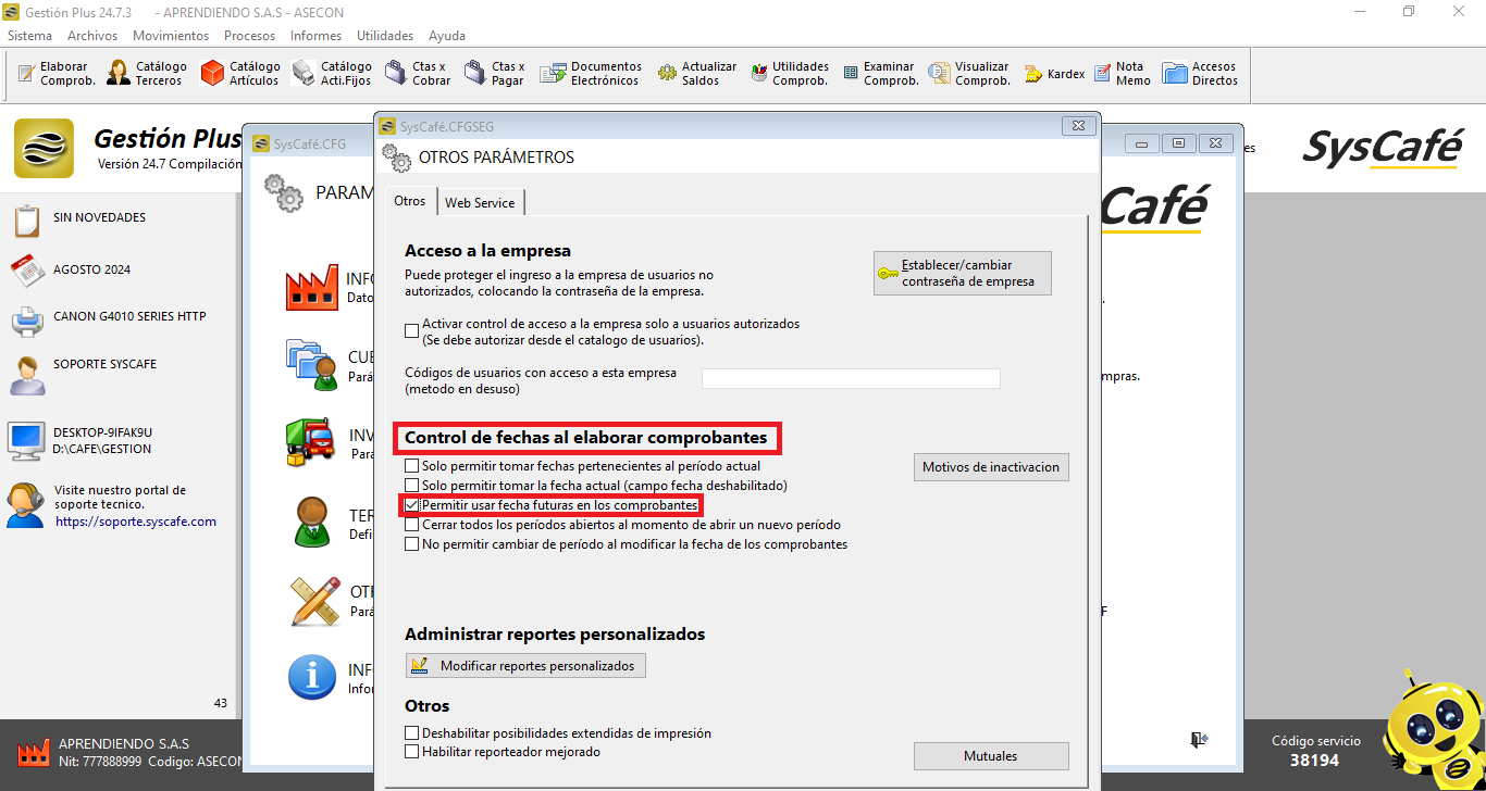 - Reinicia el sistema: Cierra el software y vuelve a ingresarlo para que los cambios surtan efecto. Esto asegura que el nuevo parámetro se aplique correctamente y permita el registro de comprobantes con fechas futuras.
