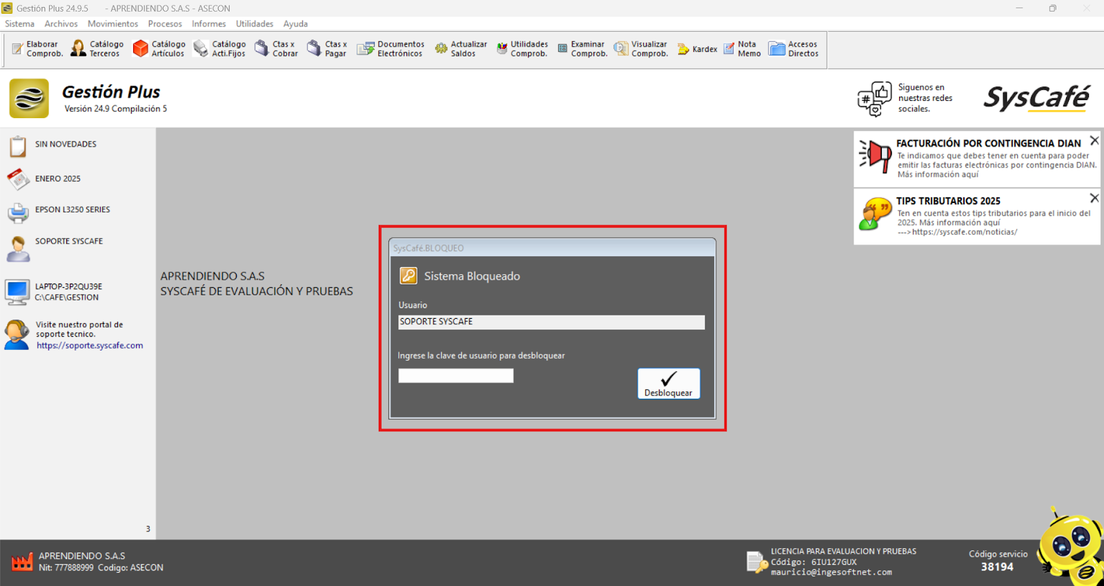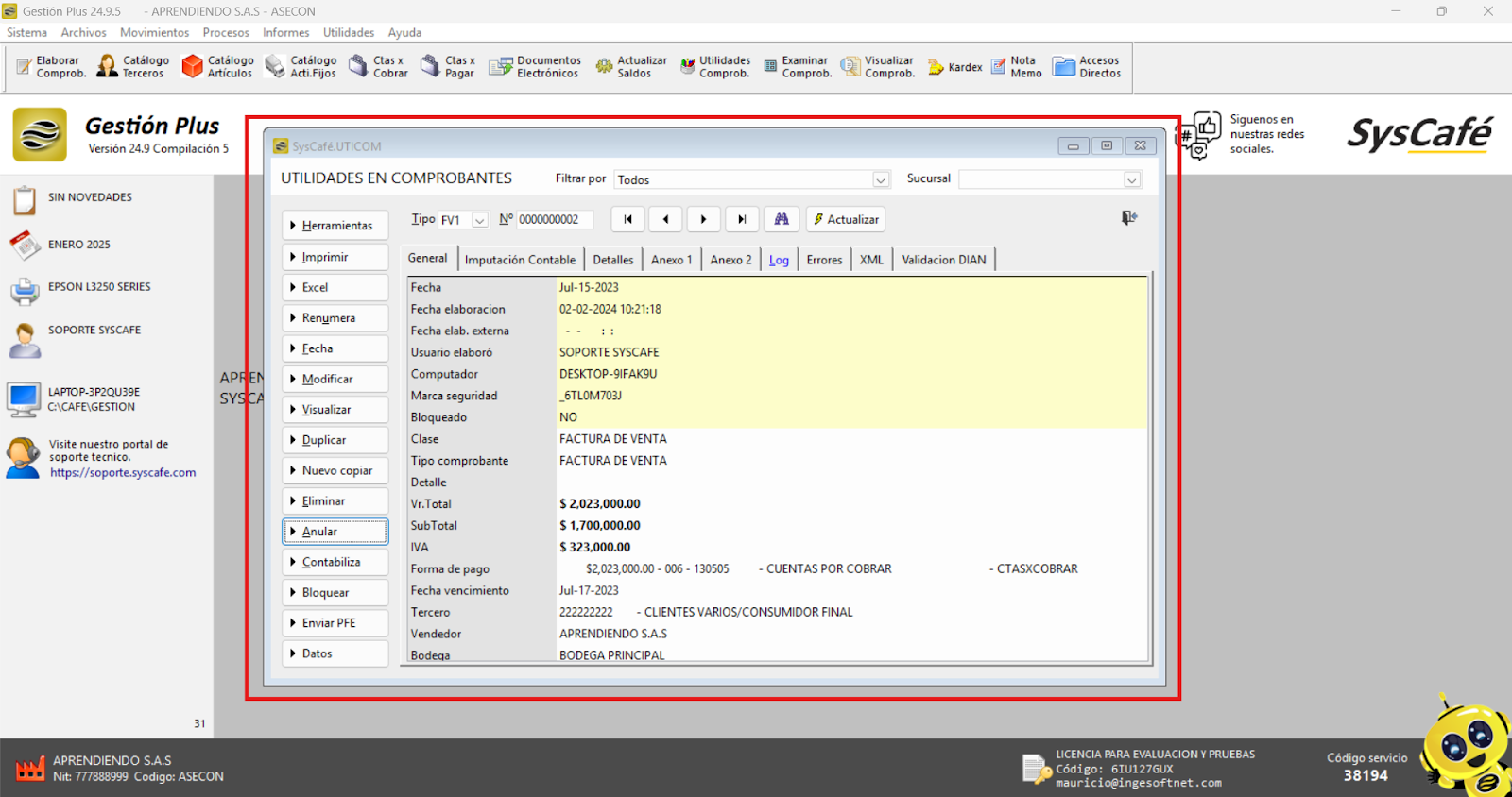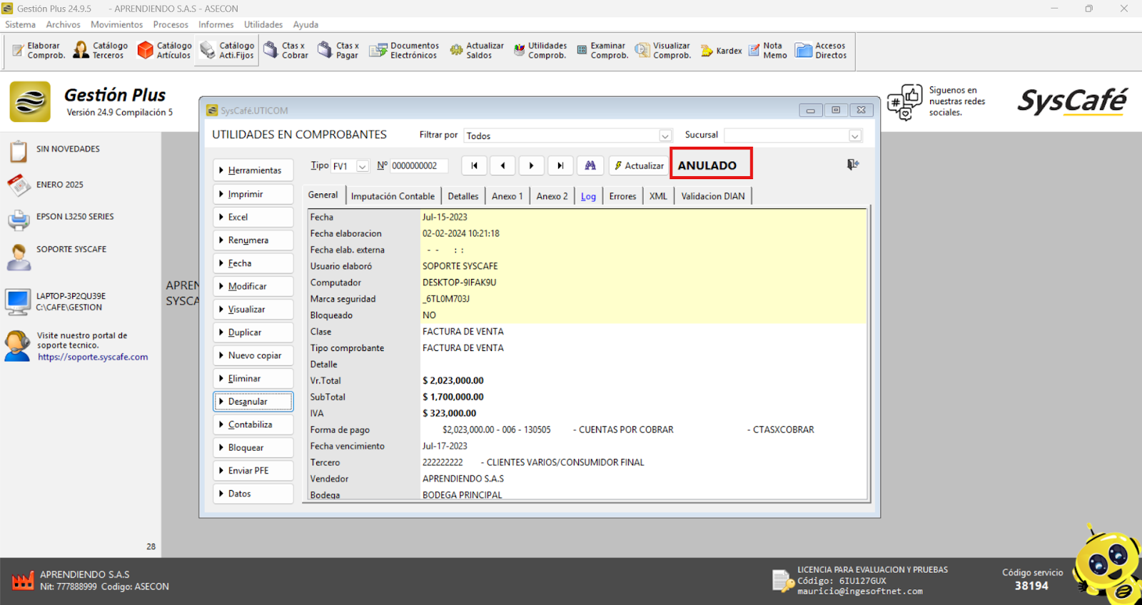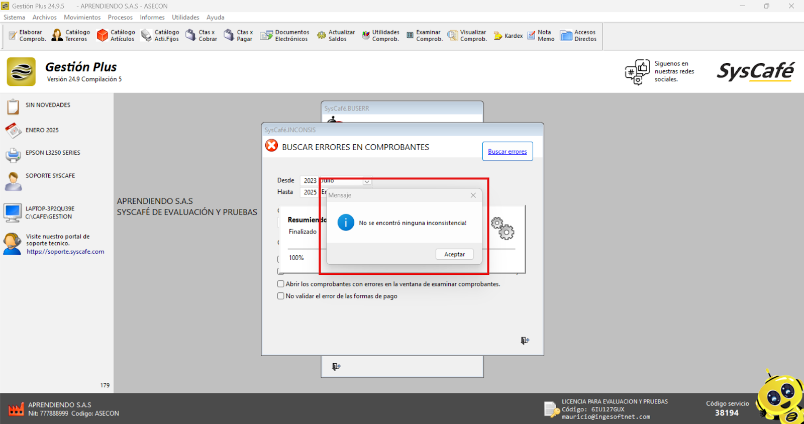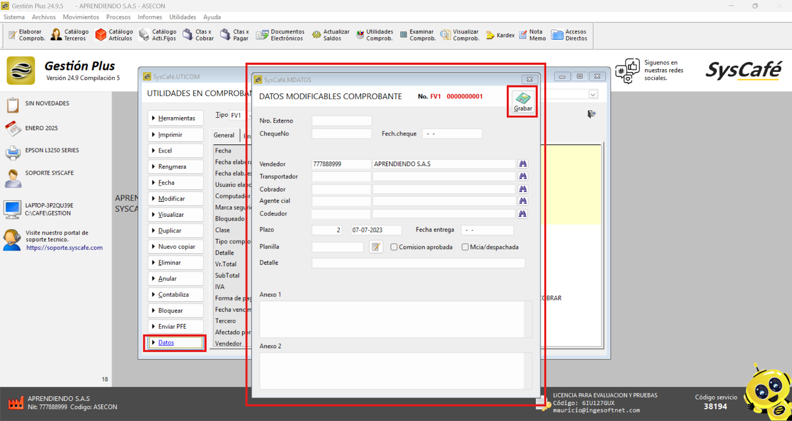 - Reinicia el sistema: Cierra el software y vuelve a ingresarlo para que los cambios surtan efecto. Esto asegura que el nuevo parámetro se aplique correctamente y permita el registro de comprobantes con fechas futuras.