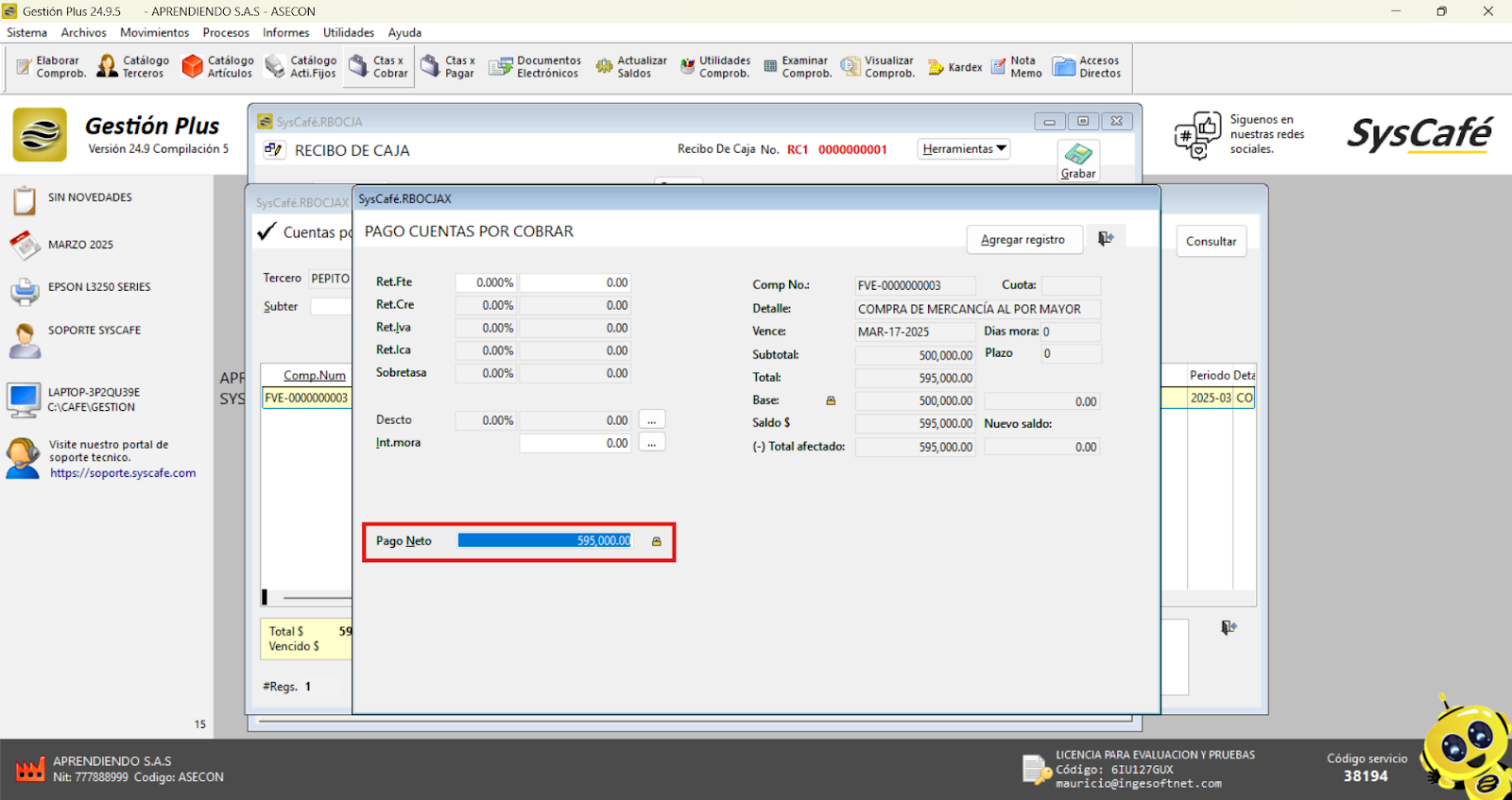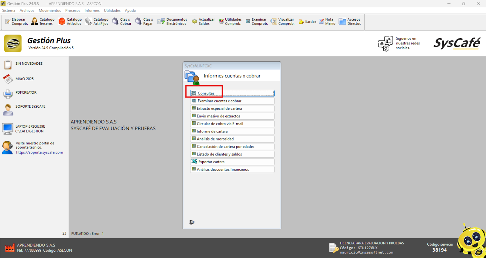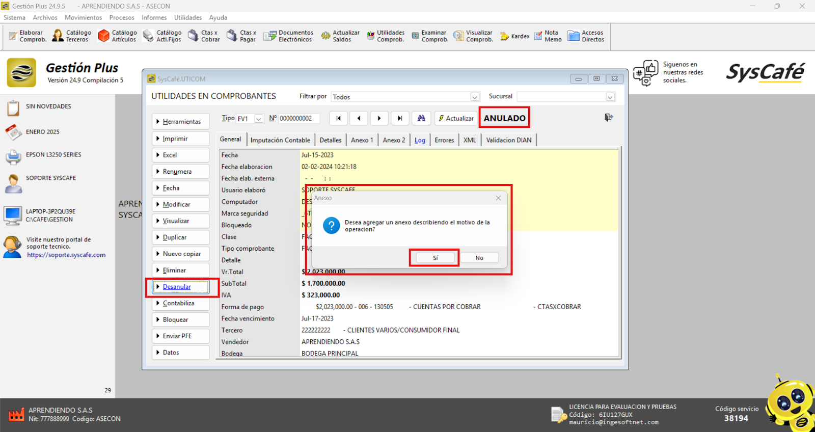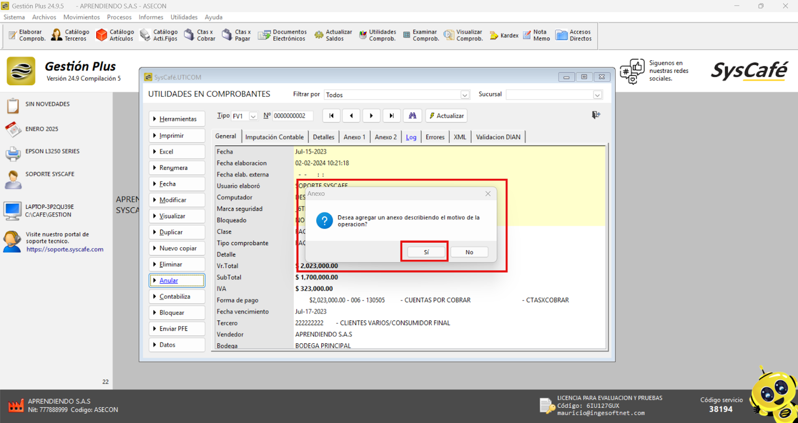 - Reinicia el sistema: Cierra el software y vuelve a ingresarlo para que los cambios surtan efecto. Esto asegura que el nuevo parámetro se aplique correctamente y permita el registro de comprobantes con fechas futuras.