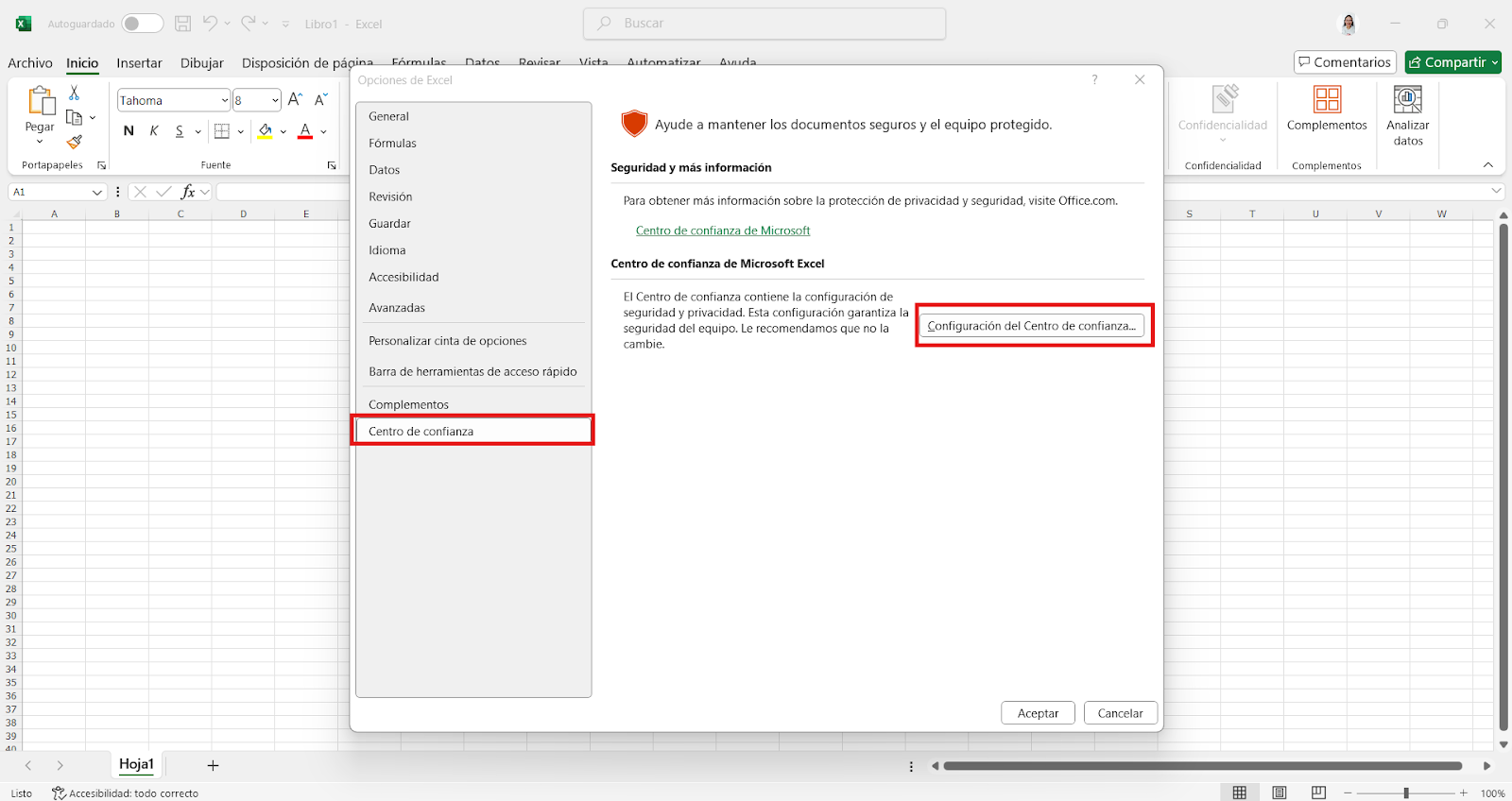 Luego, en la ventana que aparece, haz clic en el botón Aceptar para confirmar la configuración.