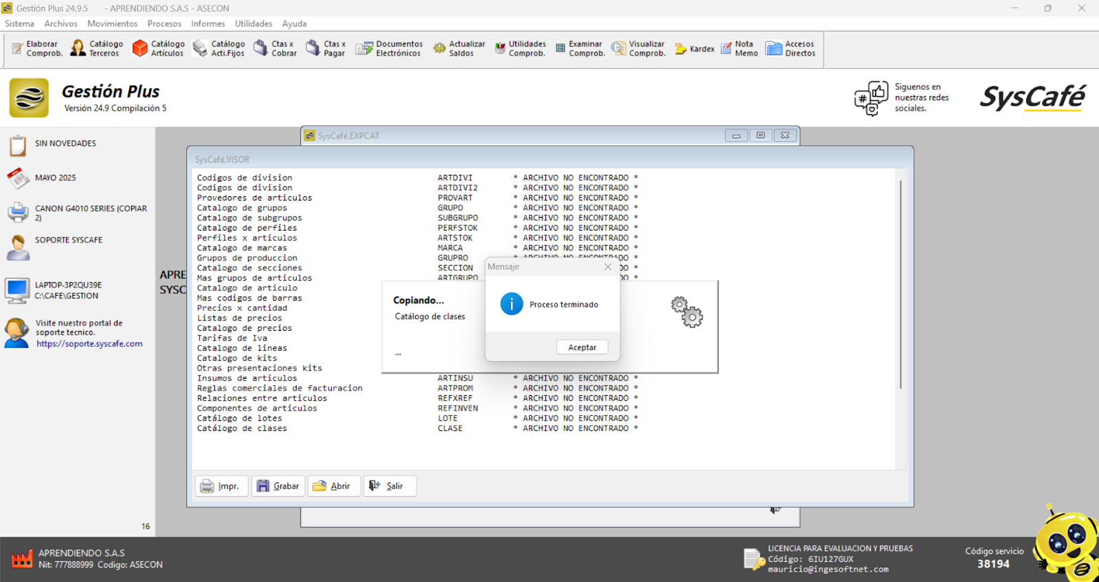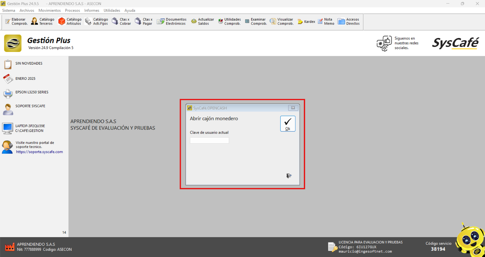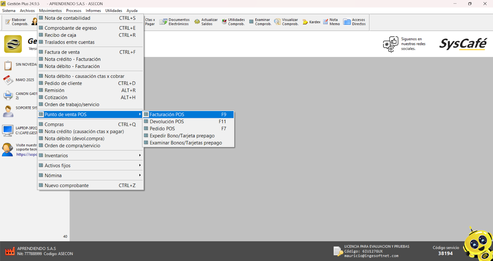 Cierra el software Syscafé y vuelve a abrirlo para verificar que el logo se muestra correctamente y está organizado según lo esperado.