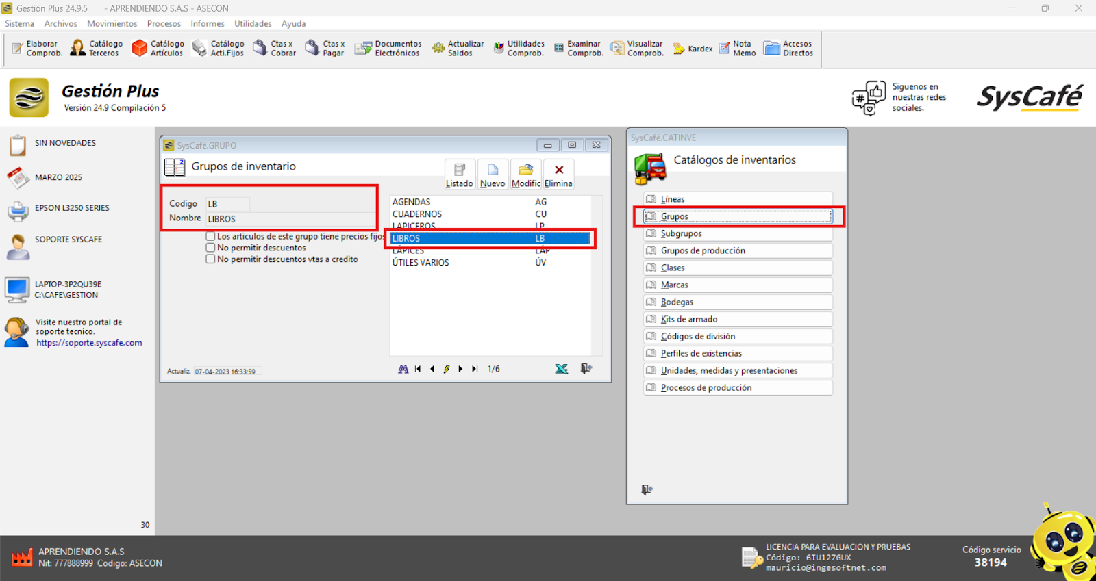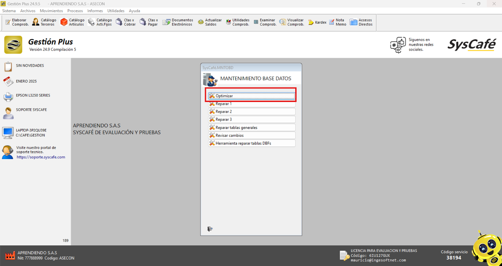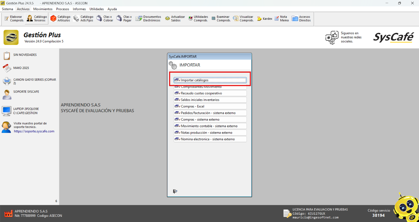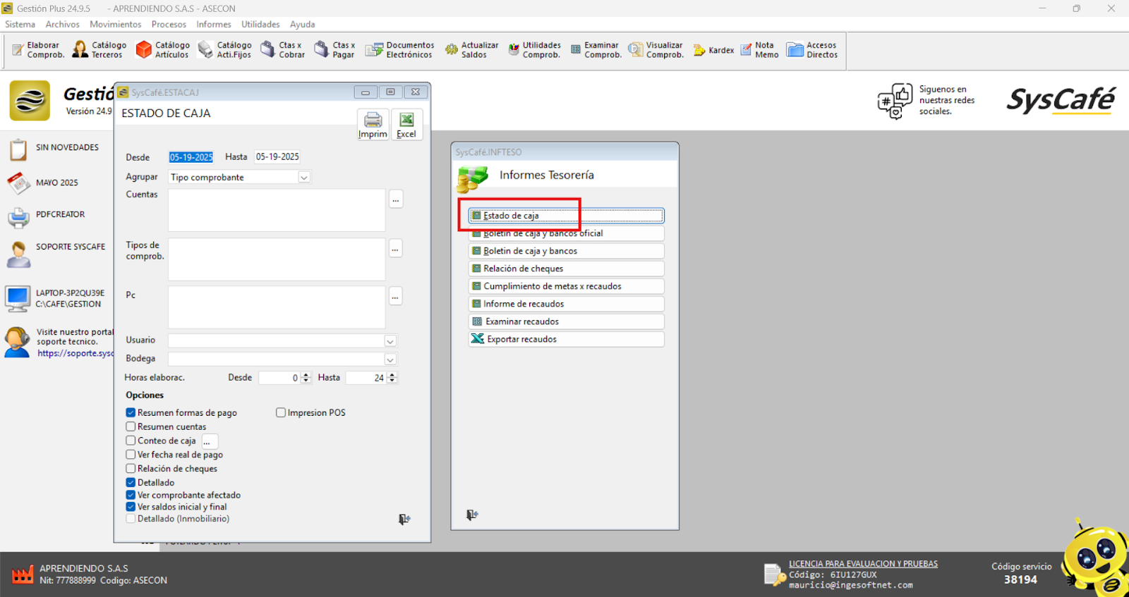 Cierra el software Syscafé y vuelve a abrirlo para verificar que el logo se muestra correctamente y está organizado según lo esperado.