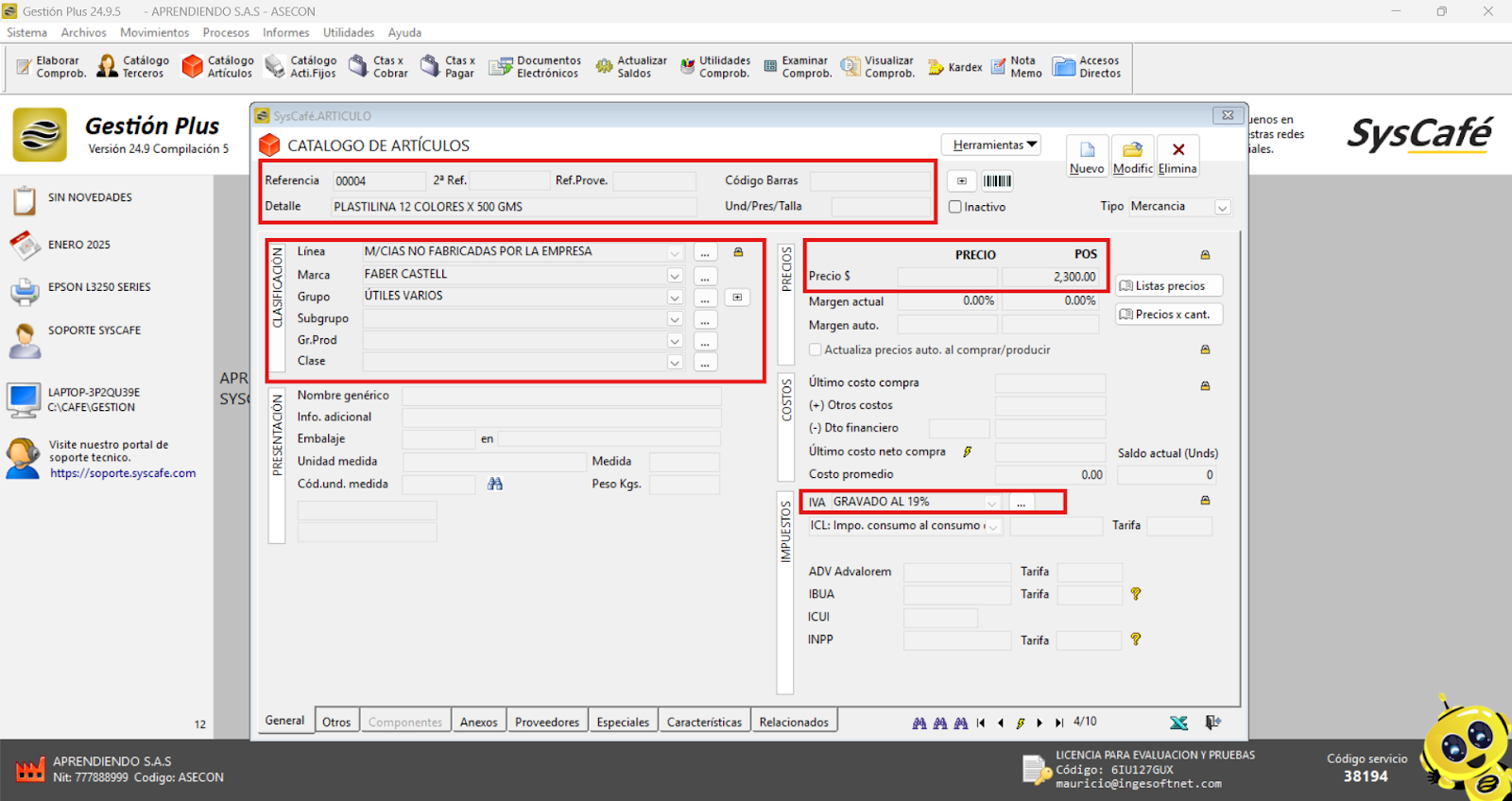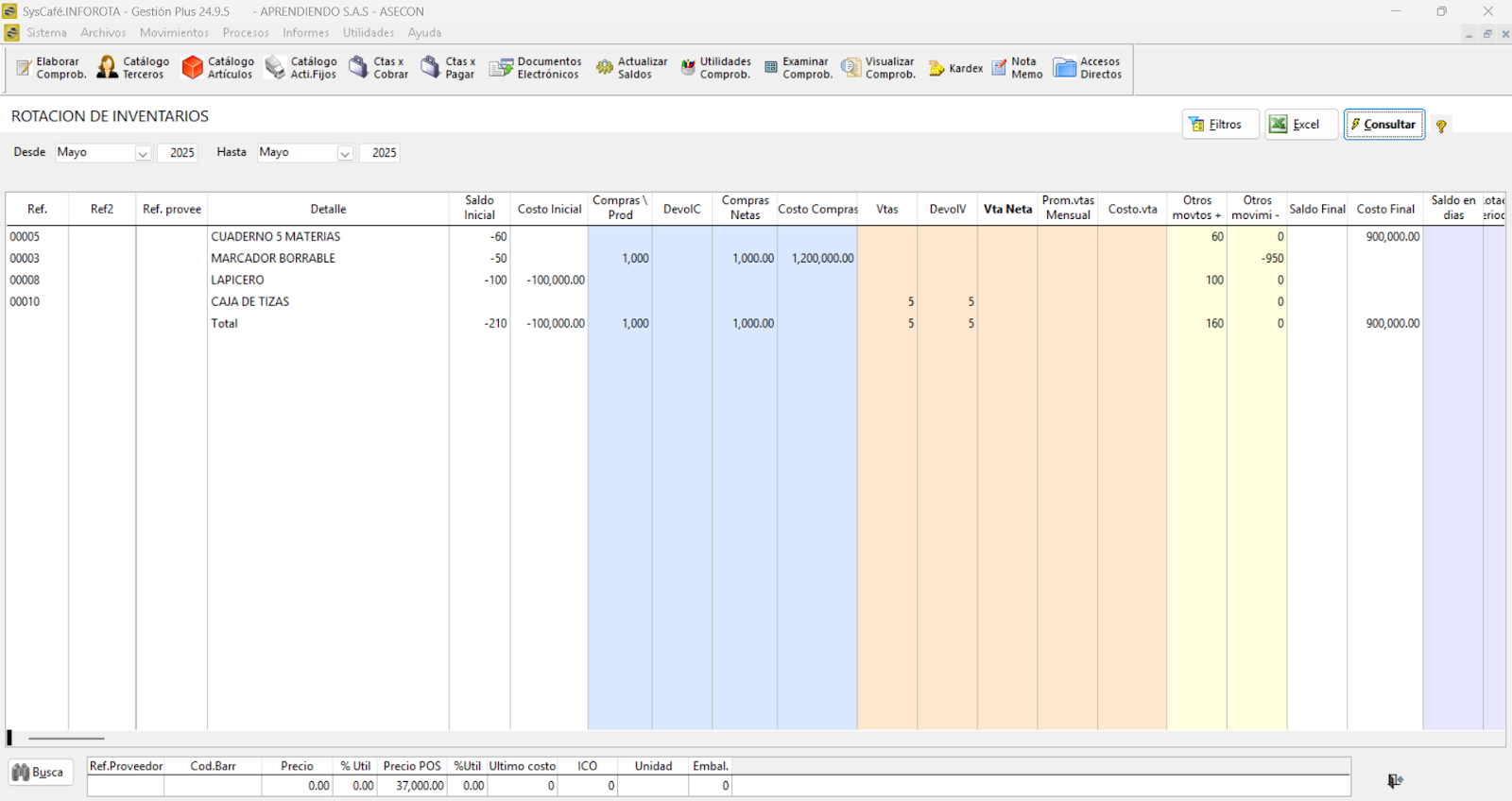 Al realizar un cambio del precio del artículo, la información se actualizará y quedará reflejada de la siguiente manera: