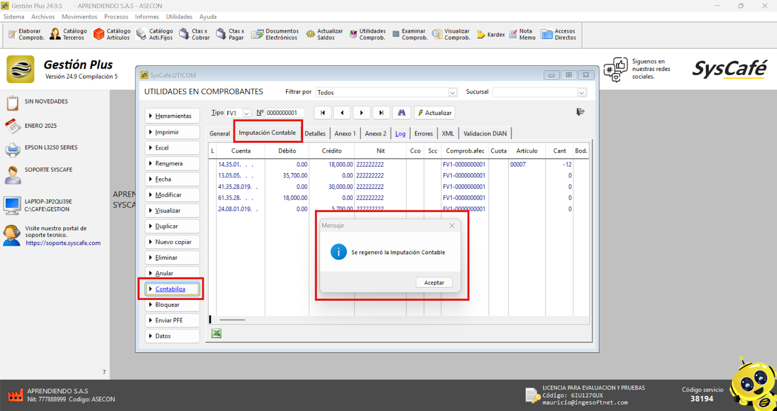 Al utilizar la opción de eliminar registros perdidos, se eliminará el error de IMPUTACIÓN CONTABLE PÉRDIDA SIN UN REGISTRO DE COMPROBANTE, corrigiendo automáticamente la situación.