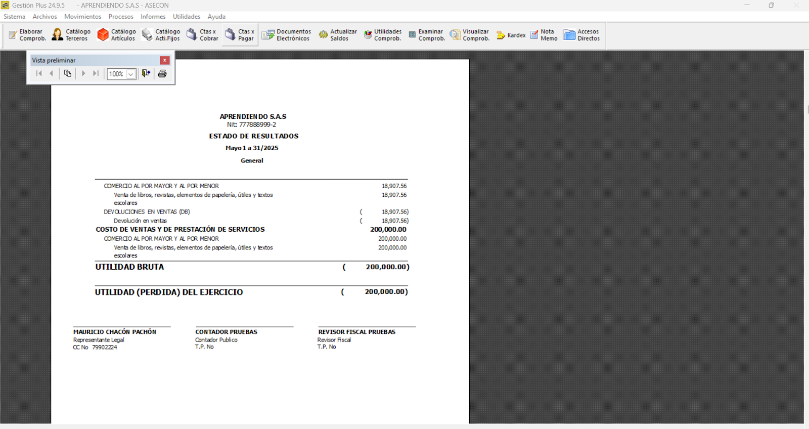 Imputación contable pérdida