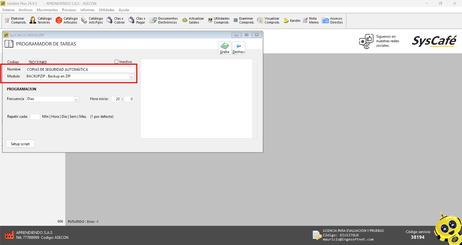 Ruta: Utilidades - Programador de tareas