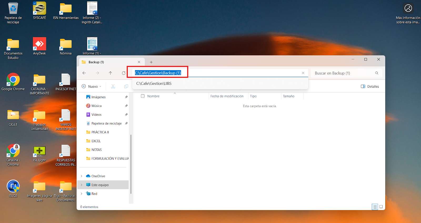 - Accede al disco donde está instalado Syscafé (por ejemplo, Disco (D)).