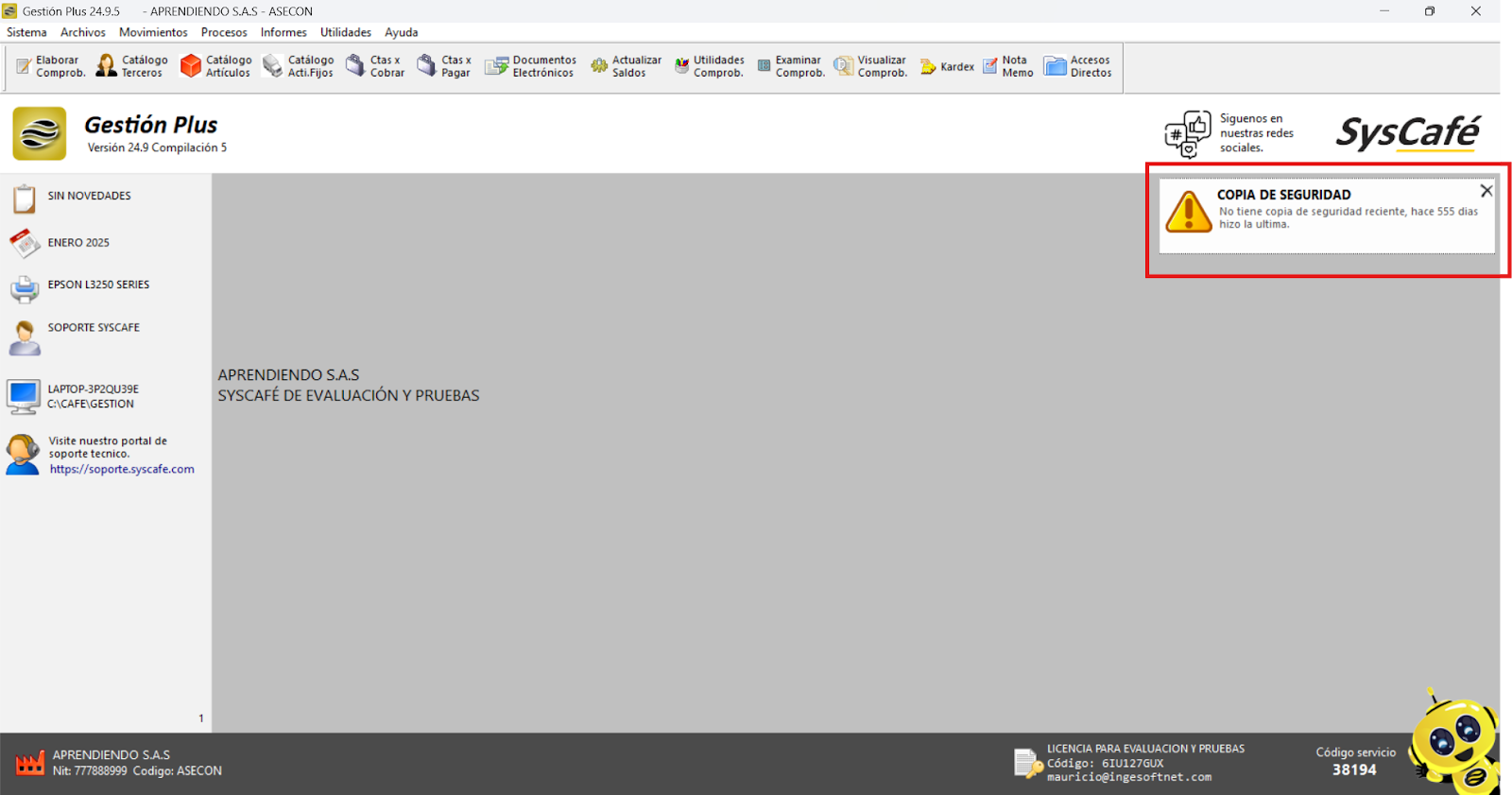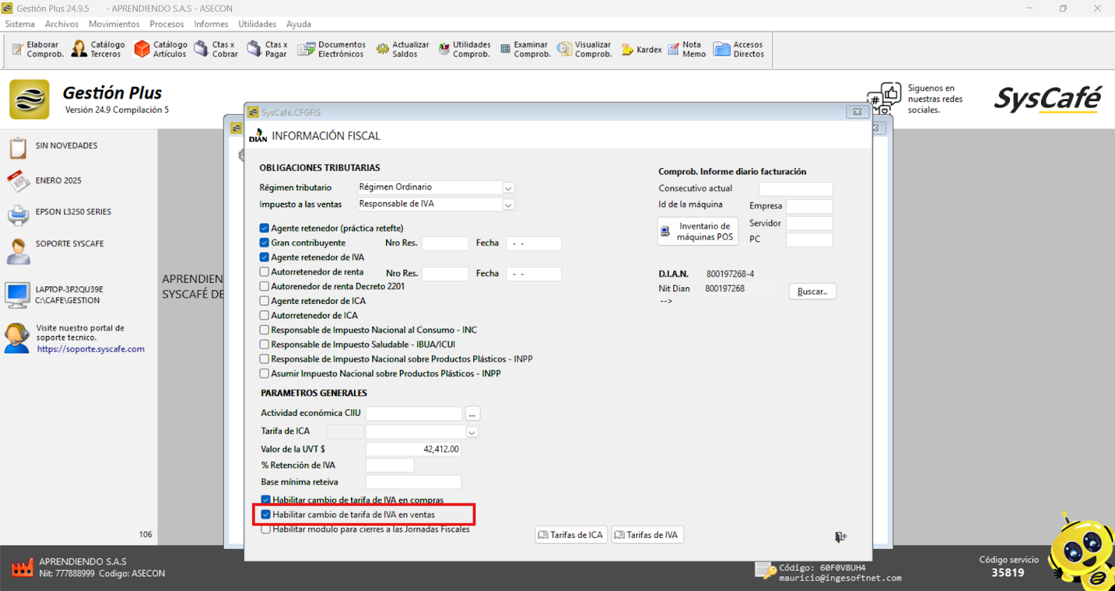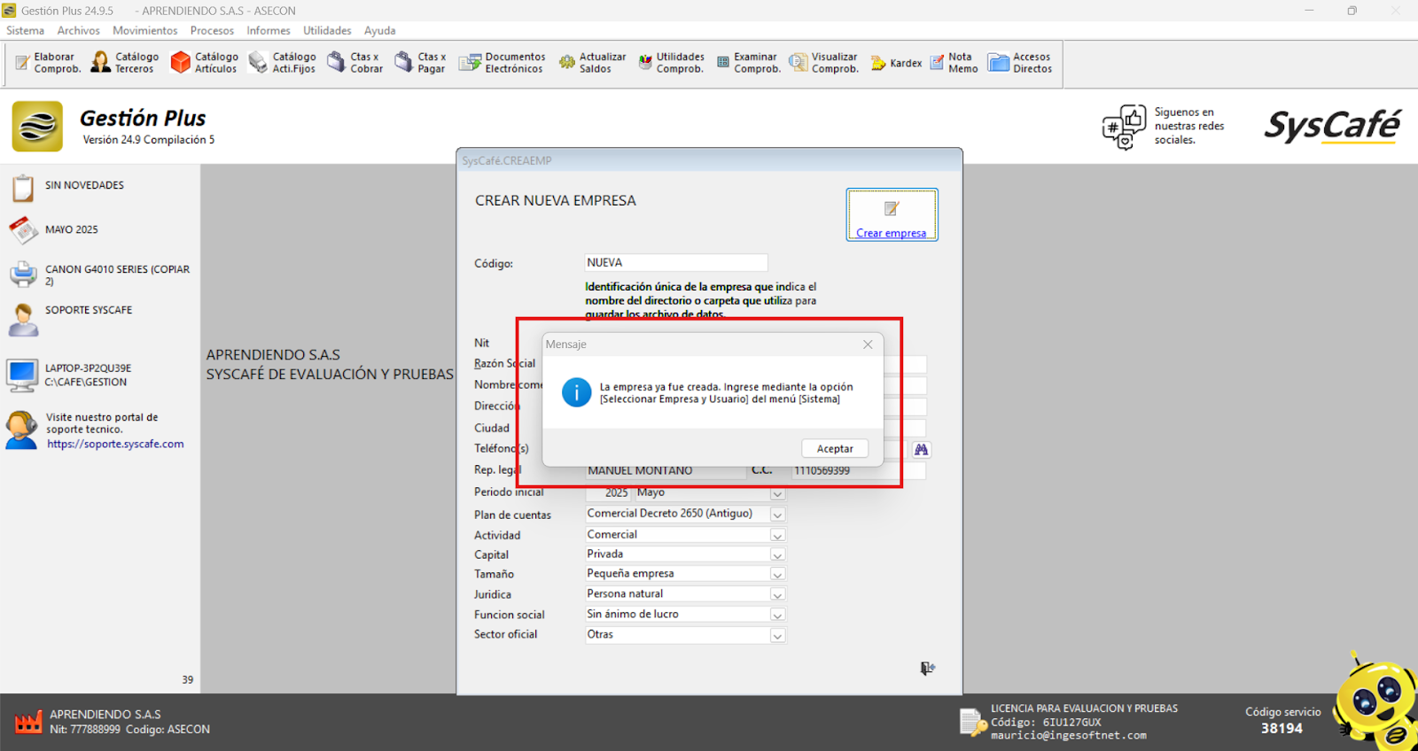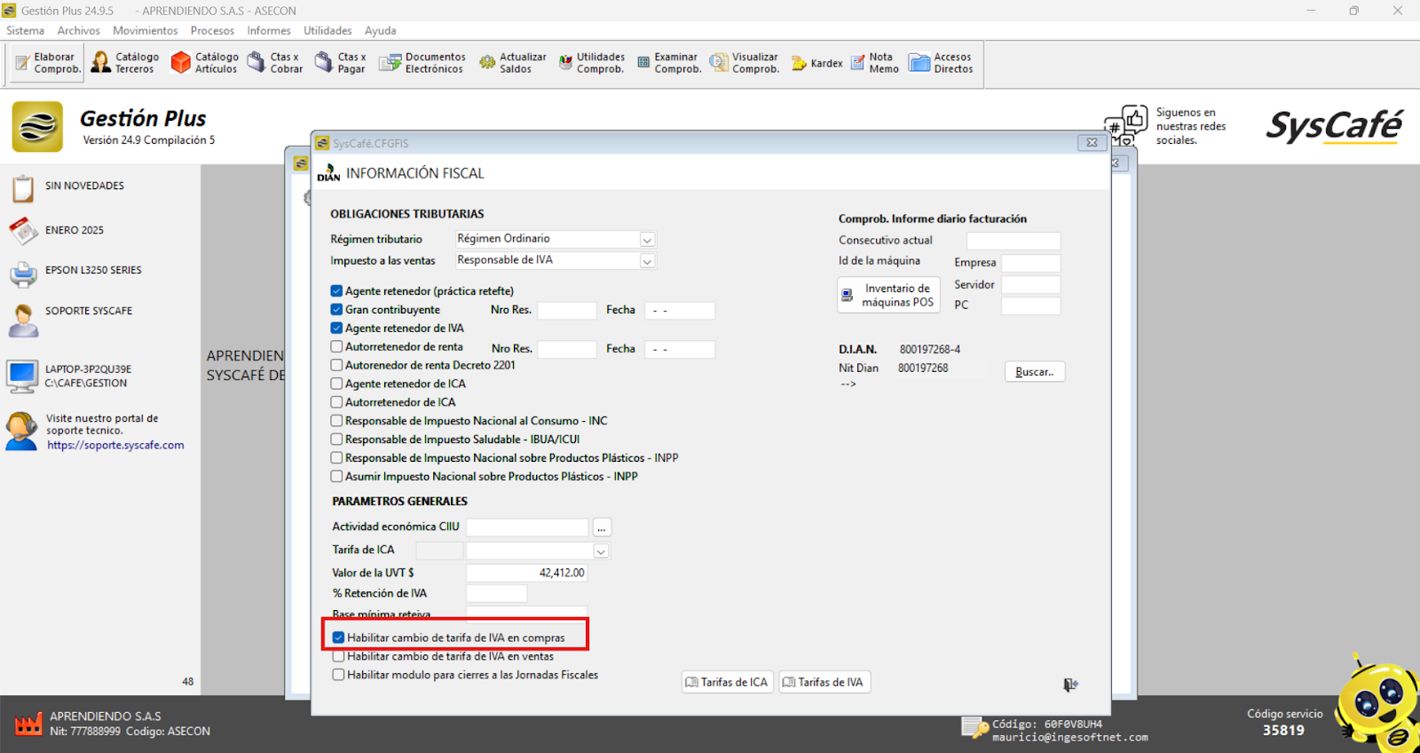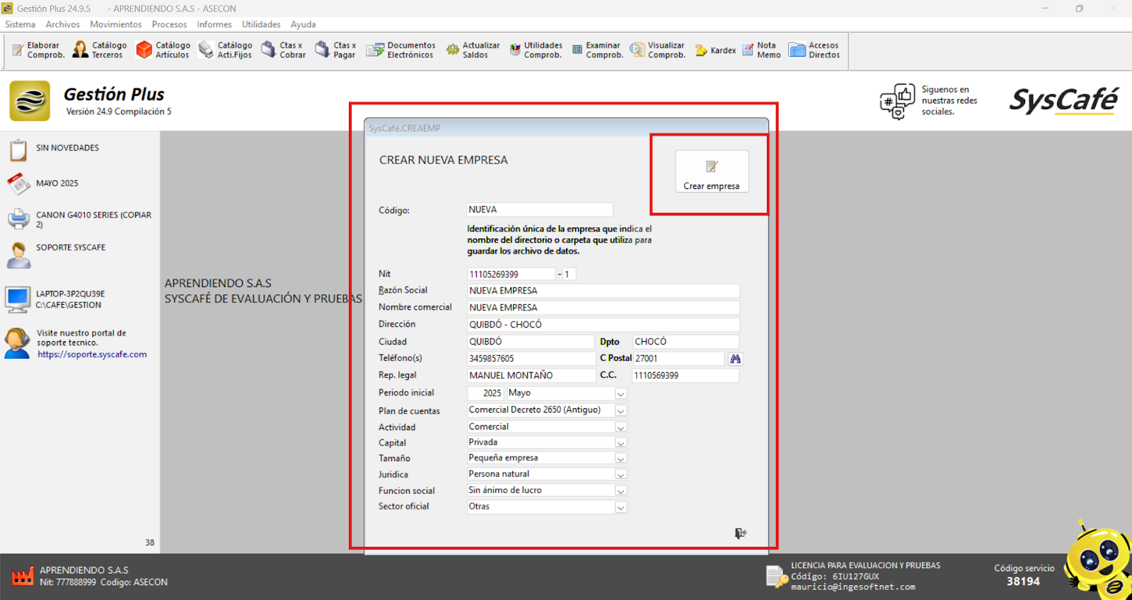 Es crucial que, durante la instalación del software Syscafé, ingreses la información de la empresa tal como aparece en el RUT (Registro Único Tributario). Además, ten en cuenta que si realizas alguna actualización en el RUT después de la instalación, deberás actualizar también la información correspondiente en el software Syscafé.
