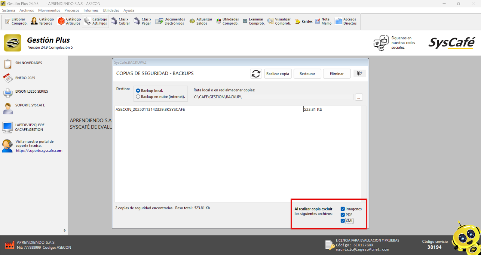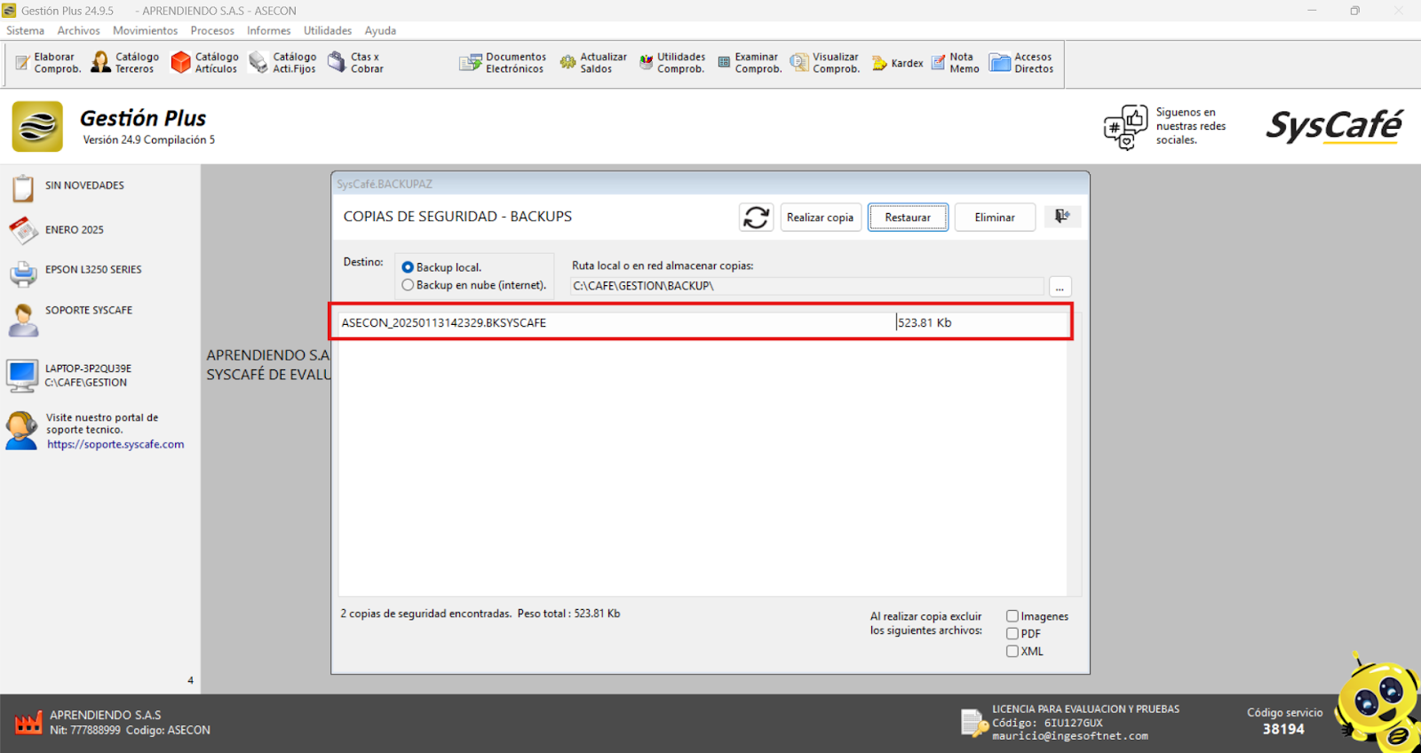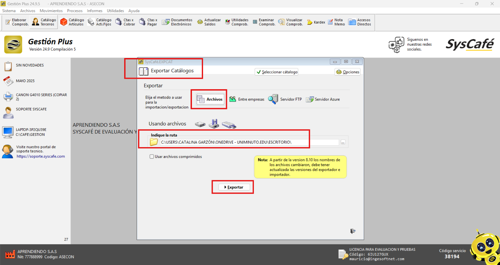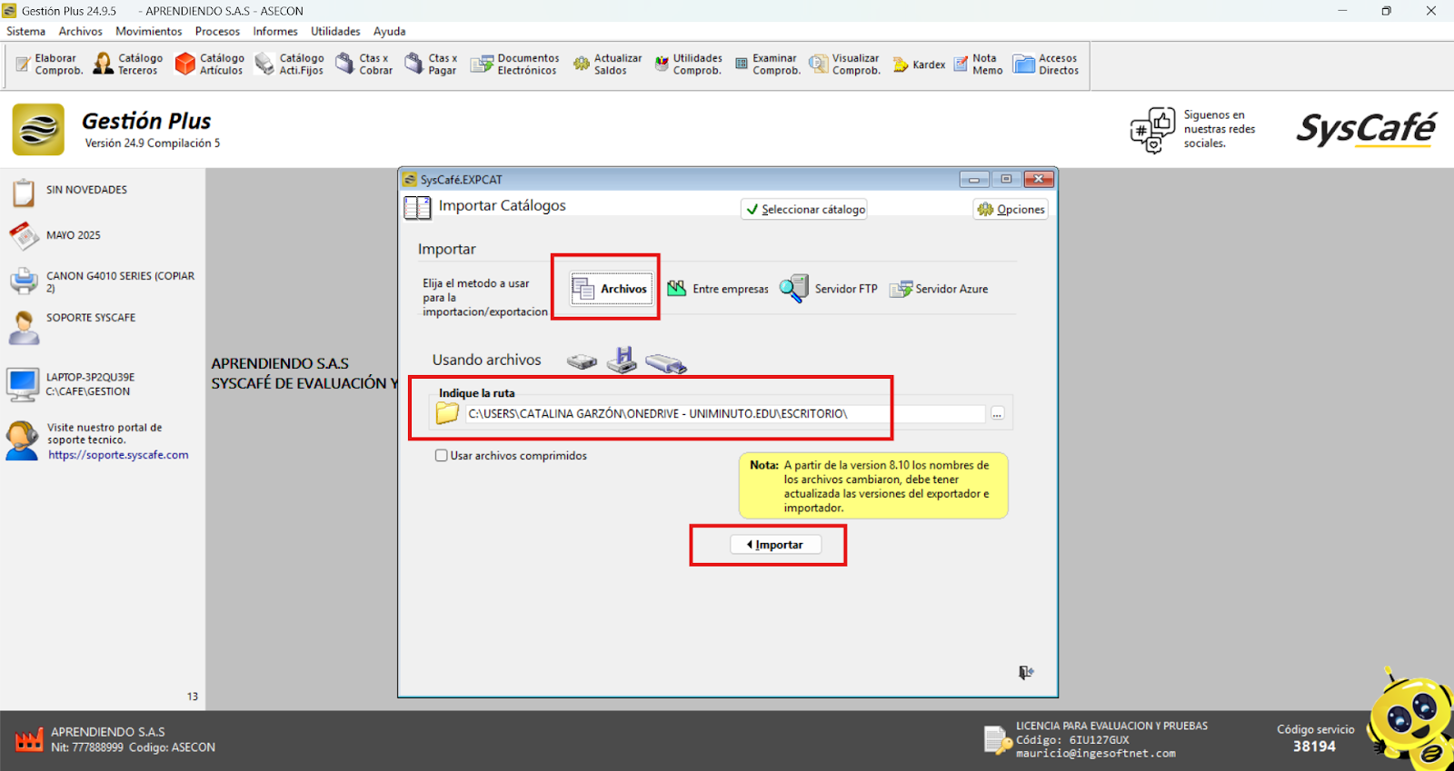 Pegamos la ruta en el campo correspondiente que nos proporciona el sistema SYSCAFÉ.