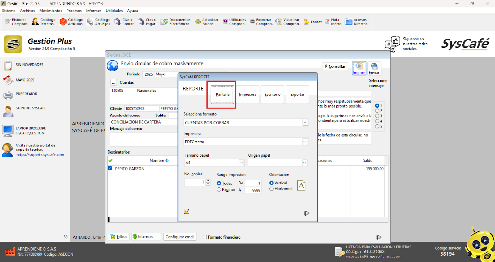 Nota: Si no estás seguro de qué generador de PDF tienes instalado o si el sistema presenta algún problema, por favor contacta al soporte técnico para obtener asistencia.