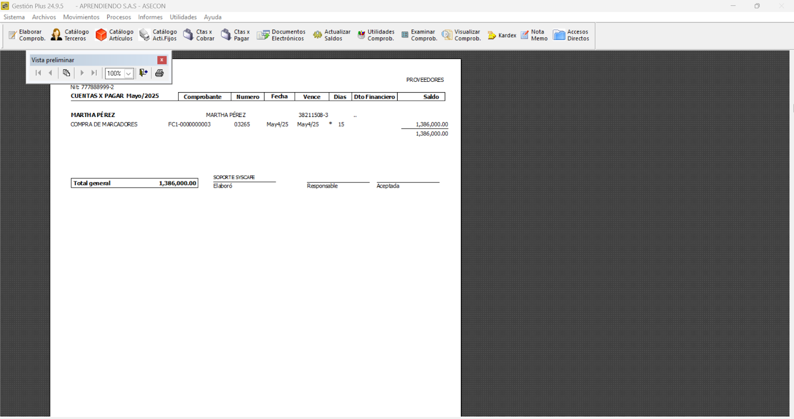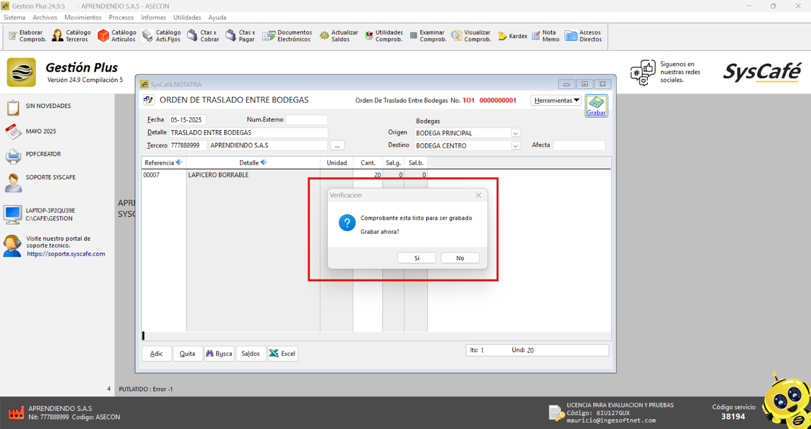 Grabamos el comprobante, y de esta manera se crea el documento.
