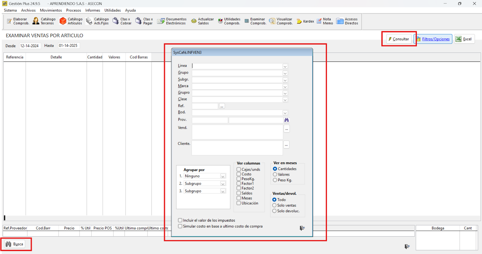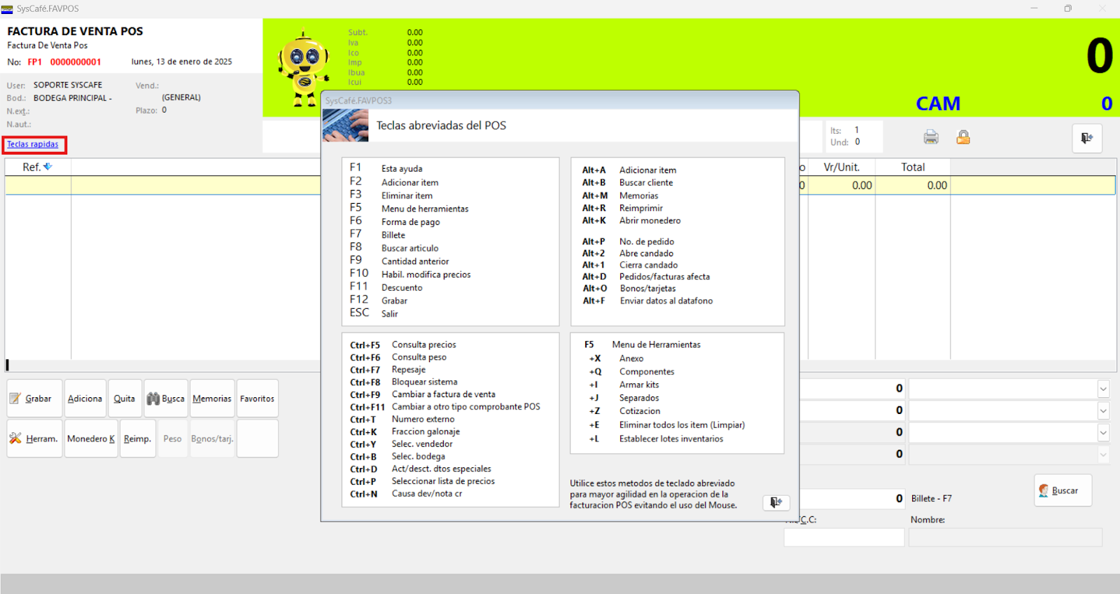 - Consulta de artículos y puntos: Ctrl + F6