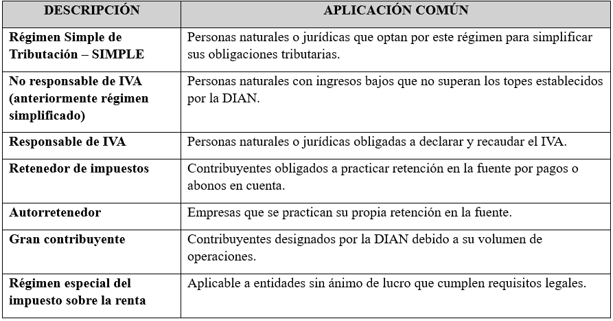 Nota: Esta tabla es referencial y debe actualizarse conforme a los cambios normativos de la DIAN.