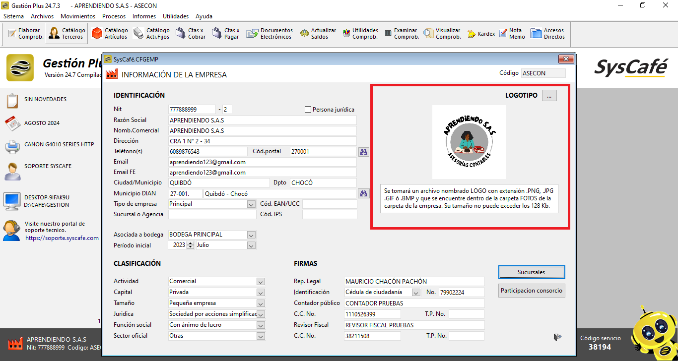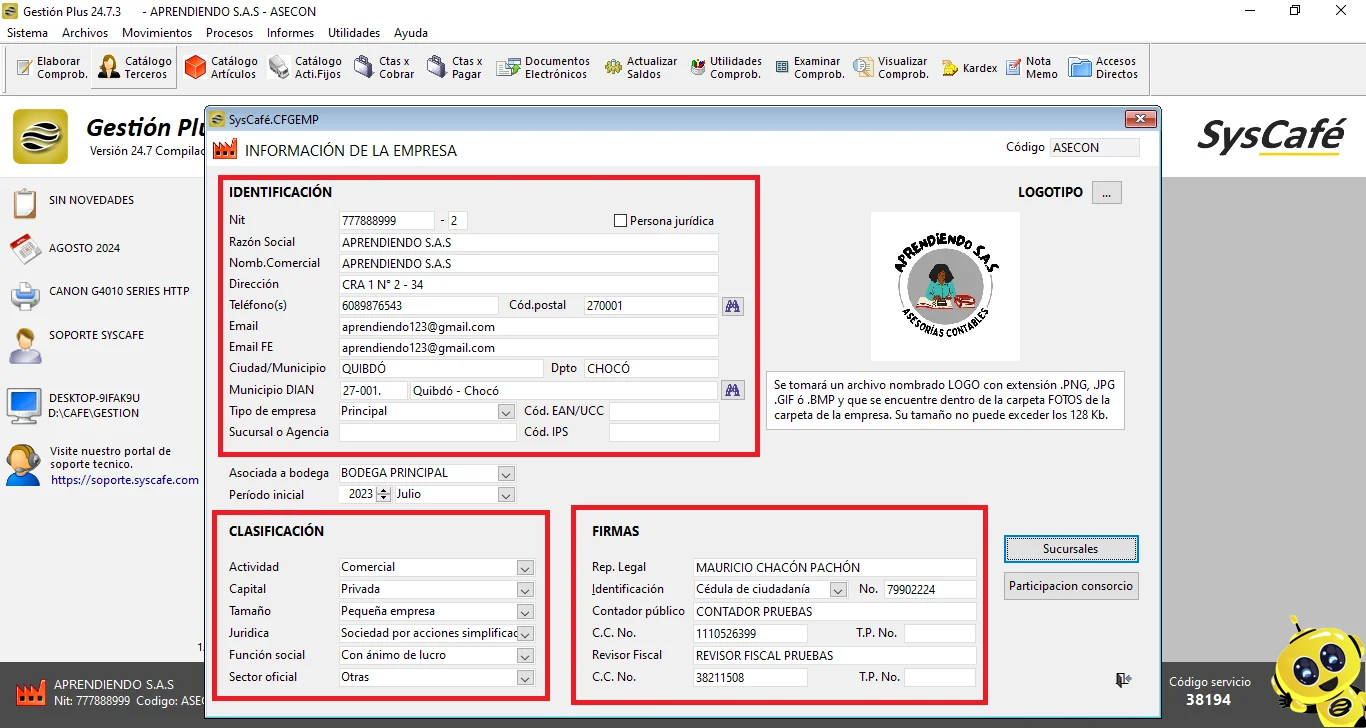 Ruta: Sistema - Parámetros - Información Empresa