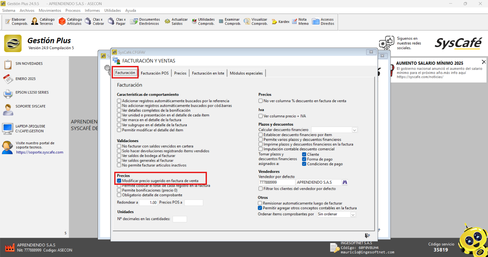 Les permitirá a los usuarios activar un parámetro específico para modificar el precio de los artículos directamente en la factura de venta electrónica. Esta característica brindará mayor flexibilidad en la gestión de precios, permitiendo ajustar manualmente los valores según las condiciones particulares de cada transacción.
