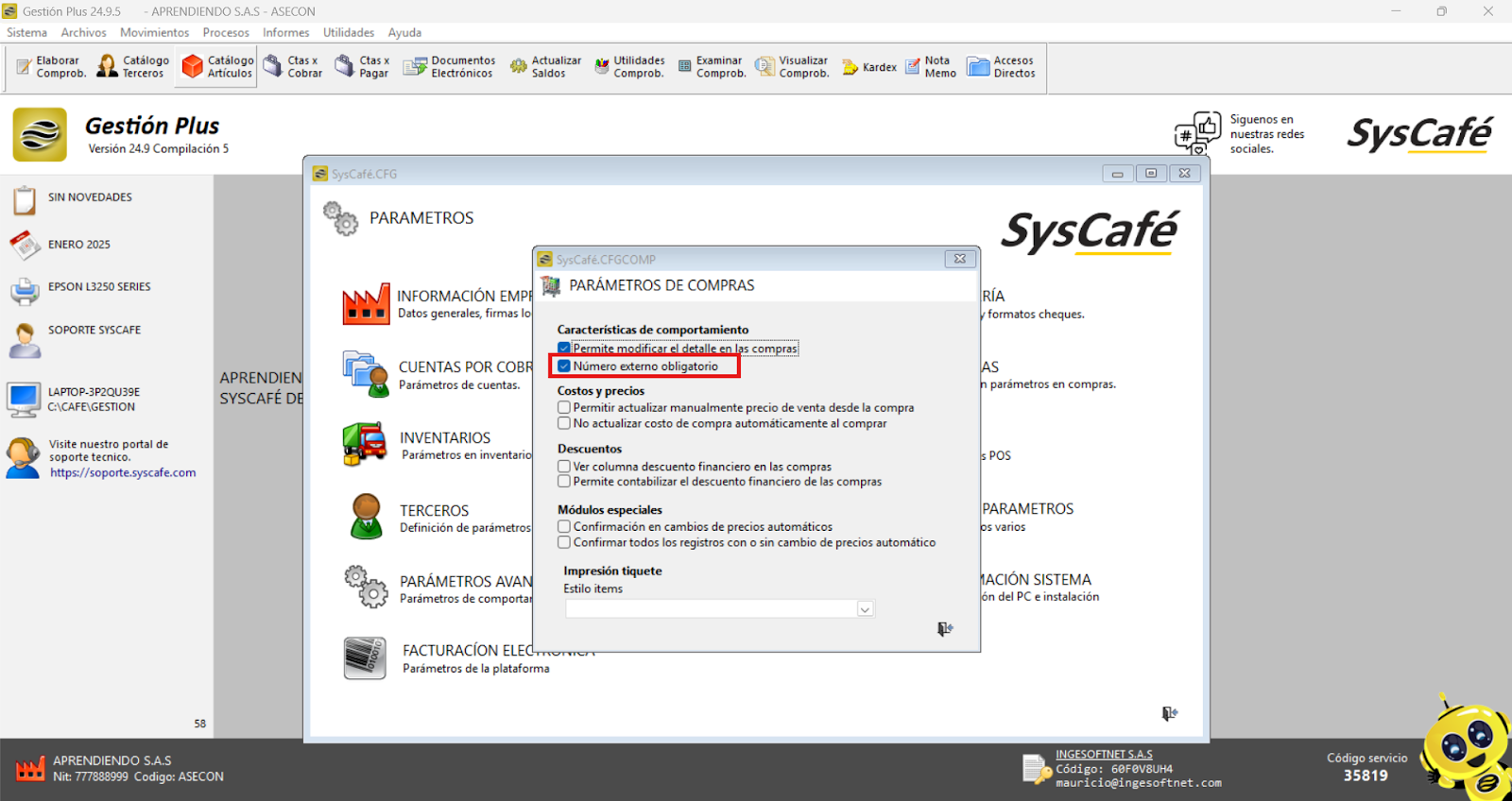 Ruta: Sistema – Parámetros – Compras