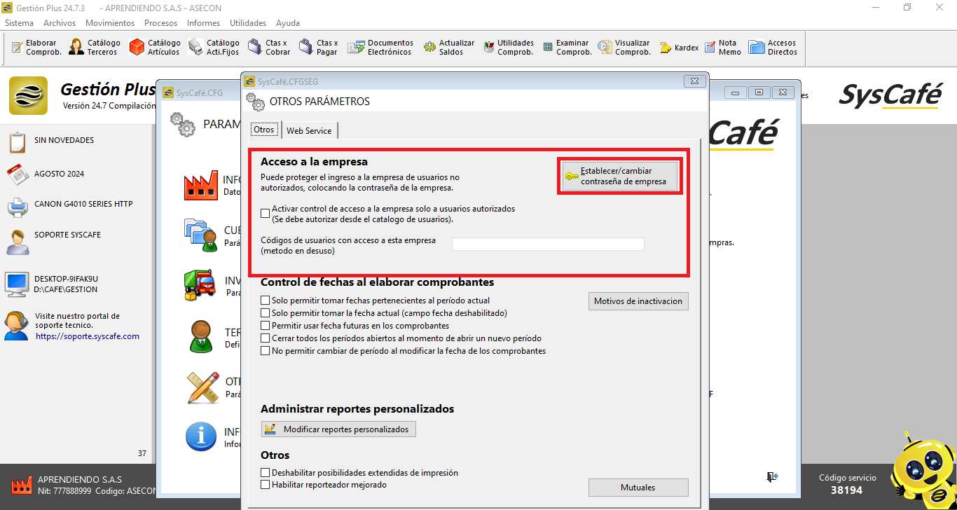 Por razones de seguridad, te recomendamos asignar una contraseña a la empresa para proteger la información contra accesos no autorizados. Esta medida ayudará a garantizar que solo los usuarios autorizados puedan acceder y modificar los datos sensibles.