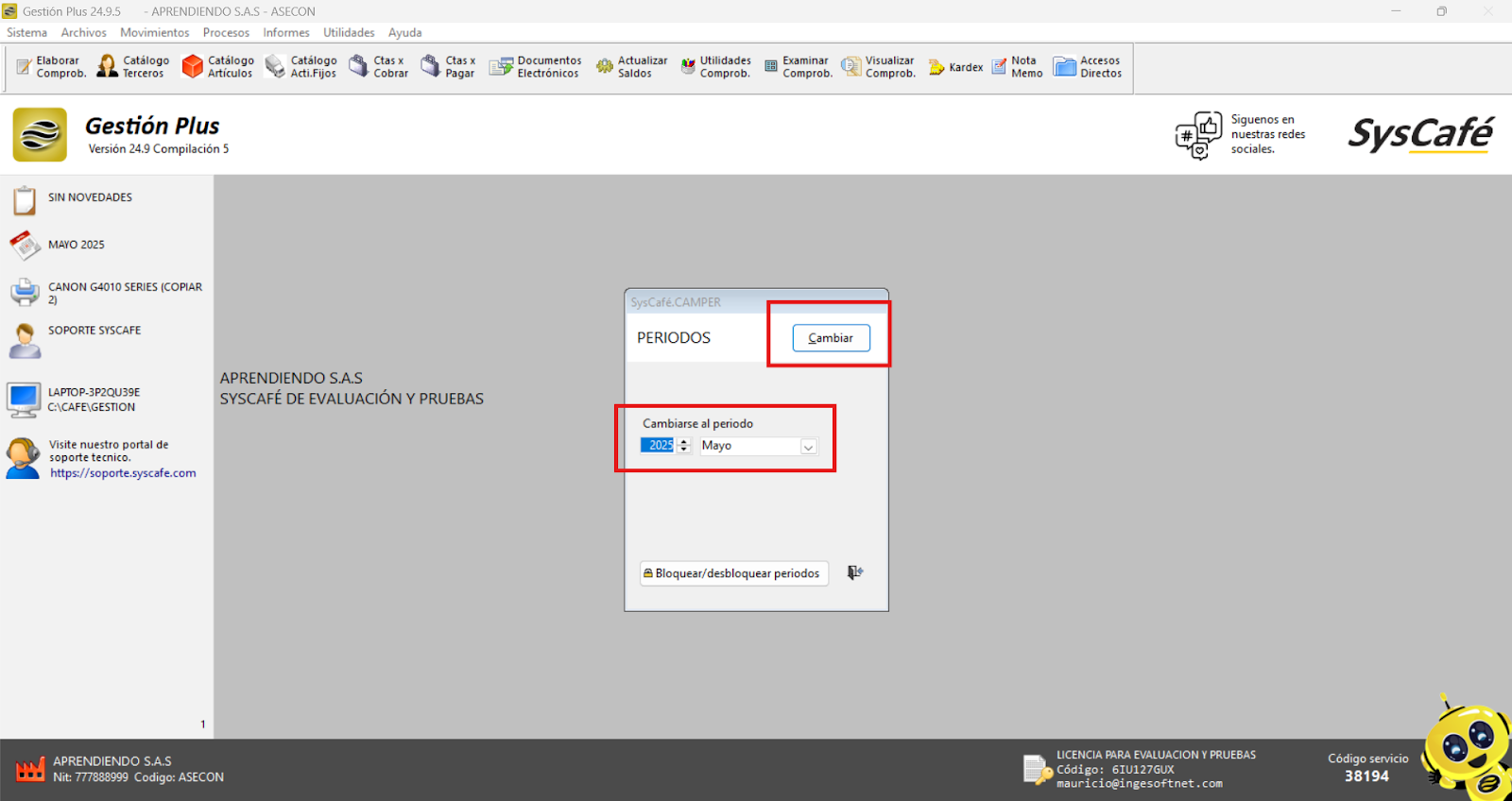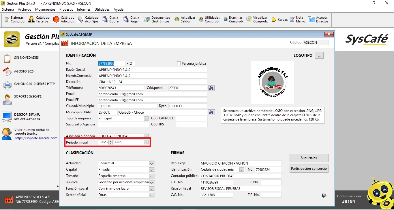 Ruta: Sistema - Parámetros Información Empresa- Campo Periodo