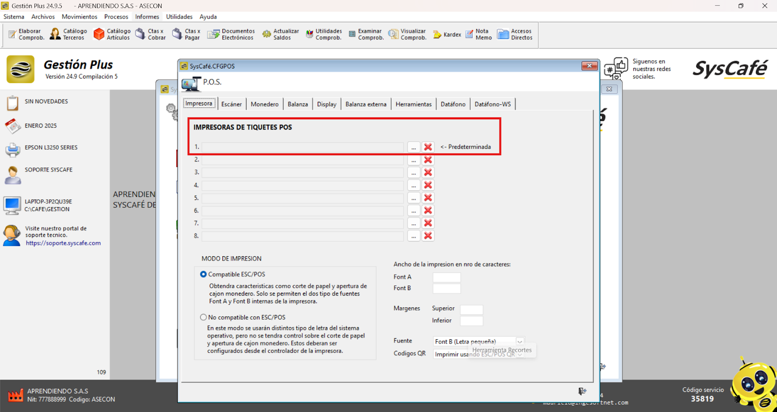 Con esta configuración, los usuarios pueden garantizar que el sistema esté correctamente enlazado con la impresora seleccionada, optimizando los procesos operativos y minimizando errores al momento de imprimir.