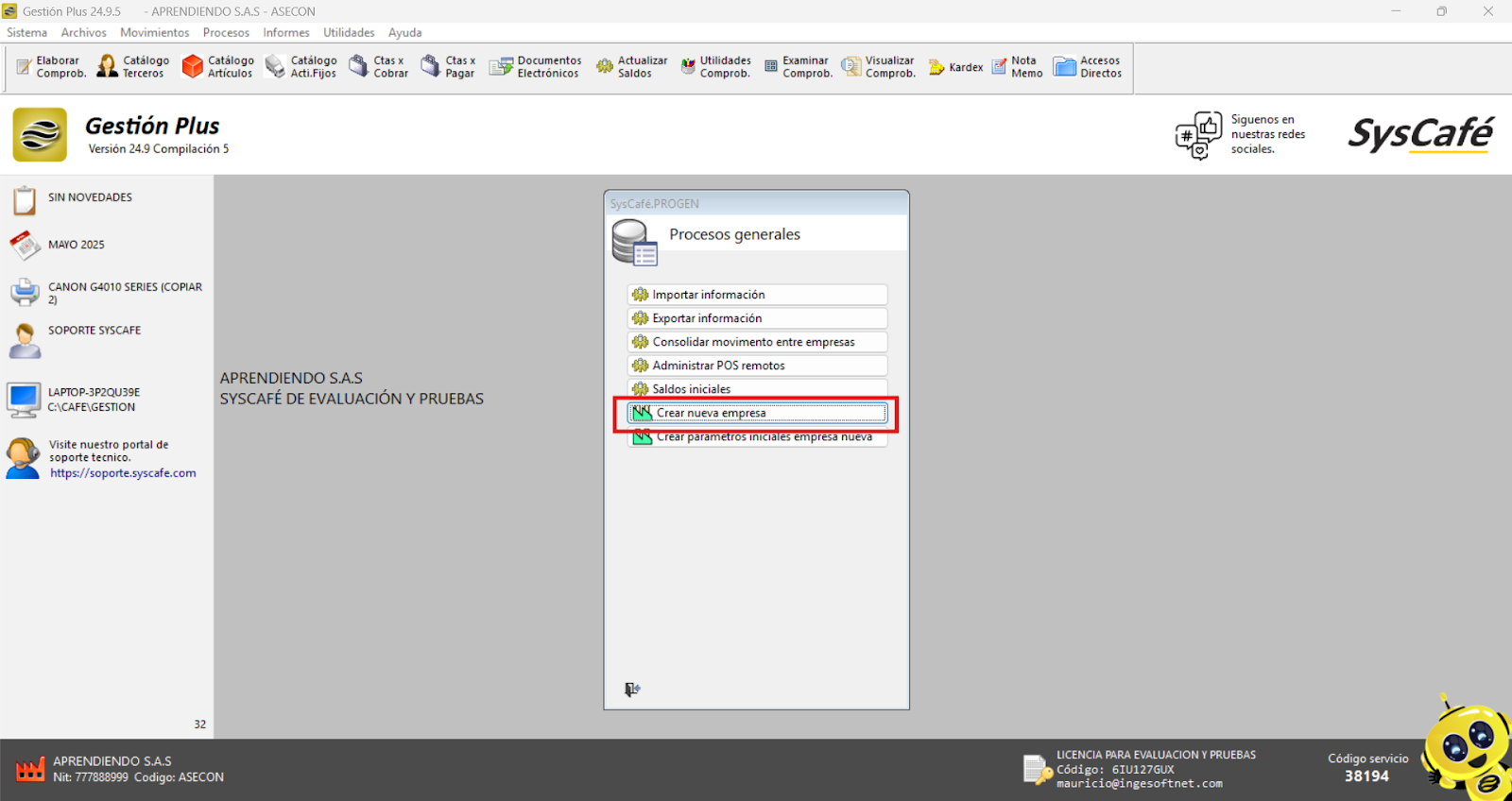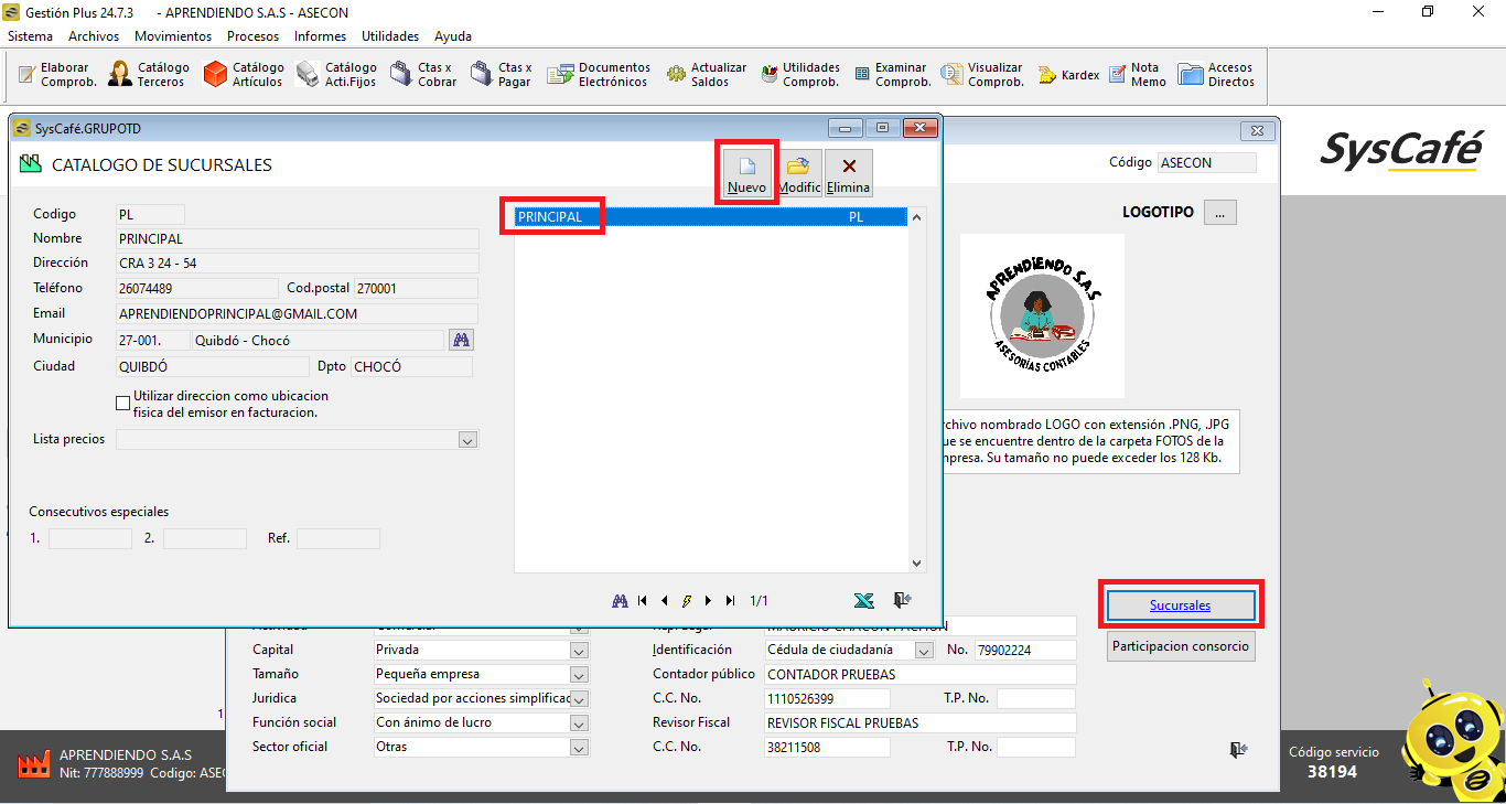 Si sigues estos pasos, cada sucursal estará debidamente configurada y lista para su uso dentro del software Syscafé.