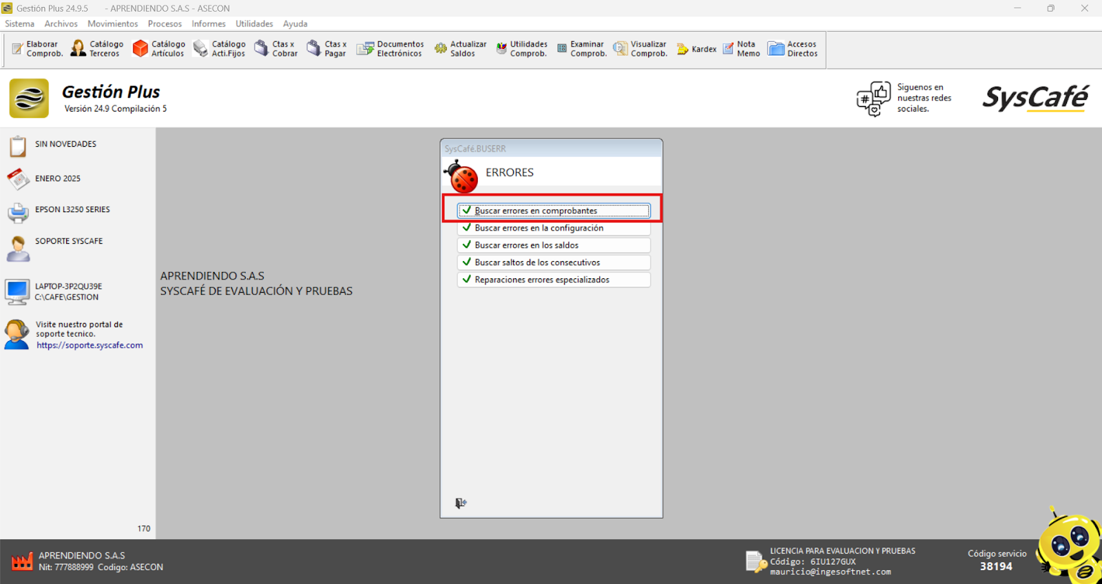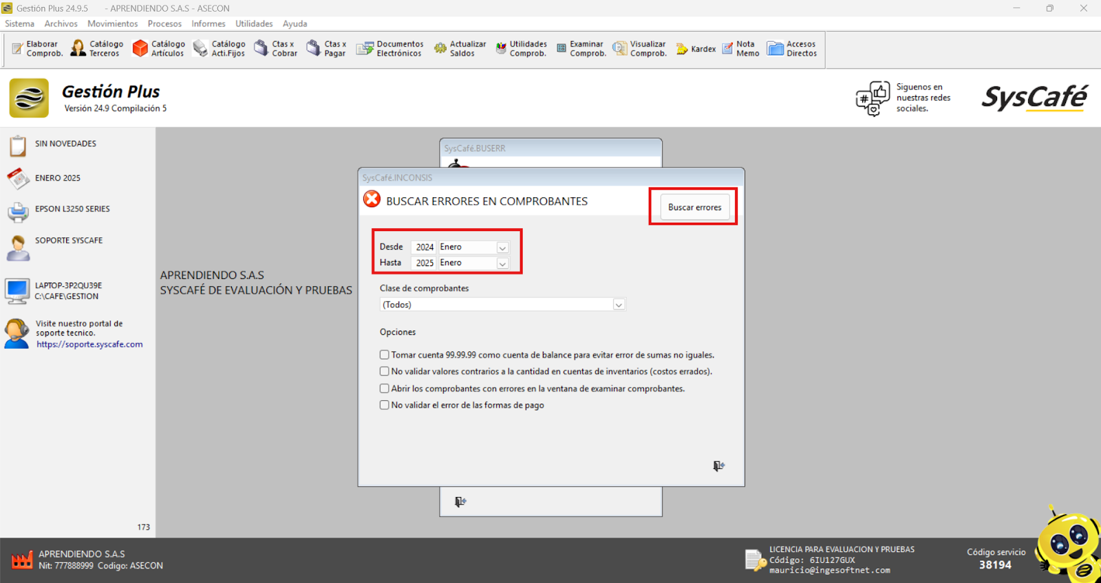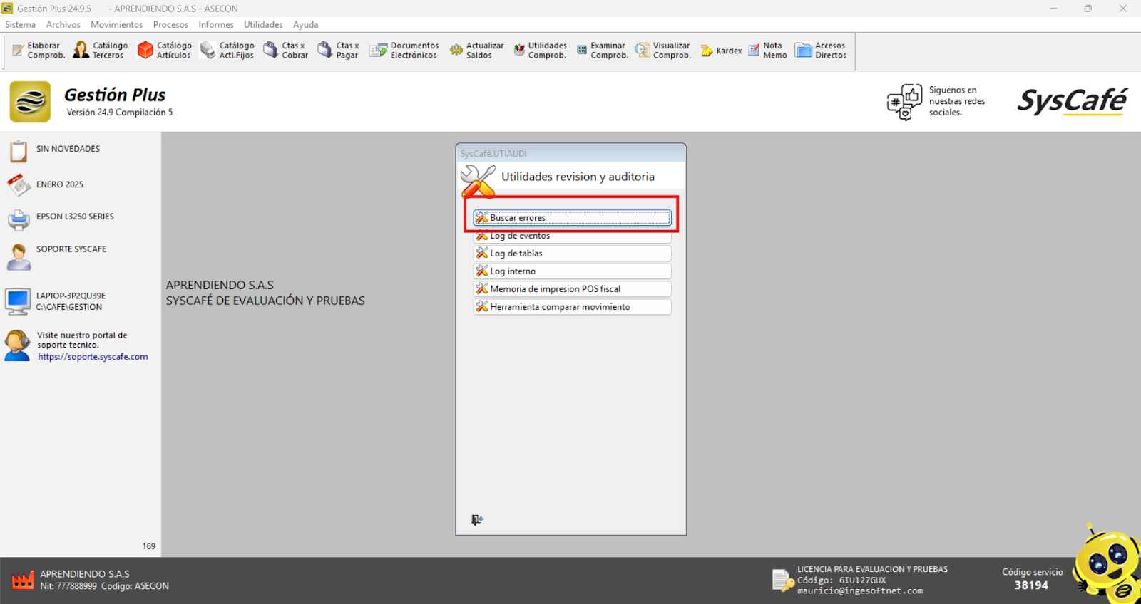 Ruta: Utilidades - Revisión y Auditoría - Buscar errores