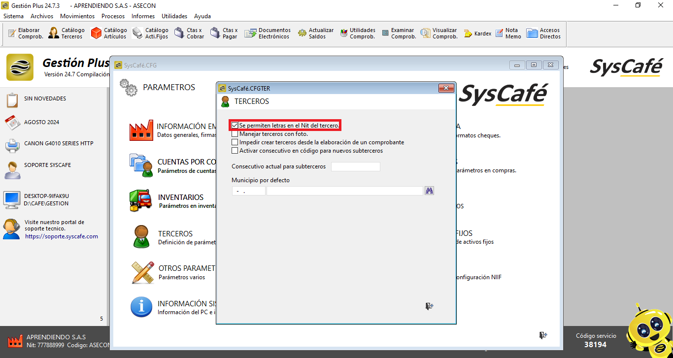 Ruta: Sistema – Parámetros – Terceros